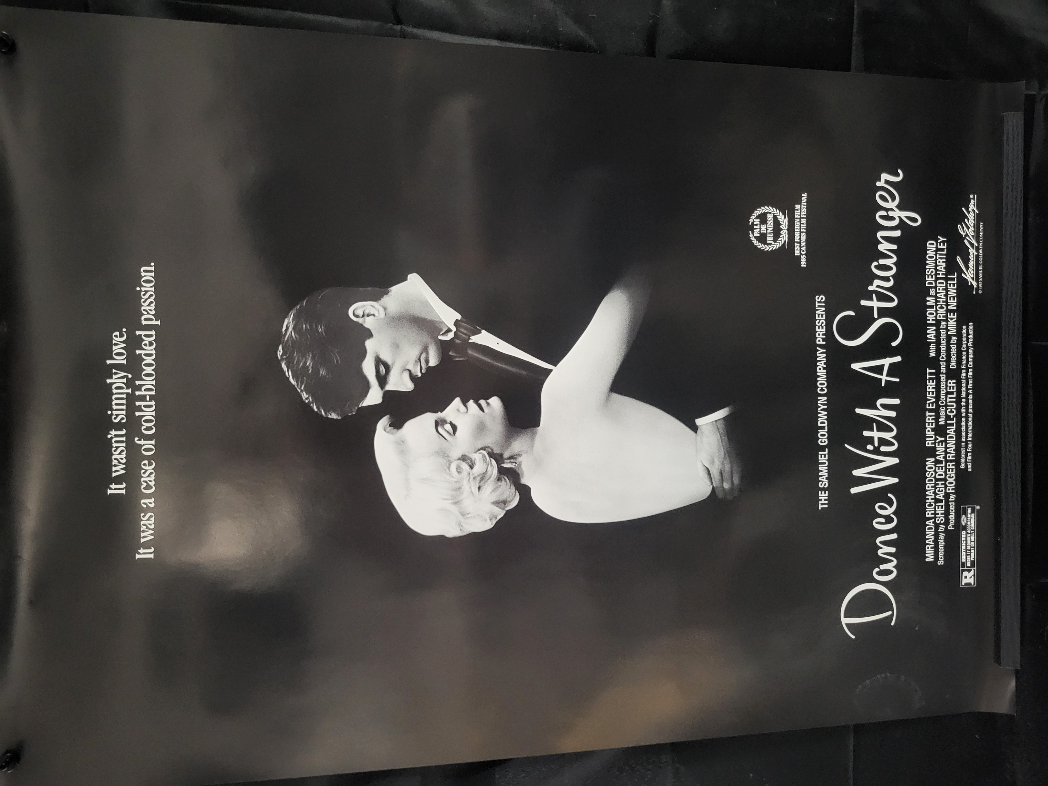 BID PER WHAT YOU SEE IN THE PHOTO, NOT THE AI GENERATED TITLES AND DESCRIPTIONS! This original theatrical movie poster for the 1985 British film Dance with a Stranger is printed on paper. The design features a high-contrast black and white photographic image of lead actors Miranda Richardson and Rupert Everett. The poster includes the film title in stylized script and the tagline It wasn’t simply love. It was a case of cold-blooded passion. A graphic notice for the Best Foreign Film award at the 1985 Cannes Film Festival is present. The billing block at the bottom lists the principal cast including Ian Holm, screenwriter Shelagh Delaney, and director Mike Newell. The item carries a Samuel Goldwyn Company copyright and an MPAA R rating.