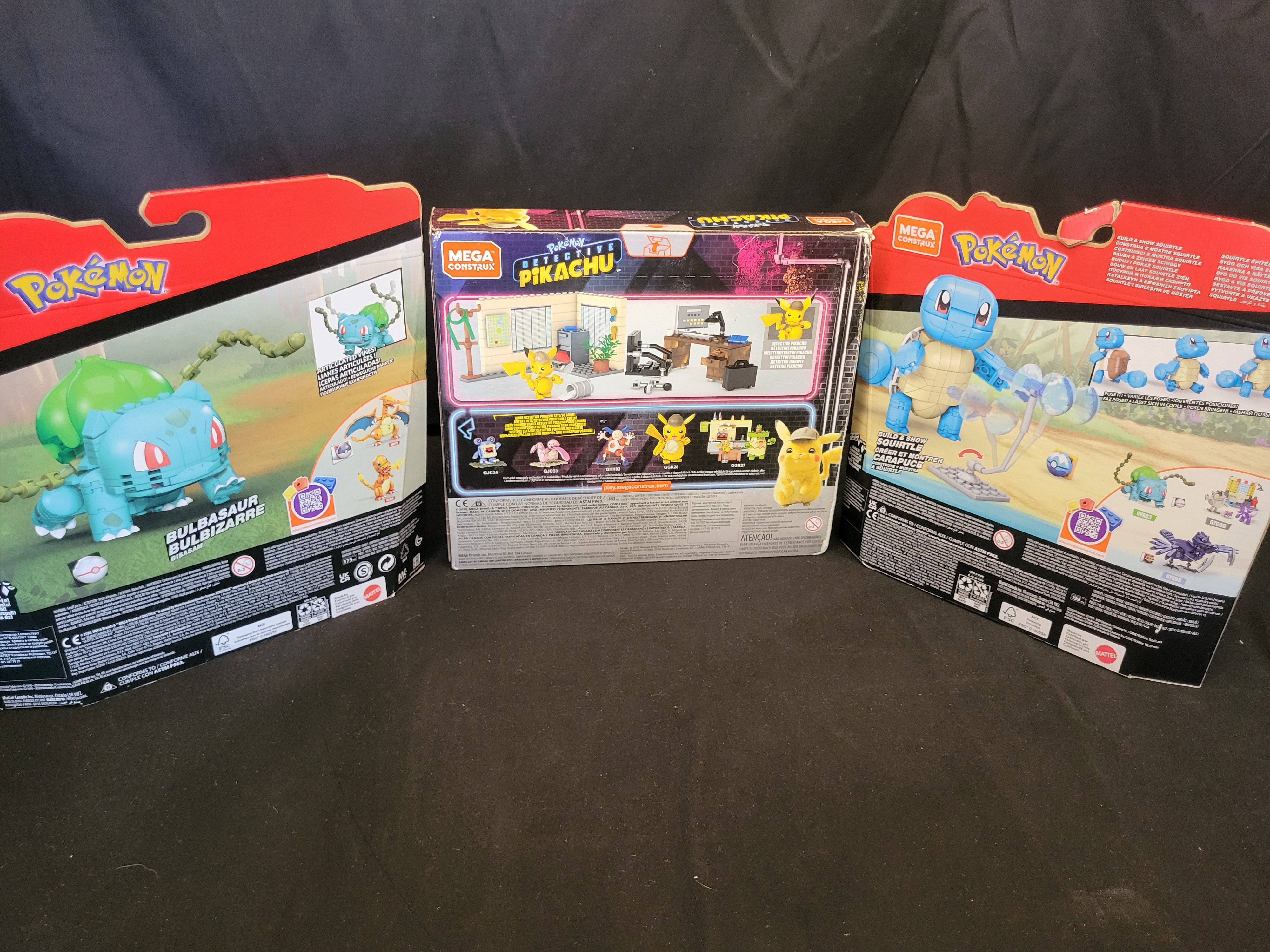 BID PER WHAT YOU SEE IN THE PHOTO, NOT THE AI GENERATED TITLES AND DESCRIPTIONS! A collection of Mega Construx Pokemon building sets and a Takara Tomy Moncolle series action figure. The group features the Mega Construx Detective Pikachu Office set, consisting of 183 pieces and identified as model GGK26. Also included are Mega Construx sets featuring a 175-piece Bulbasaur, model GVK83, and a Build and Show Squirtle. The collection is completed by a Takara Tomy Moncolle series Thwackey figure, model MS-32, presented in its original Japanese-market blister pack. The items are constructed from molded plastic and are housed in their original retail cardboard and plastic packaging.
