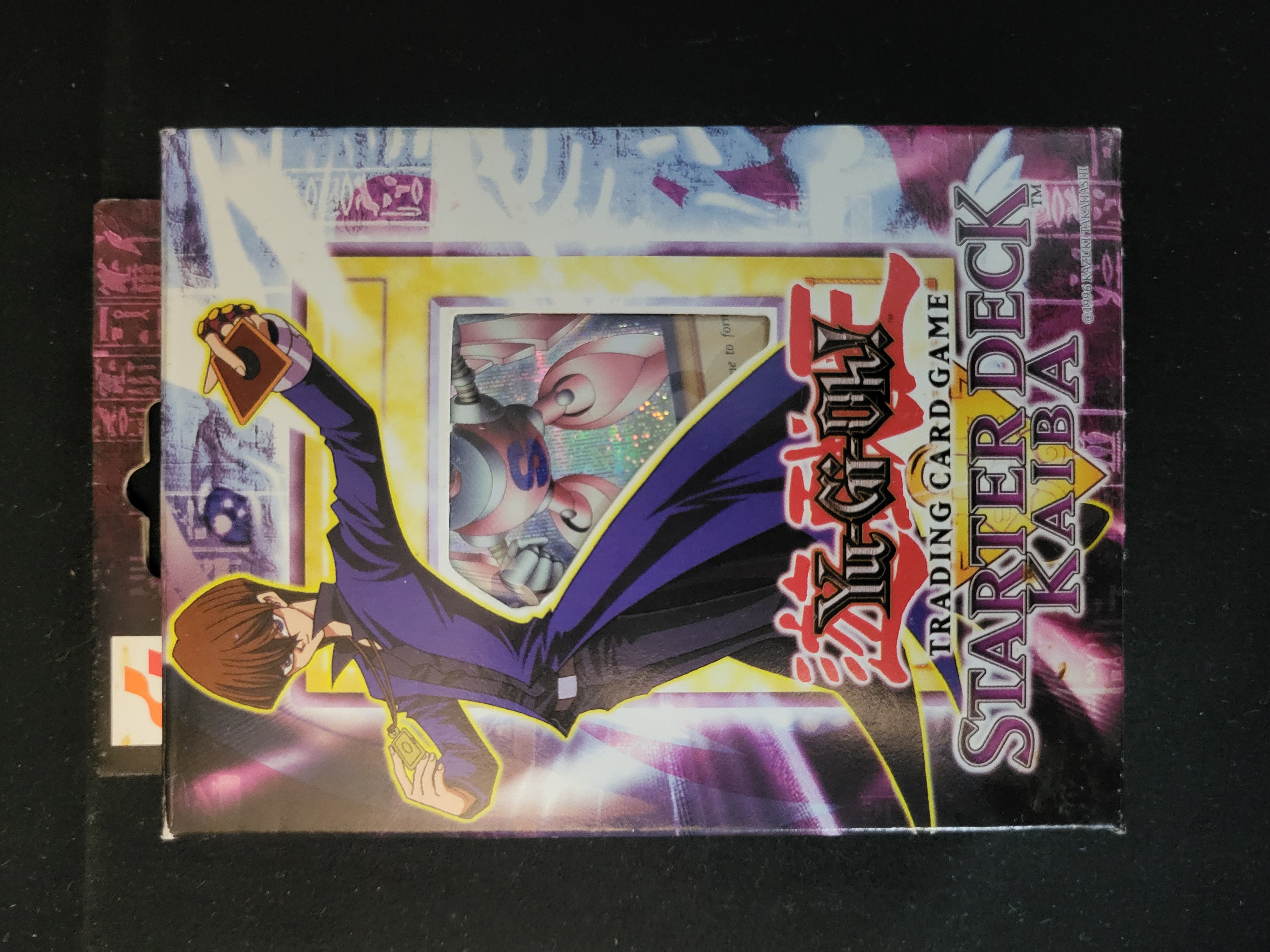 BID PER WHAT YOU SEE IN THE PHOTO, NOT THE AI GENERATED TITLES AND DESCRIPTIONS! A Yu-Gi-Oh! Trading Card Game Starter Deck Kaiba manufactured by Upper Deck Entertainment. The cardstock packaging features character artwork of Seto Kaiba on the front panel with a die-cut window revealing a holographic foil card. The reverse side lists the set contents as 47 common cards, 3 foil cards, a rule book, and a game mat. Printed markings include the Yu-Gi-Oh! series logo, a 1996 Kazuki Takahashi copyright, and Upper Deck corporate information. The card visible in the window is Gamma the Magnet Warrior.