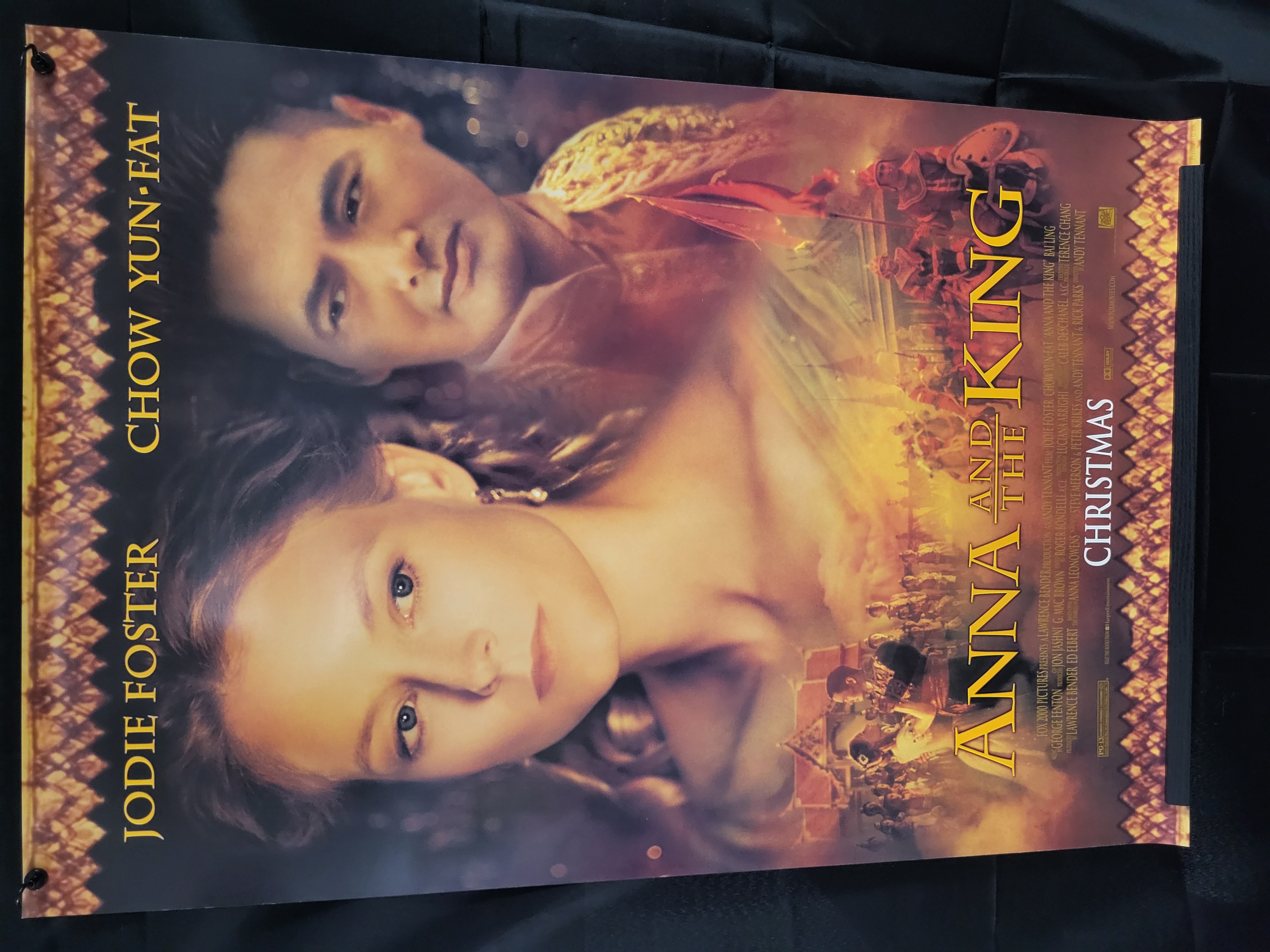 BID PER WHAT YOU SEE IN THE PHOTO, NOT THE AI GENERATED TITLES AND DESCRIPTIONS! An original double-sided promotional film poster for the 1999 motion picture Anna and the King, starring Jodie Foster and Chow Yun-Fat. This paper-based collectible features central portraits of the lead actors with the film title rendered in large gold-toned lettering. The bottom of the poster includes a Christmas release teaser. Production credits for Fox 2000 Pictures and director Andy Tennant are visible in the lower margin. The background artwork depicts an ornate historical setting with various figures in period attire.