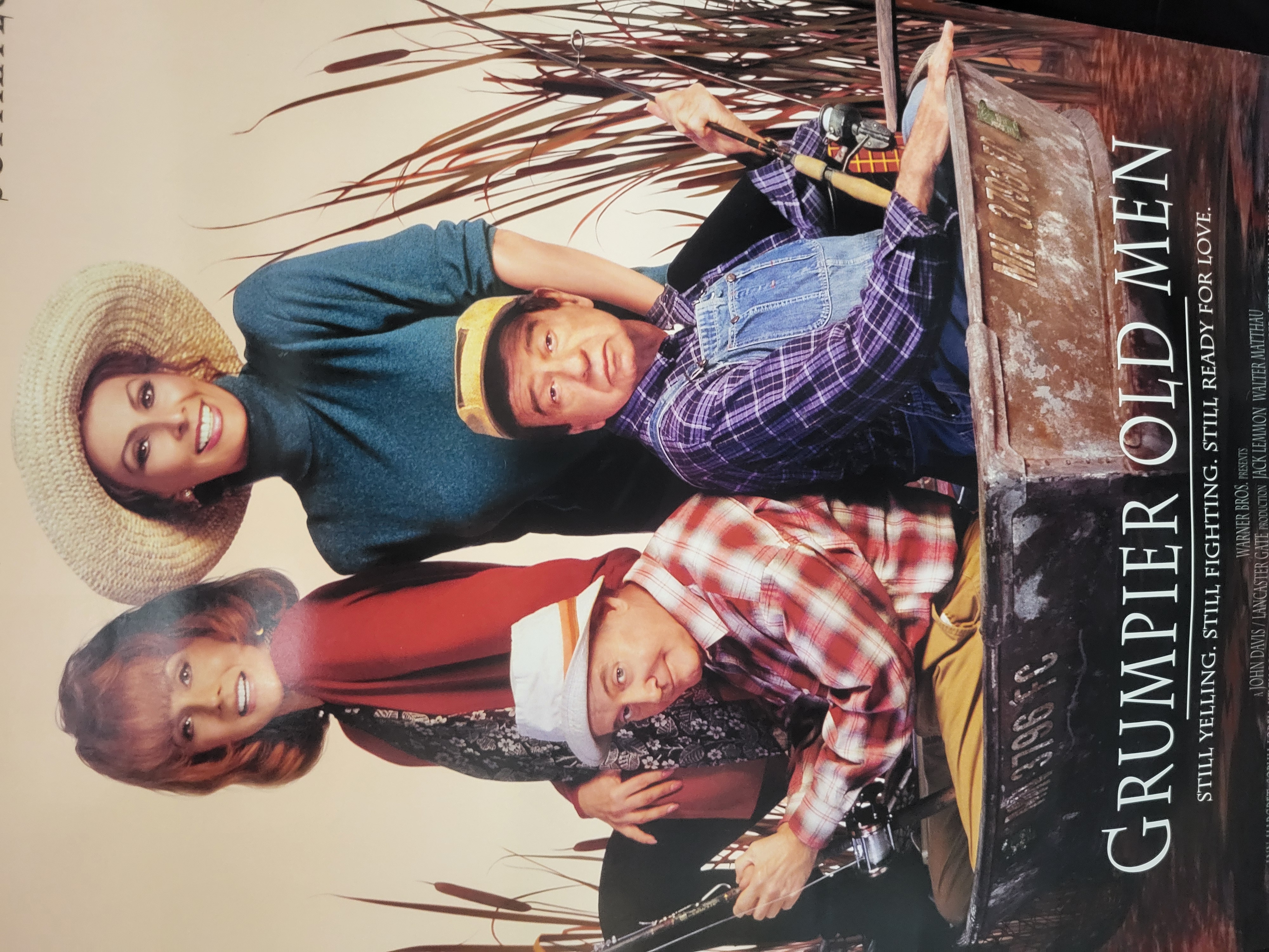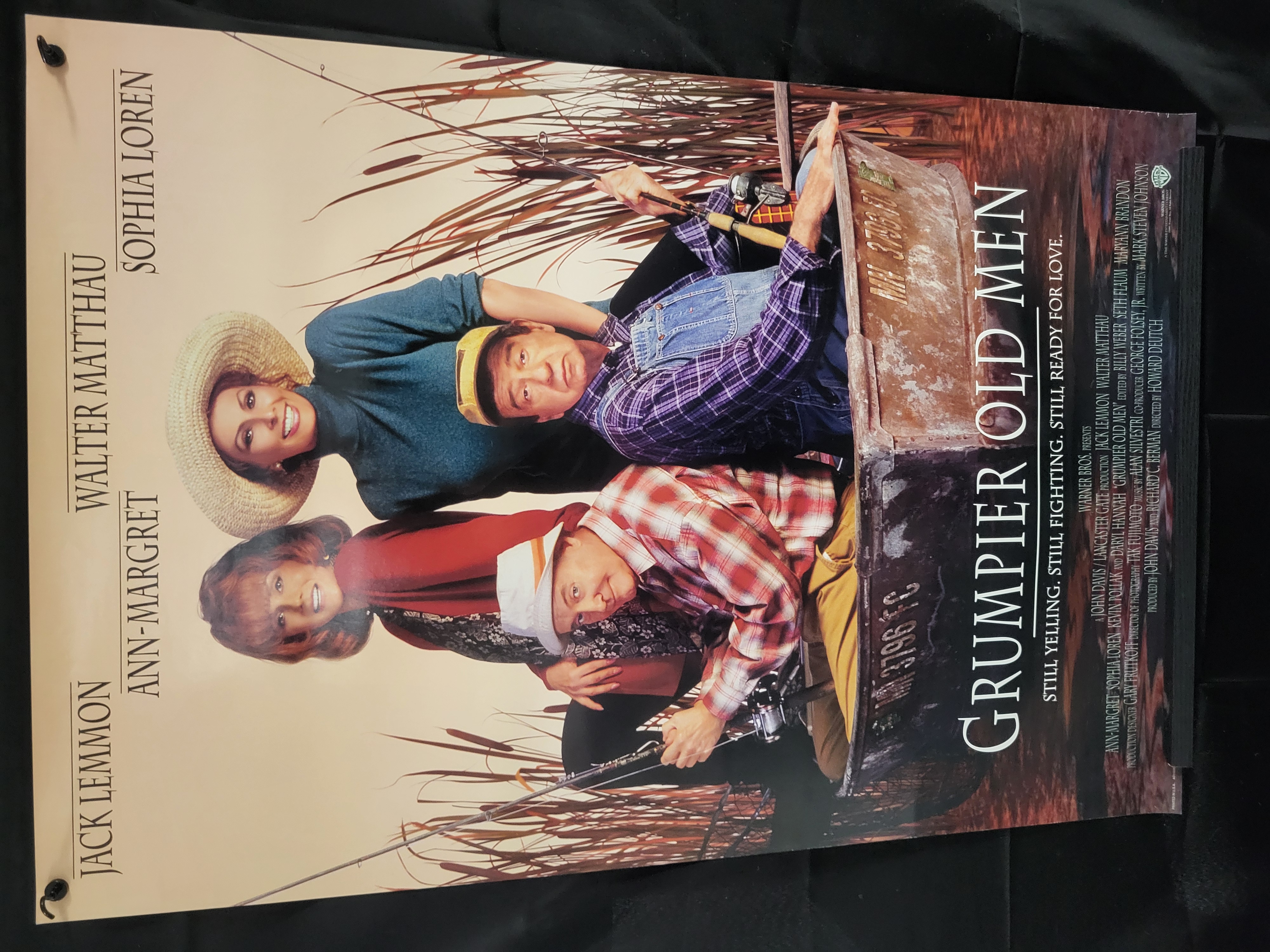 BID PER WHAT YOU SEE IN THE PHOTO, NOT THE AI GENERATED TITLES AND DESCRIPTIONS! An original theatrical movie poster for the 1995 Warner Bros. film Grumpier Old Men. The poster features a photographic image of lead actors Jack Lemmon, Walter Matthau, Ann-Margret, and Sophia Loren seated in a fishing boat. The film title is printed vertically on the right side above the tagline Still Yelling. Still Fighting. Still Ready For Love. A full block of production credits is located in the lower right corner, including mentions of director Howard Deutch and producers John Davis and Richard C. Berman. The names of the four principal actors are listed vertically along the left-hand margin. The poster is printed on standard poster paper stock.