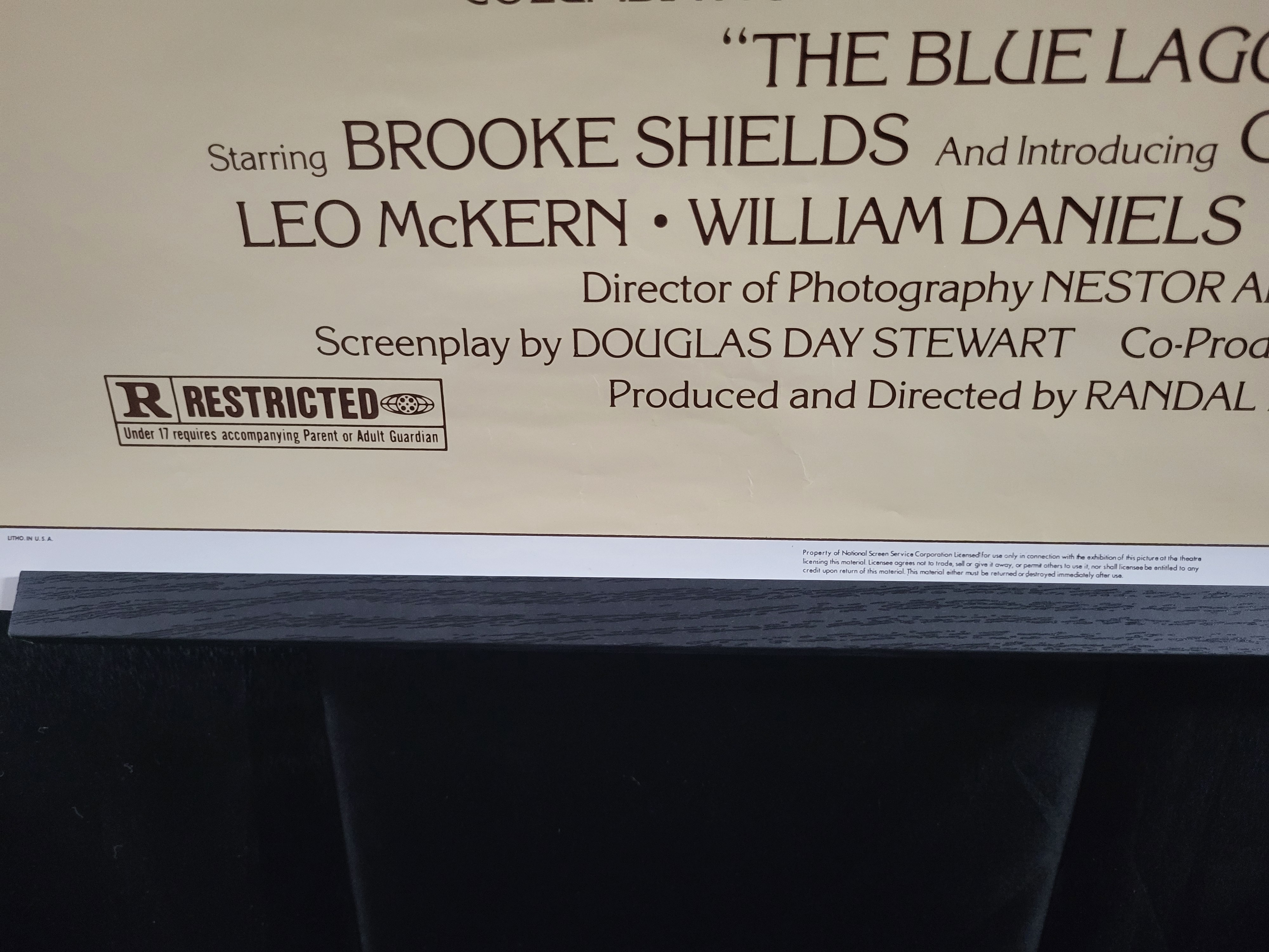BID PER WHAT YOU SEE IN THE PHOTO, NOT THE AI GENERATED TITLES AND DESCRIPTIONS! This original theatrical movie poster for the 1980 film The Blue Lagoon features a photographic image by Patrick Demarchelier of the film stars Brooke Shields and Christopher Atkins. The poster is printed on paper and includes a narrative tagline beginning with A story of natural love, followed by the title in stylized blue lettering. Production credits for Columbia Pictures are listed, including director Randal Kleiser and cast members Leo McKern and William Daniels. Official markings include the Columbia Pictures logo, an MPAA R RESTRICTED rating box, and National Screen Service identification NSS 800092. The lower margin includes the text LITHO IN U.S.A. and property rights information for the National Screen Service Corporation.