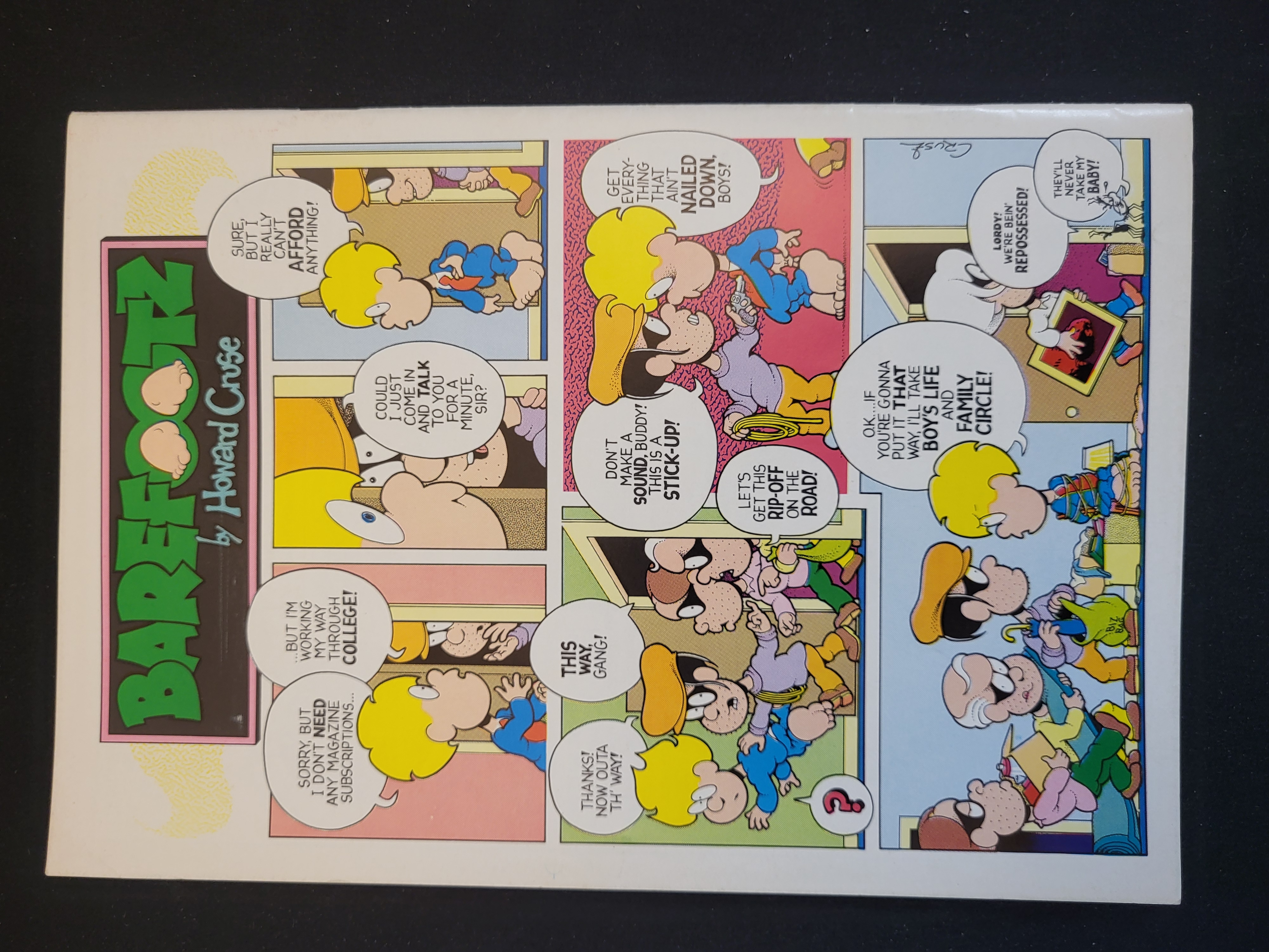 BID PER WHAT YOU SEE IN THE PHOTO, NOT THE AI GENERATED TITLES AND DESCRIPTIONS! This lot features a first printing of Barefootz Funnies #1, an underground comic book written and illustrated by Howard Cruse. Published in 1975 as a collaboration between Kitchen Sink Enterprises and Woodenware Productions, the cover includes the subtitle Comical Capers for Adults and an original 75-cent price point. The front cover art displays the artist’s characteristic stylized, large-eyed characters, and the back cover features a multi-panel comic strip signed by Cruse. The publication is staple-bound with paper covers and interior pages.