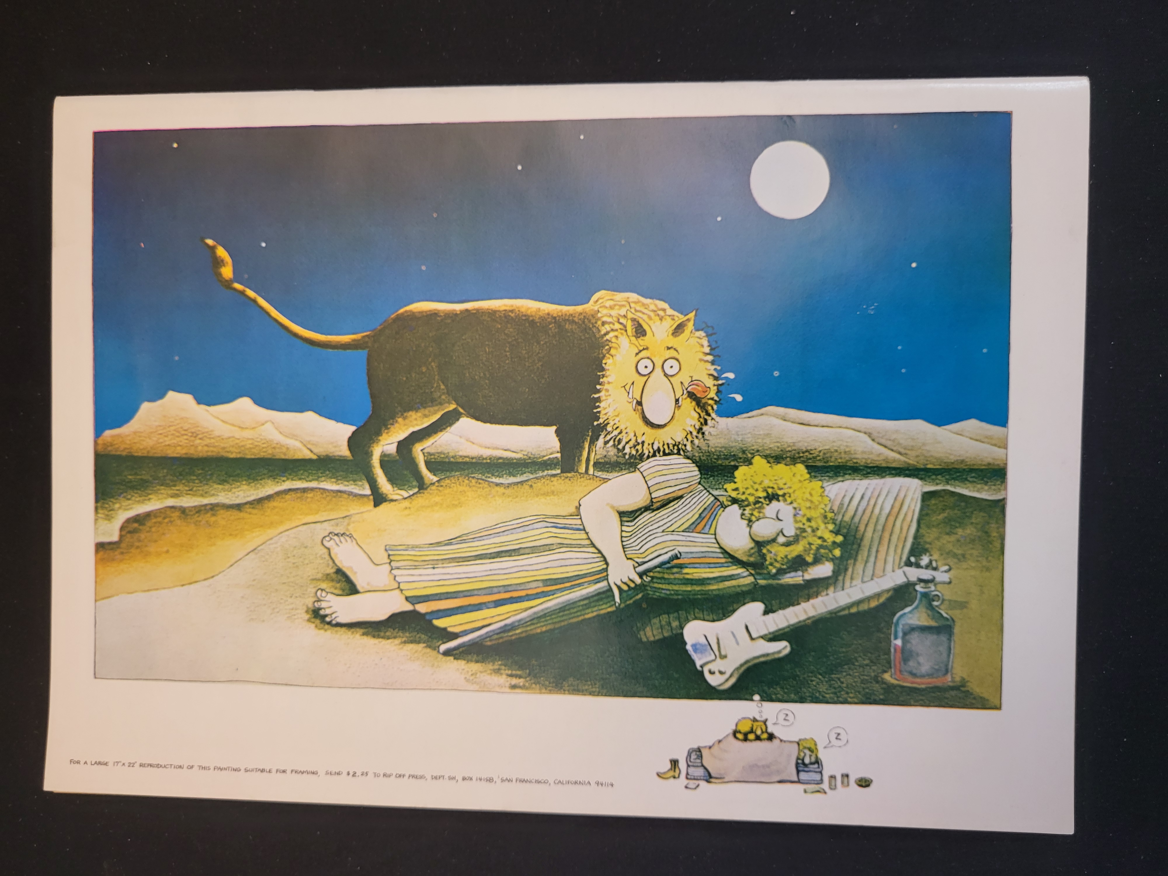 BID PER WHAT YOU SEE IN THE PHOTO, NOT THE AI GENERATED TITLES AND DESCRIPTIONS! The Fabulous Furry Freak Brothers #4, subtitled Brother, Can You Spare 75 Cents For The Freak Brothers?, published by Rip Off Press. This underground comic book features a 1975 copyright date. The cover art, executed by Gilbert Shelton and Dave Sheridan, illustrates characters Phineas, Freewheelin’ Franklin, Fat Freddy, and Fat Freddy’s Cat in a street scene outside a welfare office. The reverse features a parody of Henri Rousseau’s painting The Sleeping Gypsy, depicting Fat Freddy and a lion. The item is a staple-bound illustrated publication.
