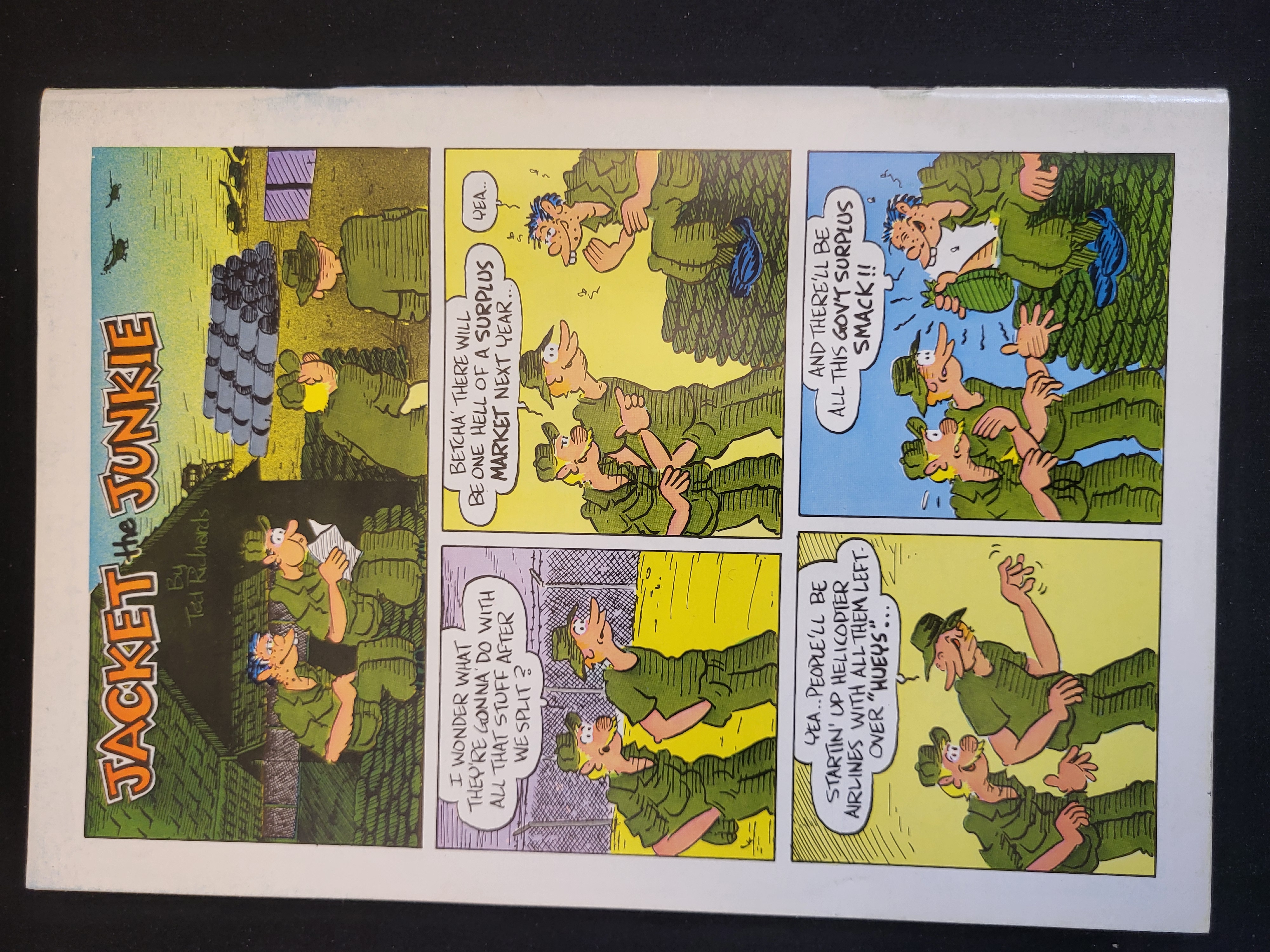 BID PER WHAT YOU SEE IN THE PHOTO, NOT THE AI GENERATED TITLES AND DESCRIPTIONS! Dopin’ Dan No. 2 is an underground comic book written and illustrated by Ted Richards, published in 1973 by Last Gasp. The front cover features a stylized color illustration of a paratrooper and is marked with a 50 cent price and the artist’s signature. The back cover displays a multi-panel comic strip titled Jacket the Junkie, also by Ted Richards, which depicts soldiers in a military setting. The publication is staple-bound and printed on paper.