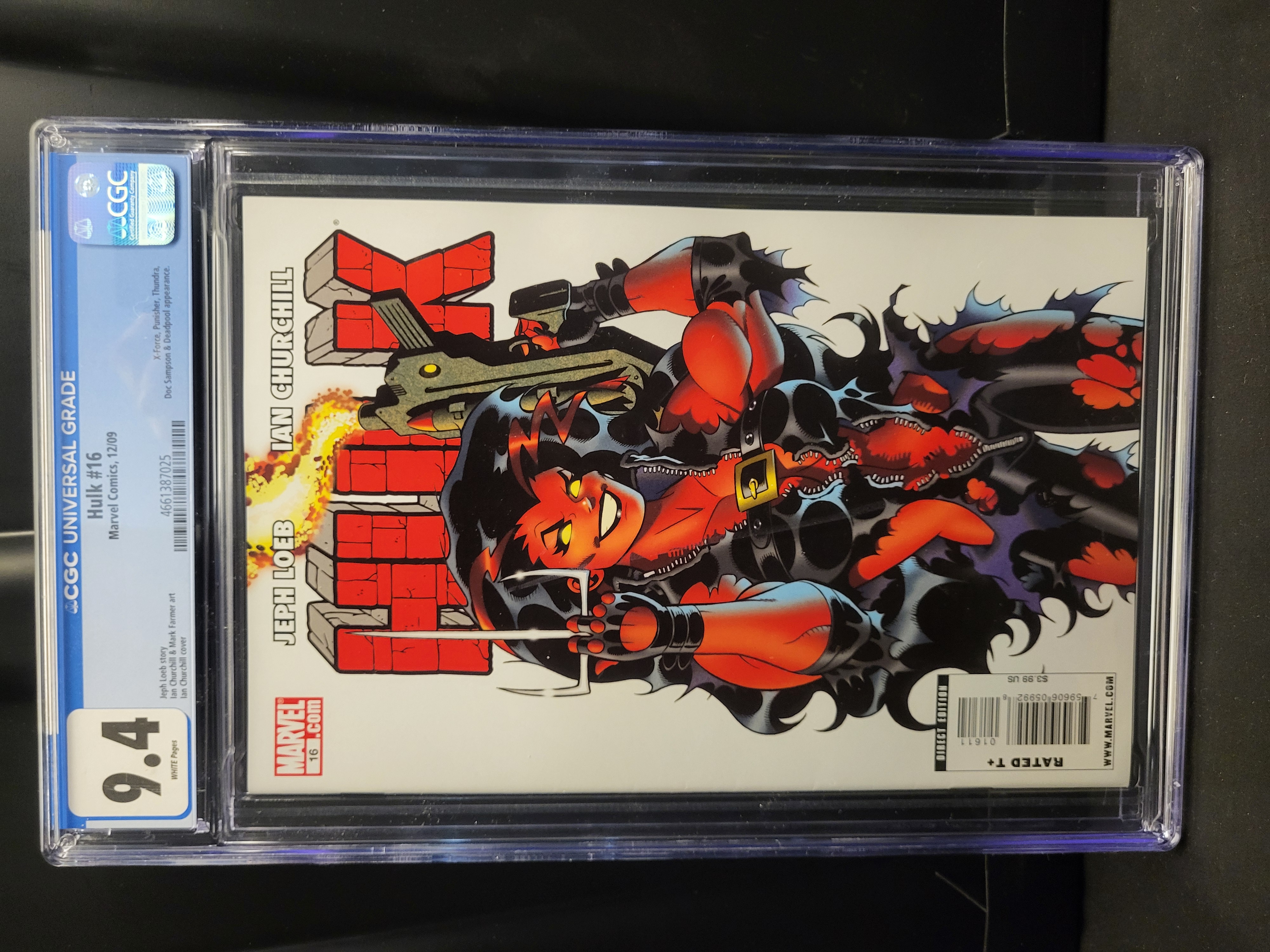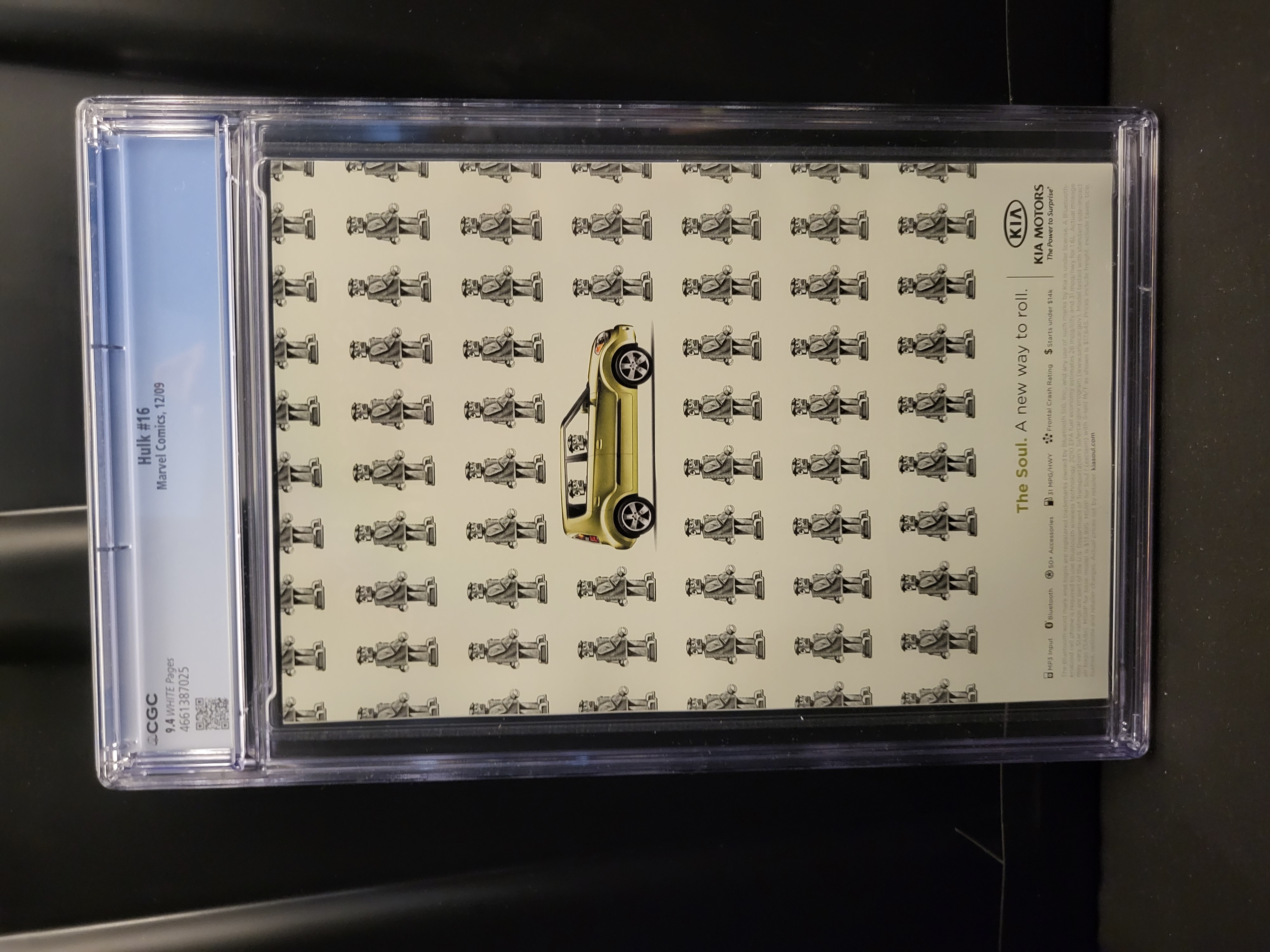 BID PER WHAT YOU SEE IN THE PHOTO, NOT THE AI GENERATED TITLES AND DESCRIPTIONS! A copy of Hulk #16 published by Marvel Comics in December 2009. This issue features the first full appearance and the first cover appearance of Red She-Hulk. The story is written by Jeph Loeb with interior art by Ian Churchill and Mark Farmer, and cover art by Ian Churchill. The issue includes appearances by X-Force, the Punisher, Thundra, Doc Samson, and Deadpool. The comic book is professionally encapsulated in a standard clear plastic Certified Guaranty Company (CGC) holder. The back cover displays a full-page advertisement for the Kia Soul.