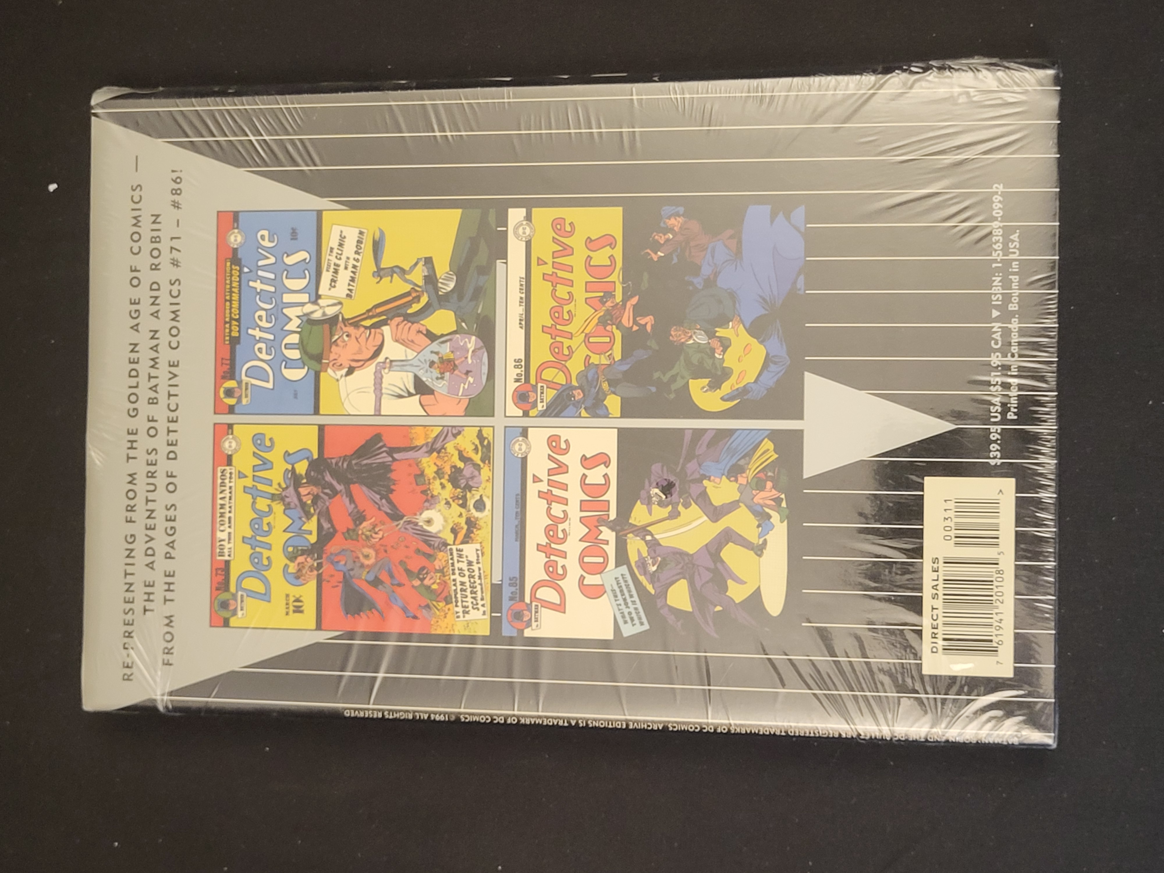 BID PER WHAT YOU SEE IN THE PHOTO, NOT THE AI GENERATED TITLES AND DESCRIPTIONS! A factory-sealed hardcover copy of Batman Archives, Volume 3, published by DC Comics in 1994 as part of the DC Archive Editions series. This volume reprints Golden Age stories featuring Batman and Robin originally published in Detective Comics issues 71 through 86, with art by Bob Kane. The dust jacket features a classic illustration of Batman and Robin on the front against a pinstripe background, while the reverse displays four Detective Comics cover thumbnails and a barcode. The book is bound in hardcover and remains in its original plastic shrink-wrap. ISBN: 1-56389-099-2.