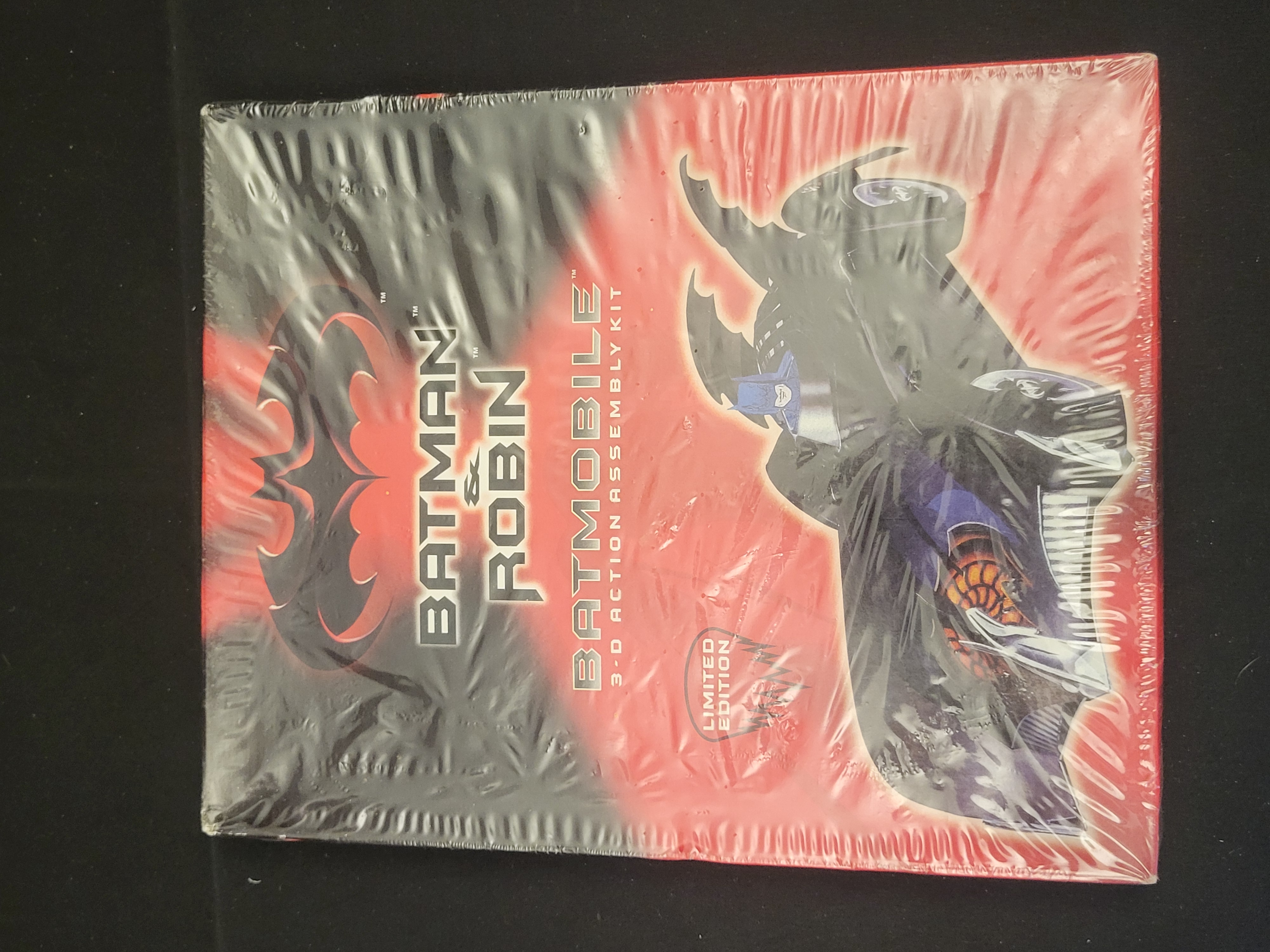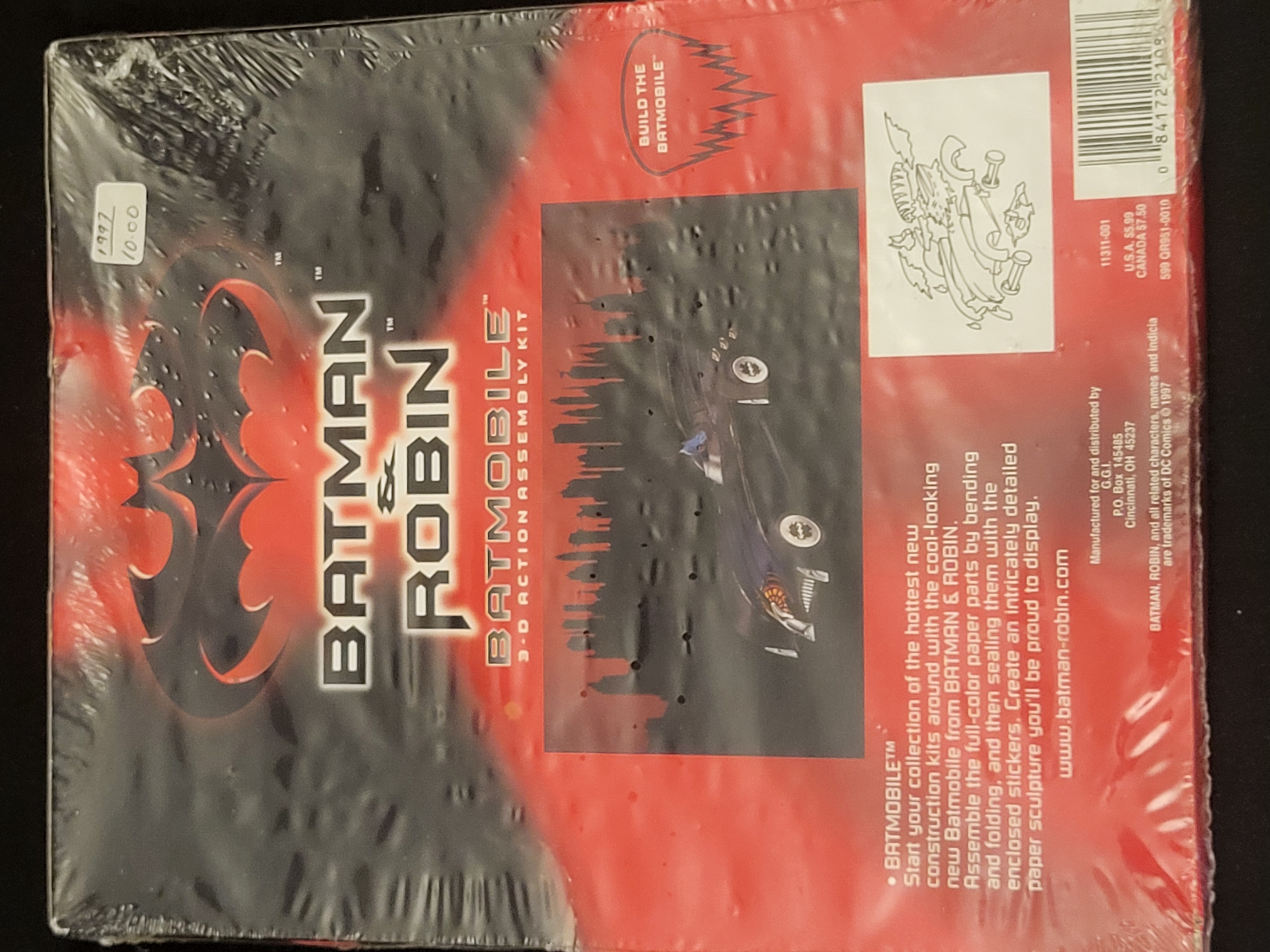 BID PER WHAT YOU SEE IN THE PHOTO, NOT THE AI GENERATED TITLES AND DESCRIPTIONS! This 1997 Batman & Robin Batmobile 3-D Action Assembly Kit is a paper sculpture set manufactured by G.G.I. for the release of the 1997 film. The kit contains full-color paper parts designed to be assembled into a detailed model of the Batmobile through bending and folding, with enclosed stickers used for sealing. The item is housed in its original packaging featuring red and black graphics with the Batman & Robin logo and a Limited Edition stamp on the front. The reverse side provides assembly details, a diagram of the construction process, and manufacturer information. Markings include a 1997 DC Comics copyright and manufacturer details for G.G.I. located in Cincinnati, Ohio.