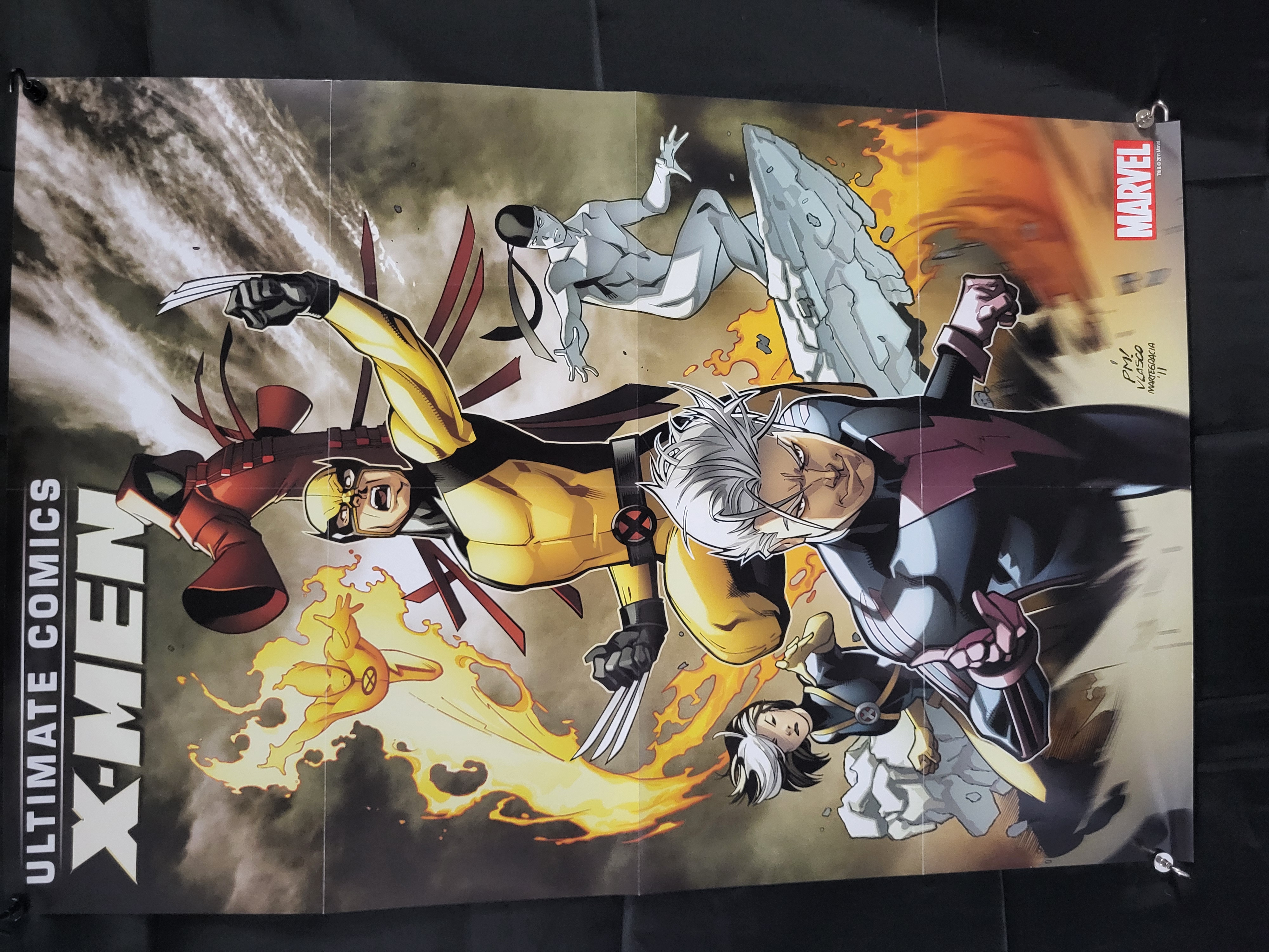 BID PER WHAT YOU SEE IN THE PHOTO, NOT THE AI GENERATED TITLES AND DESCRIPTIONS! This promotional poster for Marvel Comics features artwork for the series Ultimate Comics X-Men by artists Paco Medina, Juan Vlasco, and Marte Gracia. The composition depicts characters from the series including Wolverine, Quicksilver, Iceman, and Rogue. The left margin contains the title ULTIMATE COMICS X-MEN in bold white block lettering. The upper right corner features a red Marvel logo accompanied by a copyright notice stating TM and copyright 2011 Marvel. The artists’ names and the year 11 are printed in the lower right quadrant. This poster was produced as a retail promotional item.