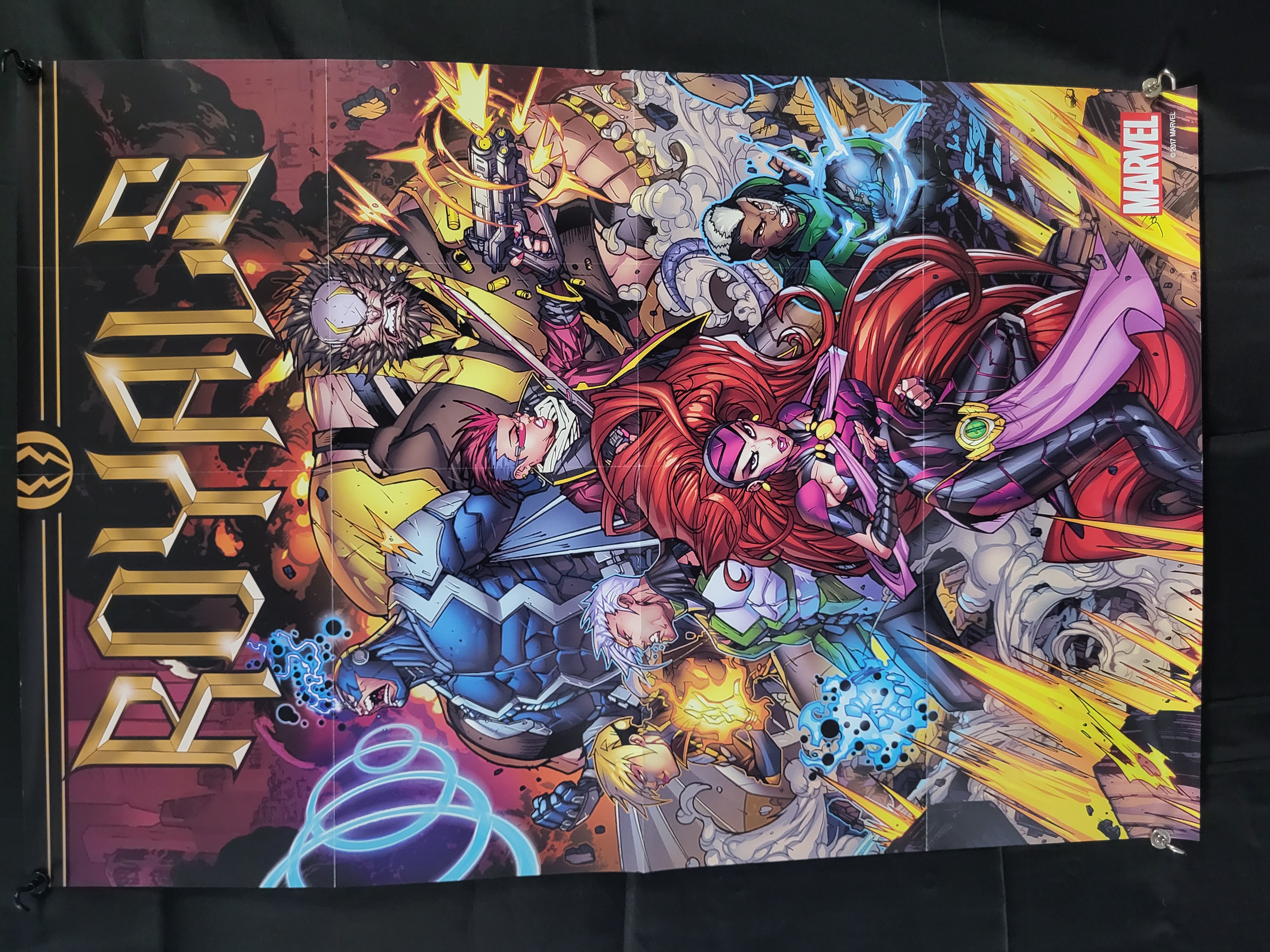 BID PER WHAT YOU SEE IN THE PHOTO, NOT THE AI GENERATED TITLES AND DESCRIPTIONS! A Marvel Comics promotional poster for the 2017 comic book series Royals. The artwork features characters from the Inhumans, including Medusa, Black Bolt, Gorgon, and Crystal. The title ROYALS is printed in a gold three-dimensional font on the left side, adjacent to the Inhumans circular emblem. A red Marvel logo and a copyright notice reading © 2017 MARVEL are positioned in the upper right corner. The poster is constructed of paper and was issued as a promotional supplement for the series.