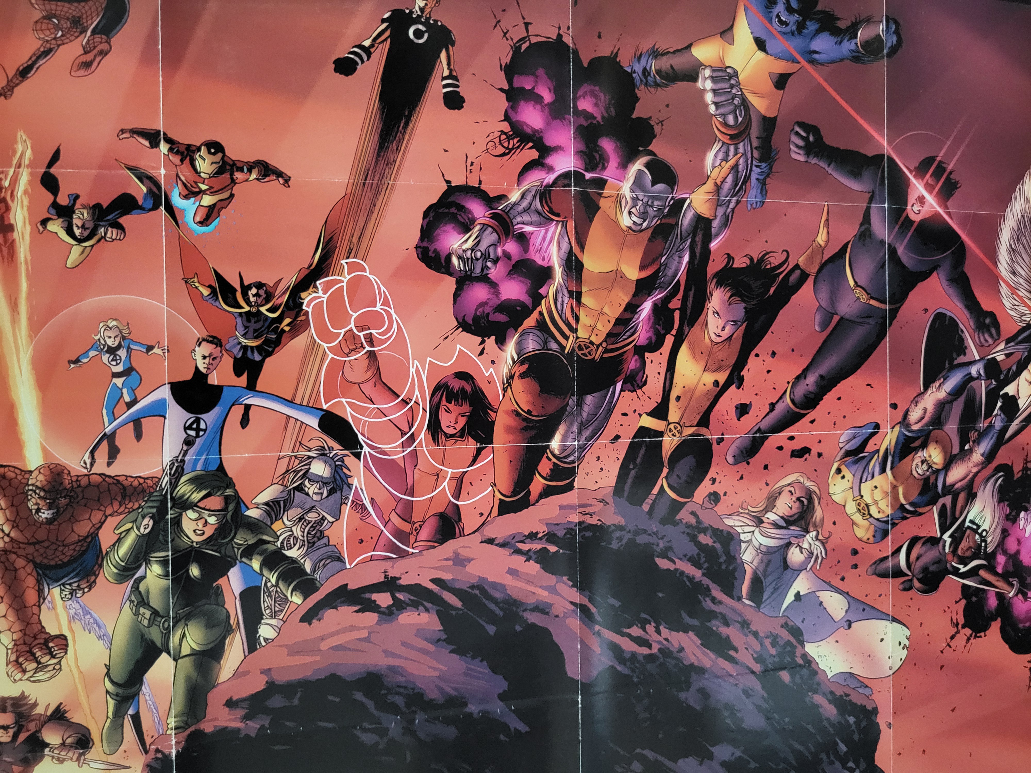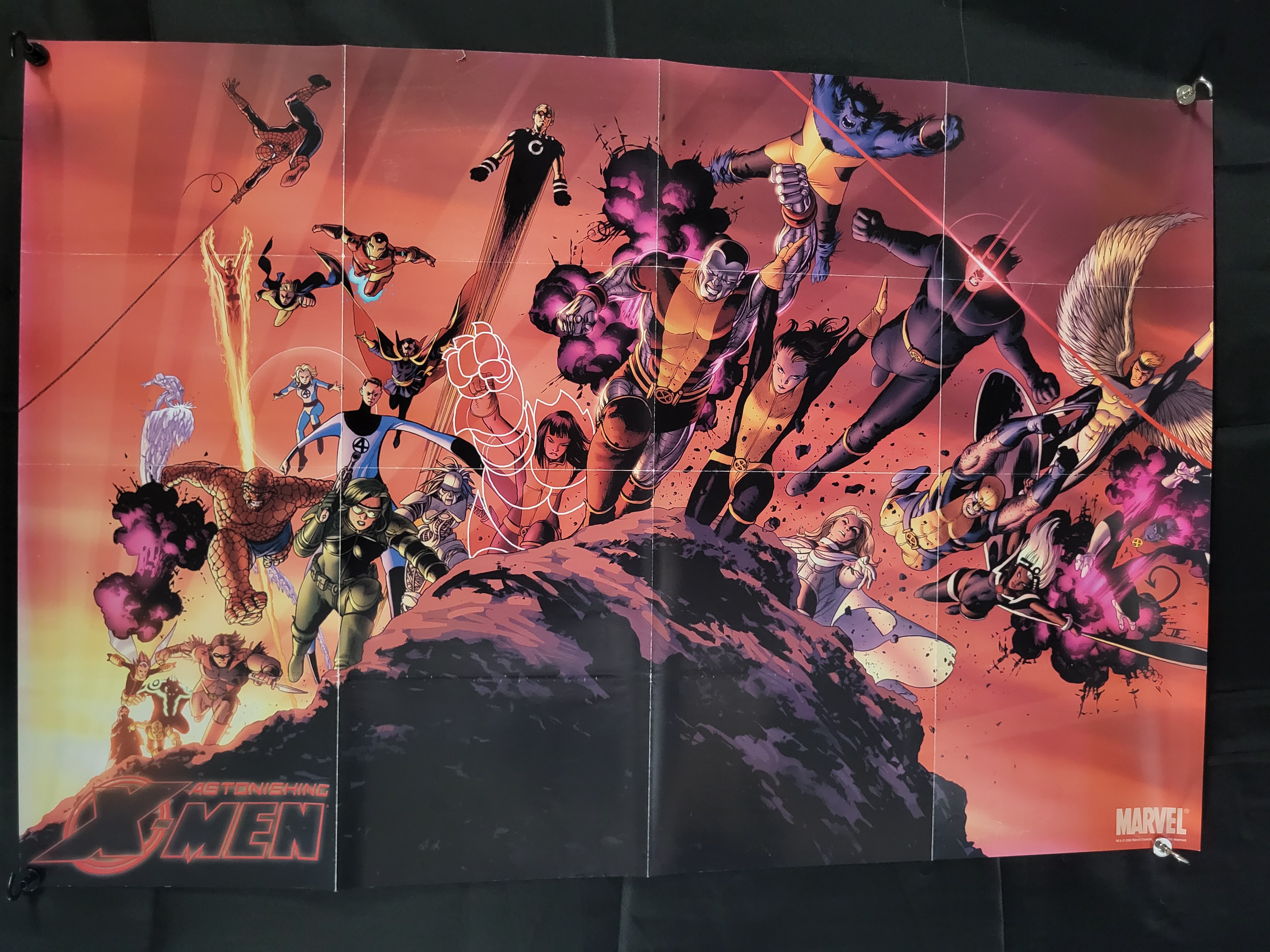 BID PER WHAT YOU SEE IN THE PHOTO, NOT THE AI GENERATED TITLES AND DESCRIPTIONS! A promotional paper poster for Marvel Comics Giant-Size Astonishing X-Men #1, featuring artwork by John Cassaday. The dynamic illustration depicts a large ensemble of Marvel characters, including the core Astonishing X-Men team consisting of Cyclops, Emma Frost, Wolverine, Beast, Kitty Pryde, Colossus, and Armor. Also featured are the Fantastic Four, Spider-Man, Iron Man, and Doctor Strange. The lower left corner displays the Astonishing X-Men title logo, and the lower right corner features the Marvel brand logo with a copyright date of 2008. The item was originally distributed in a folded format.