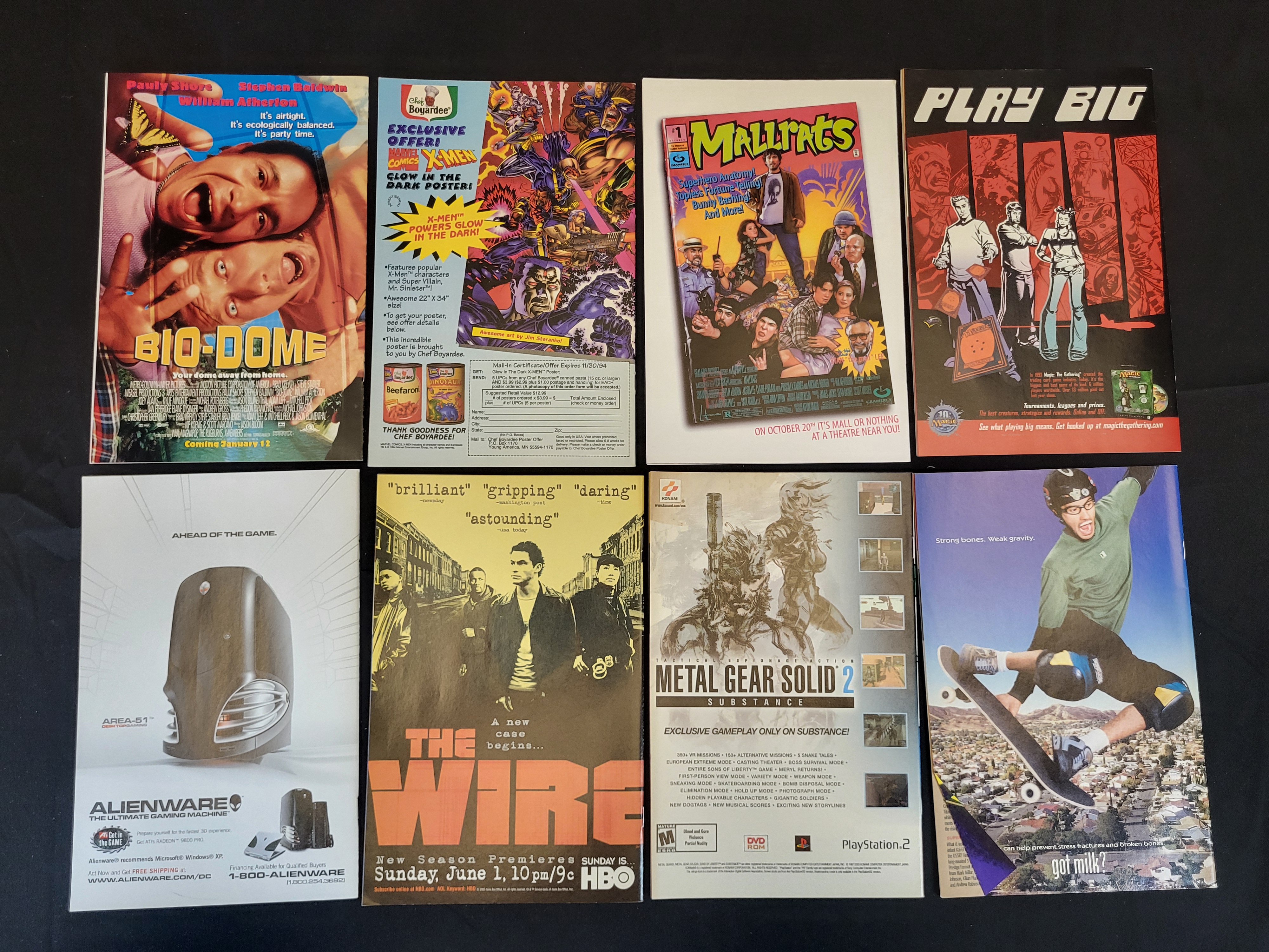 BID PER WHAT YOU SEE IN THE PHOTO, NOT THE AI GENERATED TITLES AND DESCRIPTIONS! A collection of contemporary American comic books published by Marvel Comics and DC Comics, dating from the 1990s and early 2000s. The assortment includes five issues of the satirical series Sweatshop by Peter Bagge, comprising issues 1 through 5, published by DC Comics in 2003. Also included are three Conan titles: Conan number 8, Conan the Adventurer number 2, and Conan vs. Rune number 1, featuring artwork by Barry Windsor-Smith. The comics are standard softcover format with full-color illustrations and staple-bound construction. The back covers feature period advertisements for various media and consumer products, including films such as Bio-Dome and Mallrats, the television series The Wire, and video games including Metal Gear Solid 2: Substance.