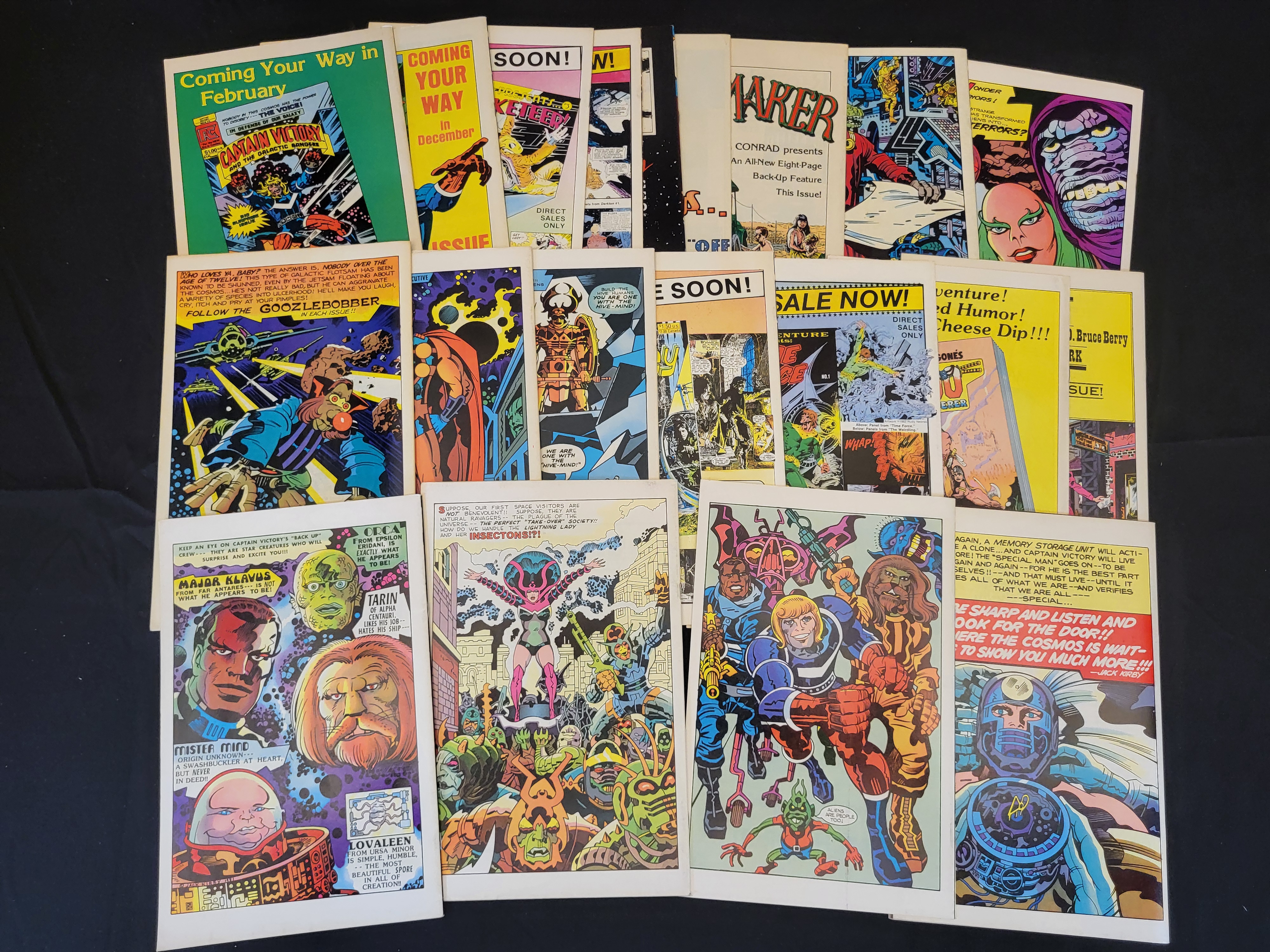 BID PER WHAT YOU SEE IN THE PHOTO, NOT THE AI GENERATED TITLES AND DESCRIPTIONS! A collection of vintage comic books from the early 1980s published by Pacific Comics, featuring the work of artist Jack Kirby. The group includes issues from the series Silver Star and Captain Victory and the Galactic Rangers. Each comic is staple-bound with full-color covers. The collection includes various early issue numbers and a special edition. Visible markings include the PC publisher logo and original price points ranging from $1.00 to $1.50.