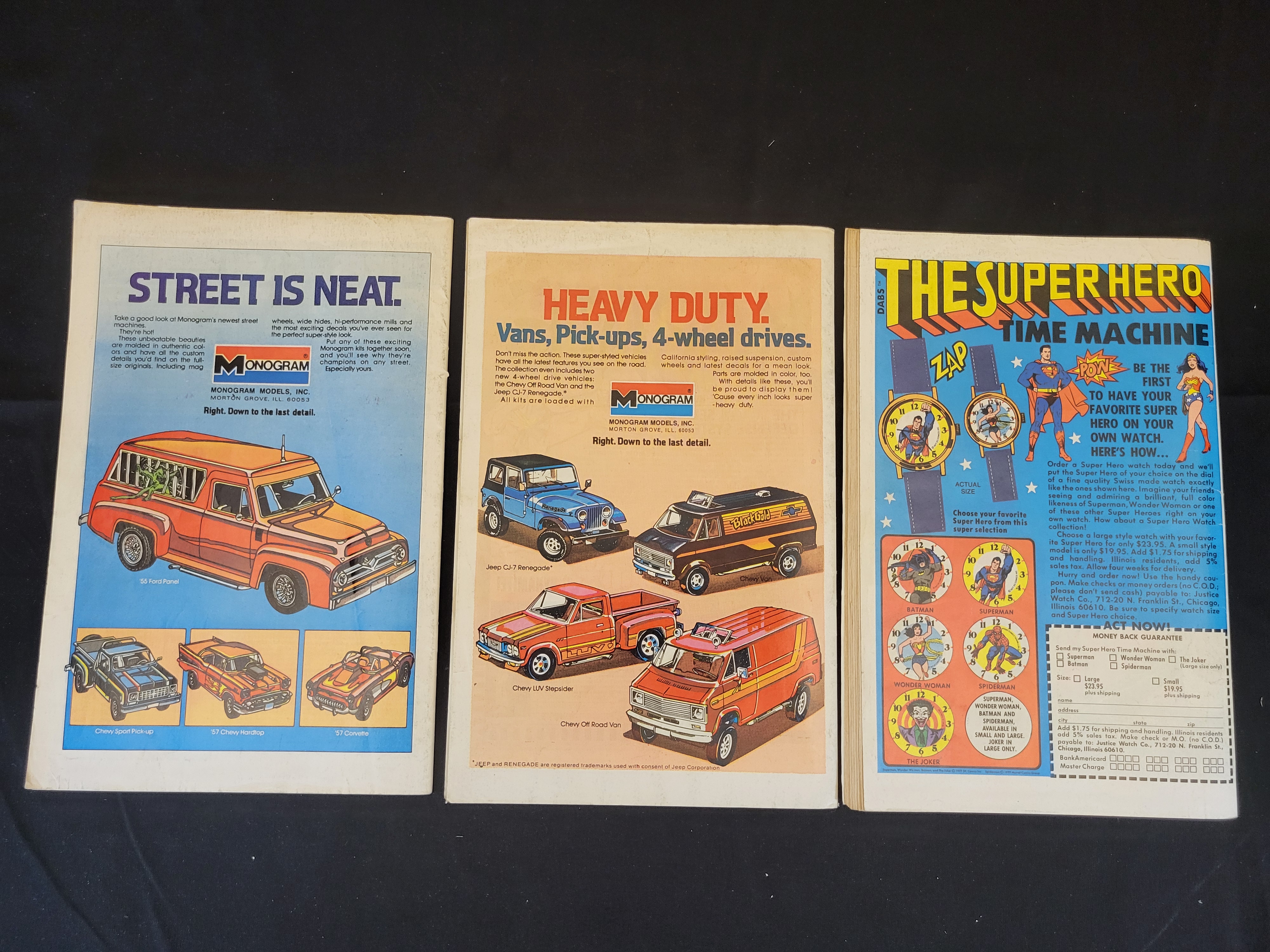 BID PER WHAT YOU SEE IN THE PHOTO, NOT THE AI GENERATED TITLES AND DESCRIPTIONS! A trio of Showcase Presents Power Girl comic books published by DC Comics in 1978. The collection includes issue No. 97 (February), No. 98 (March), and No. 99 (April). Each issue features a 35-cent cover price and the DC Bullet logo. Issue No. 97 is the character’s first solo feature series, and issue No. 99 features a Justice Society of America cameo. The cover art is by Joe Staton and Dick Giordano. The reverse covers display advertisements for Monogram model kits and superhero-themed wristwatches.