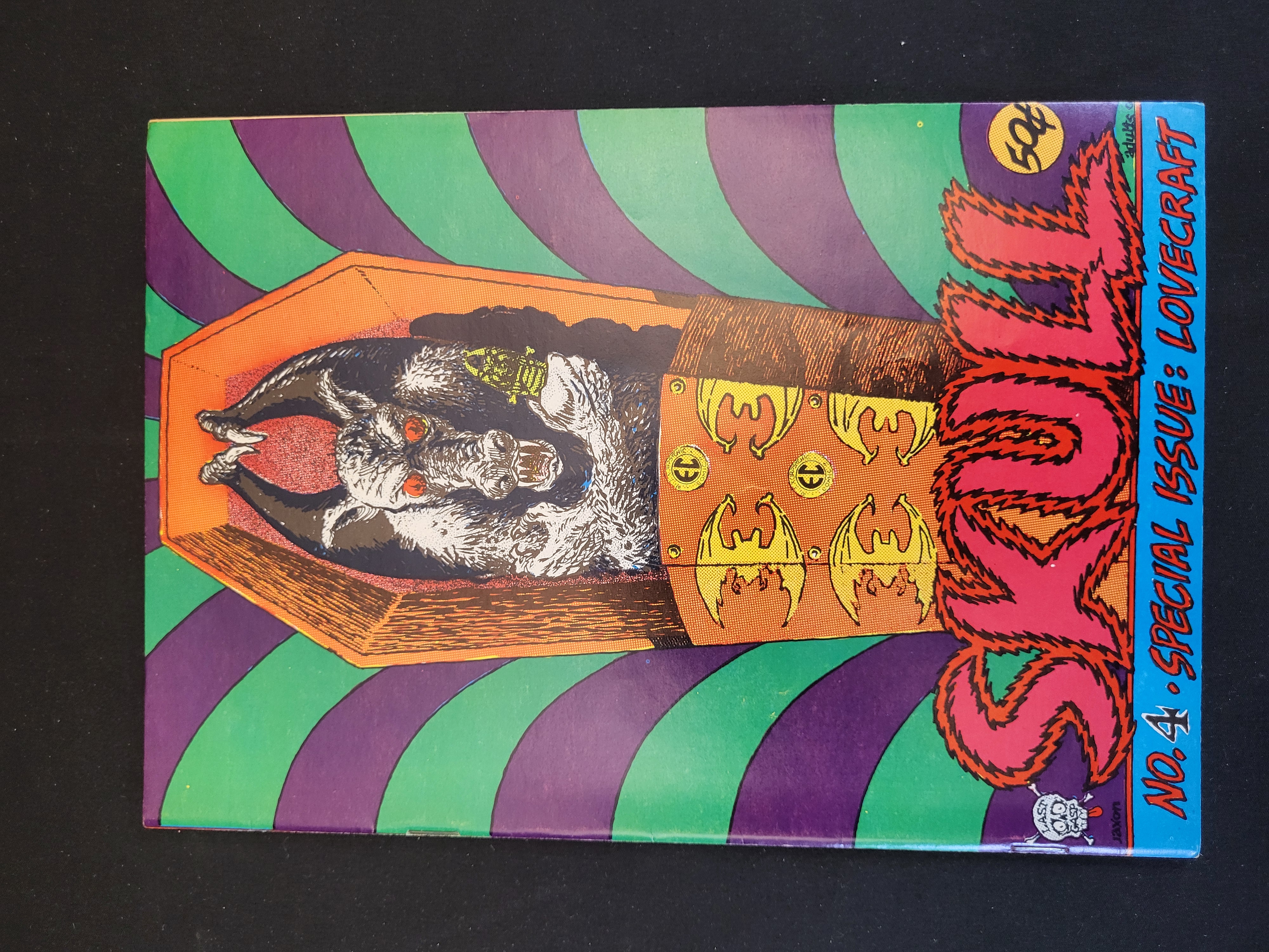 BID PER WHAT YOU SEE IN THE PHOTO, NOT THE AI GENERATED TITLES AND DESCRIPTIONS! This underground comic book is Skull No. 4, a Special Issue: Lovecraft published by Last Gasp Eco-Funnies in 1972. The front cover features psychedelic-style artwork by Jaxon depicting a horned creature in a wooden coffin against a green and purple swirl background. The issue is marked with a 50 cent price point and is designated for Adults only. The back cover contains a full-color, adult-themed illustration of a nude female figure in a gothic, supernatural setting surrounded by demonic entities. The publication features stories and art inspired by the works of H.P. Lovecraft.