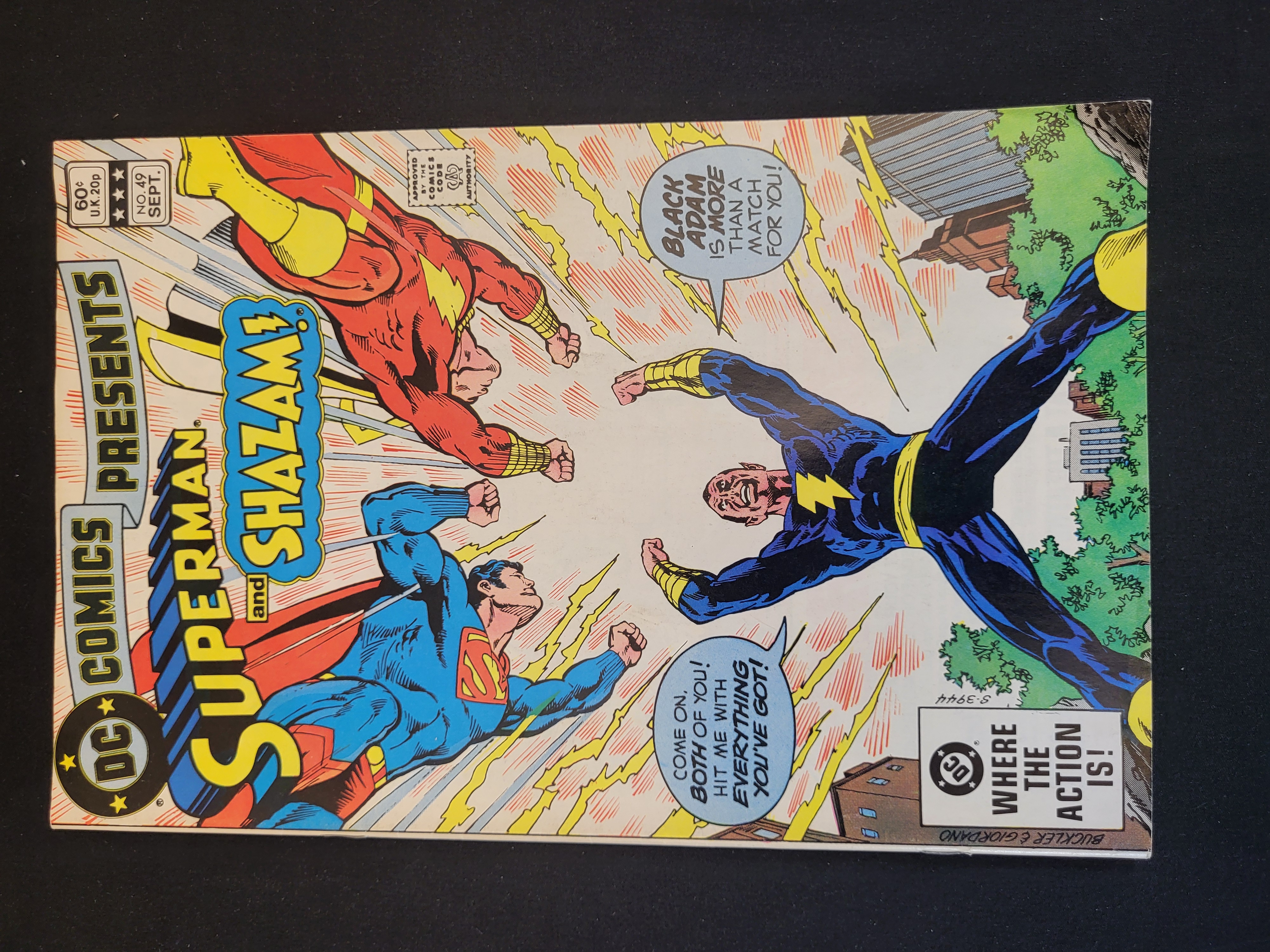 BID PER WHAT YOU SEE IN THE PHOTO, NOT THE AI GENERATED TITLES AND DESCRIPTIONS! DC Comics Presents #49, published in September 1982, featuring a team-up between Superman and Shazam! against Black Adam. The front cover illustration is by Buckler and Giordano and includes the 60 cent and U.K. 20p price marks along with the Comics Code Authority seal. The back cover consists of a full-page advertisement for TSR Hobbies’ Dungeons & Dragons, featuring a promotional comic strip and a mail-in catalog form dated 1982.