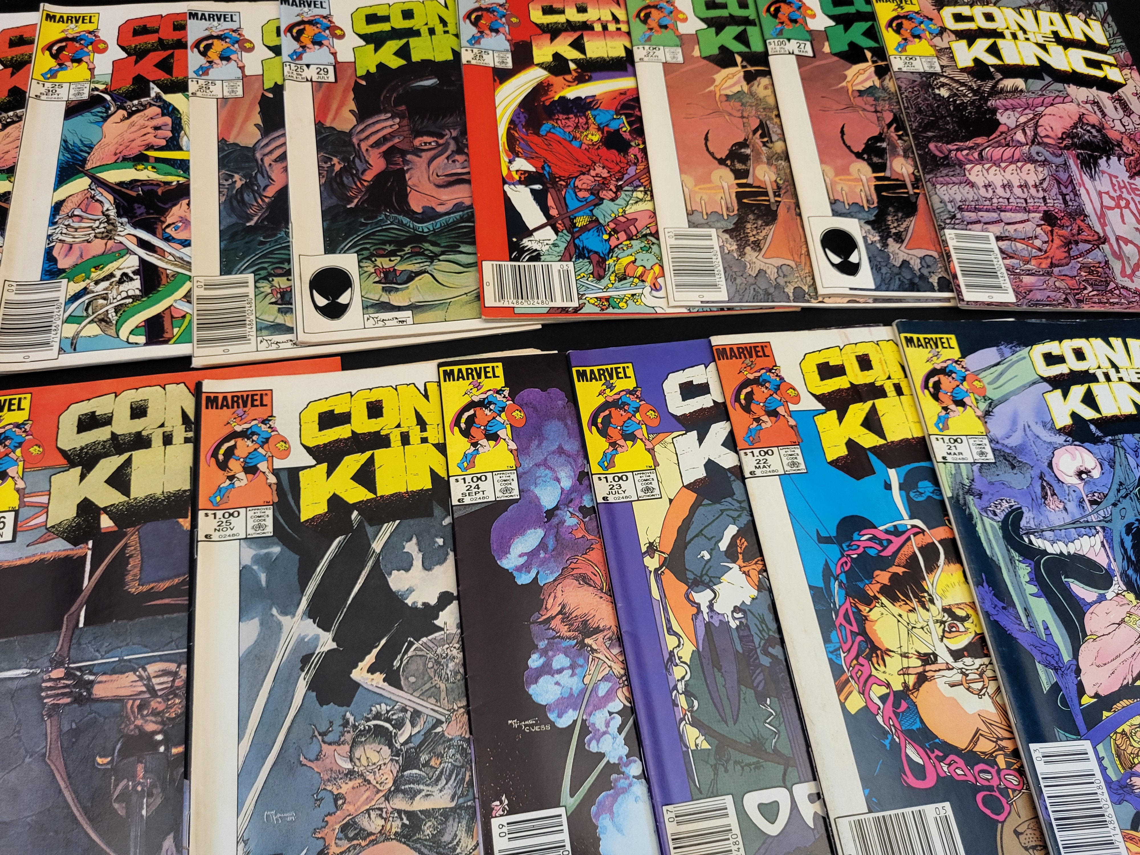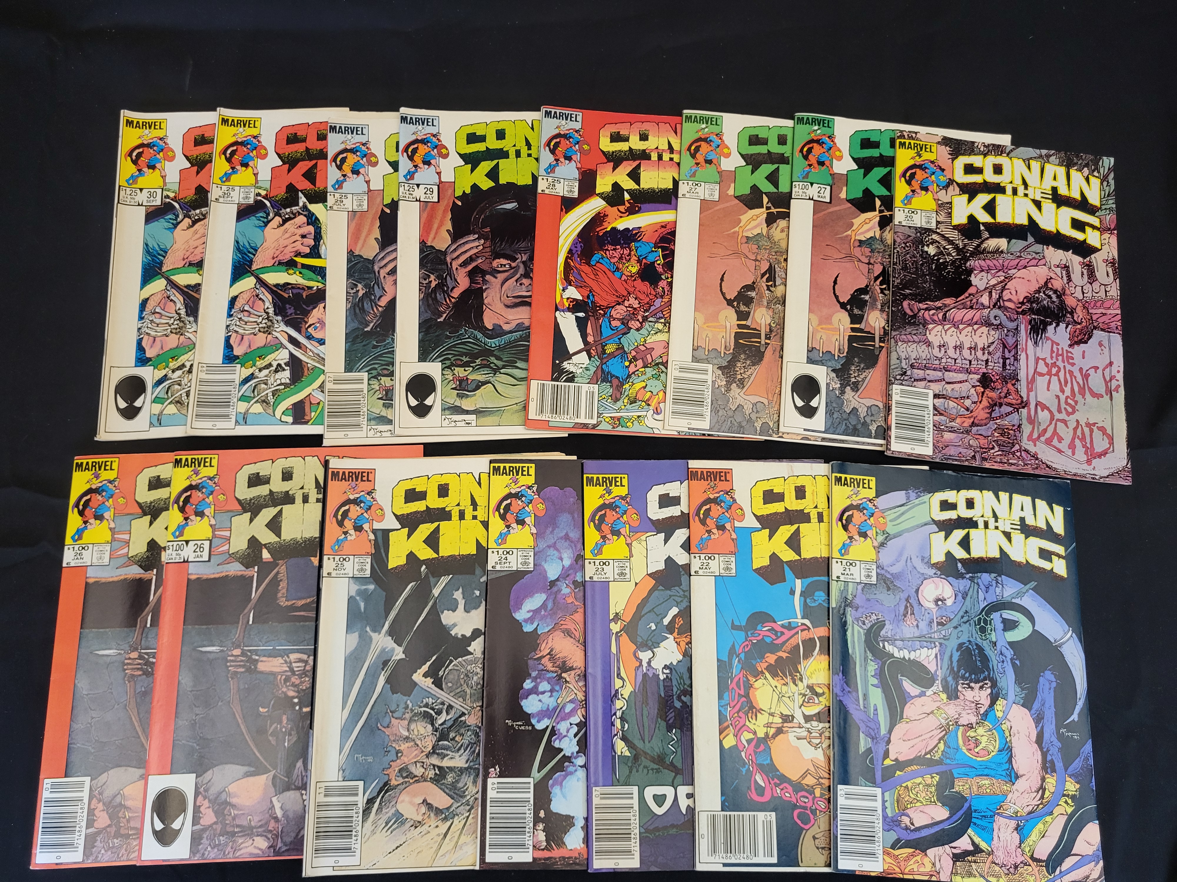 BID PER WHAT YOU SEE IN THE PHOTO, NOT THE AI GENERATED TITLES AND DESCRIPTIONS! A collection of vintage Marvel comic books featuring the title Conan the King. This group includes various issues from the mid-1980s Copper Age, specifically ranging from issue number 20 through 30. Several duplicate copies are included within the assortment. The comics feature standard Marvel mastheads and original cover prices of $1.00 and $1.25. Publication dates correspond to 1984 and 1985. Each issue includes a printed UPC barcode on the front cover.