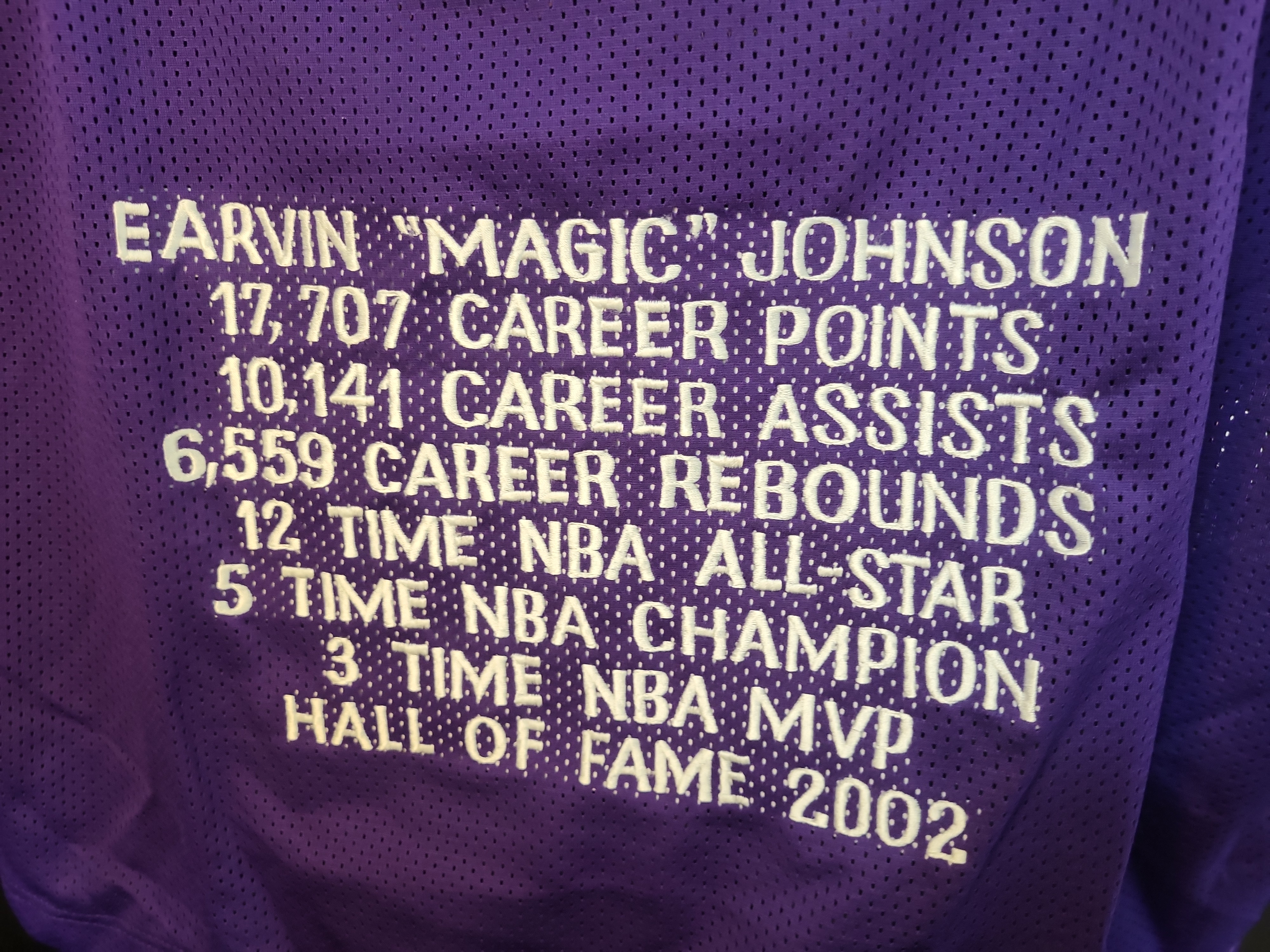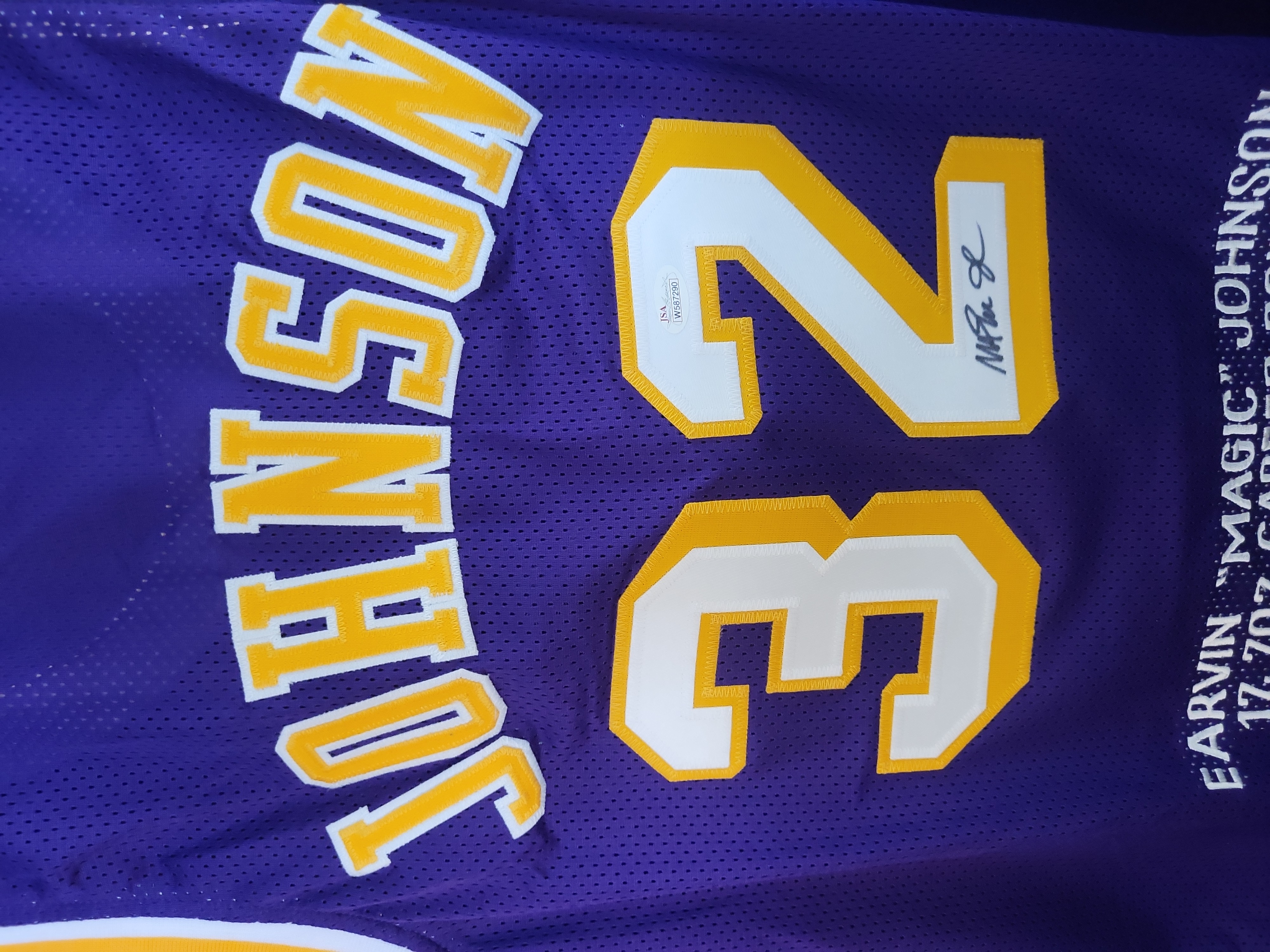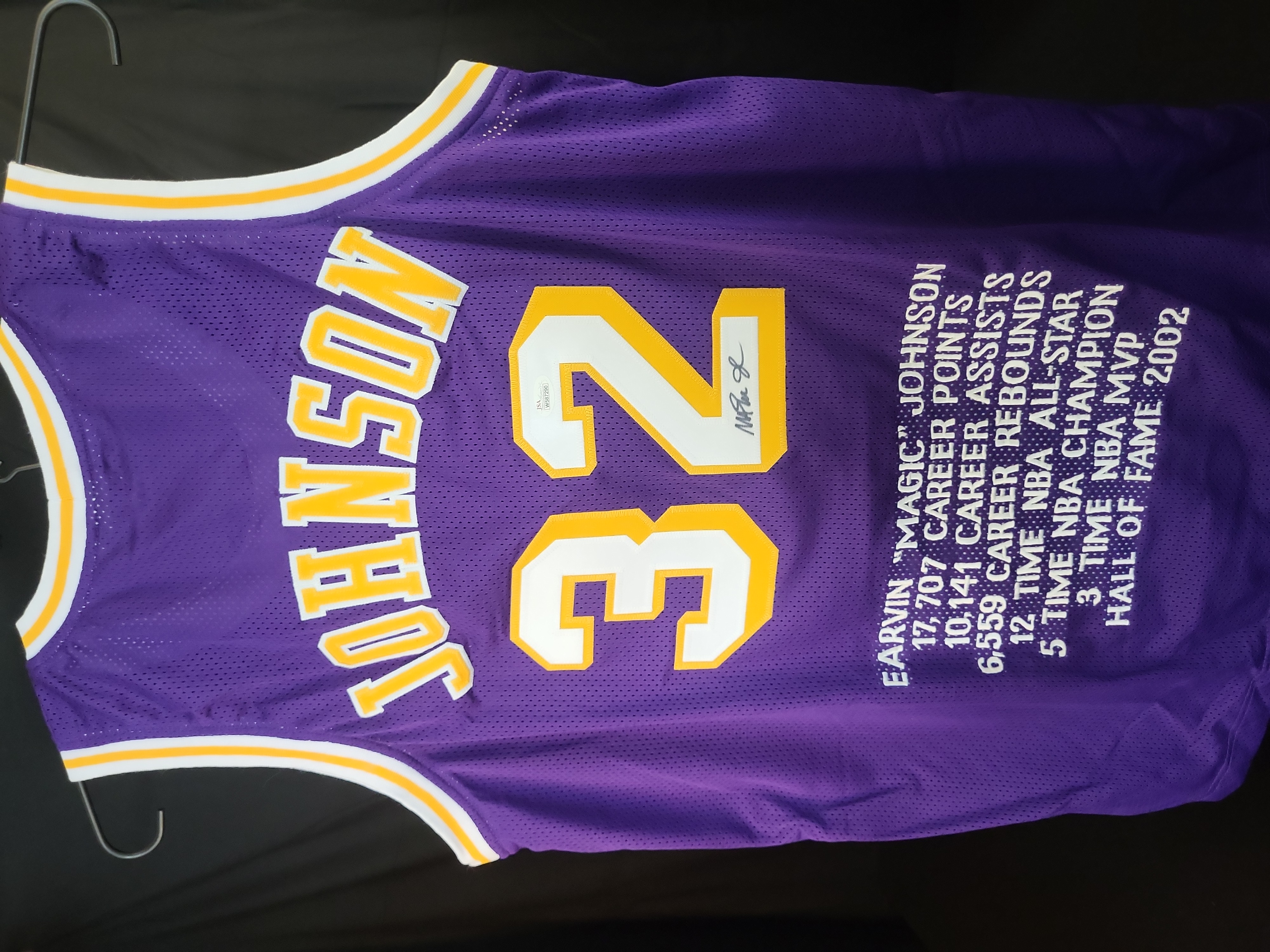 BID PER WHAT YOU SEE IN THE PHOTO, NOT THE AI GENERATED TITLES AND DESCRIPTIONS! Magic Johnson Autographed Los Angeles Lakers Commemorative Jersey, JSA Authenticated