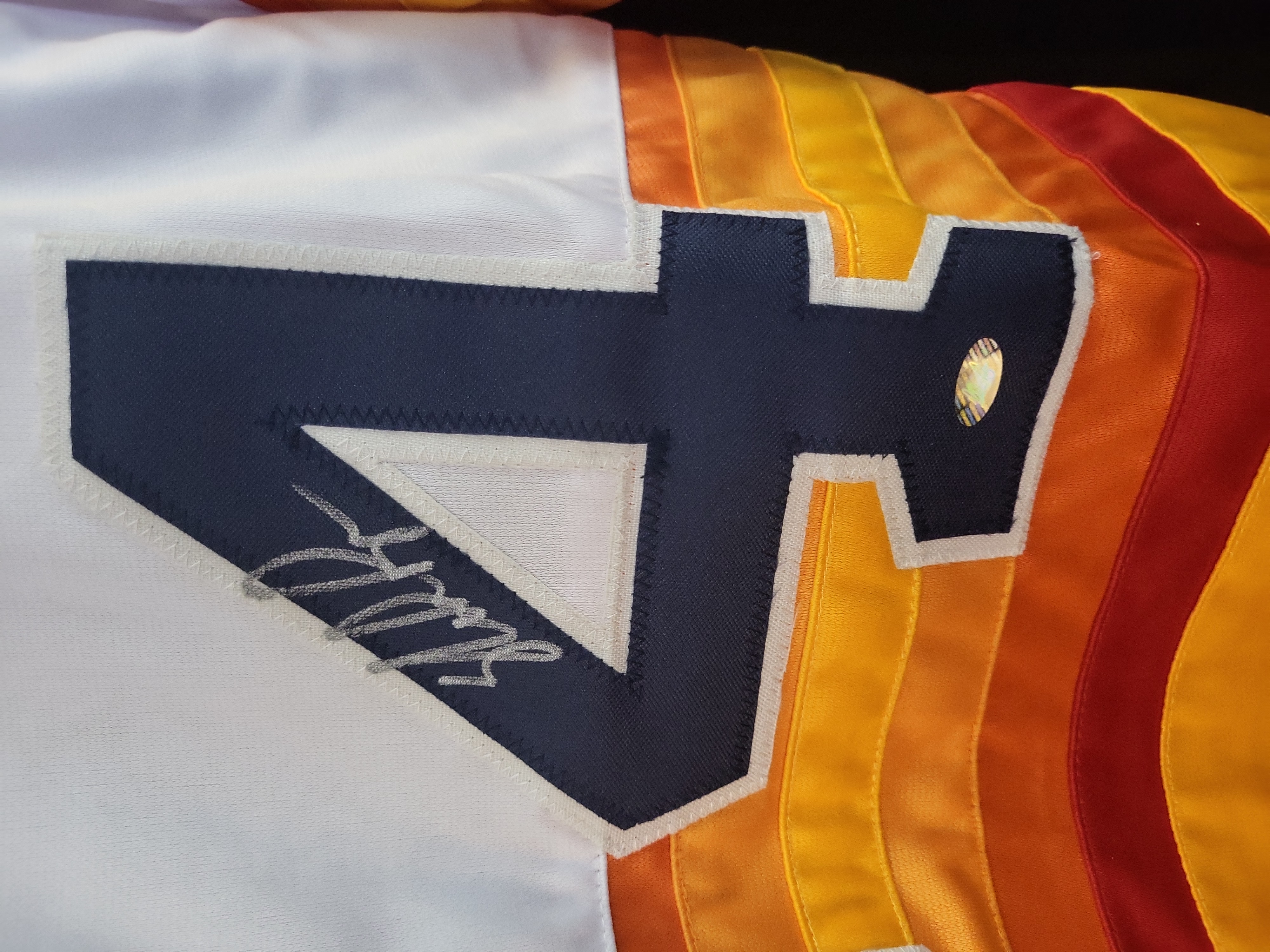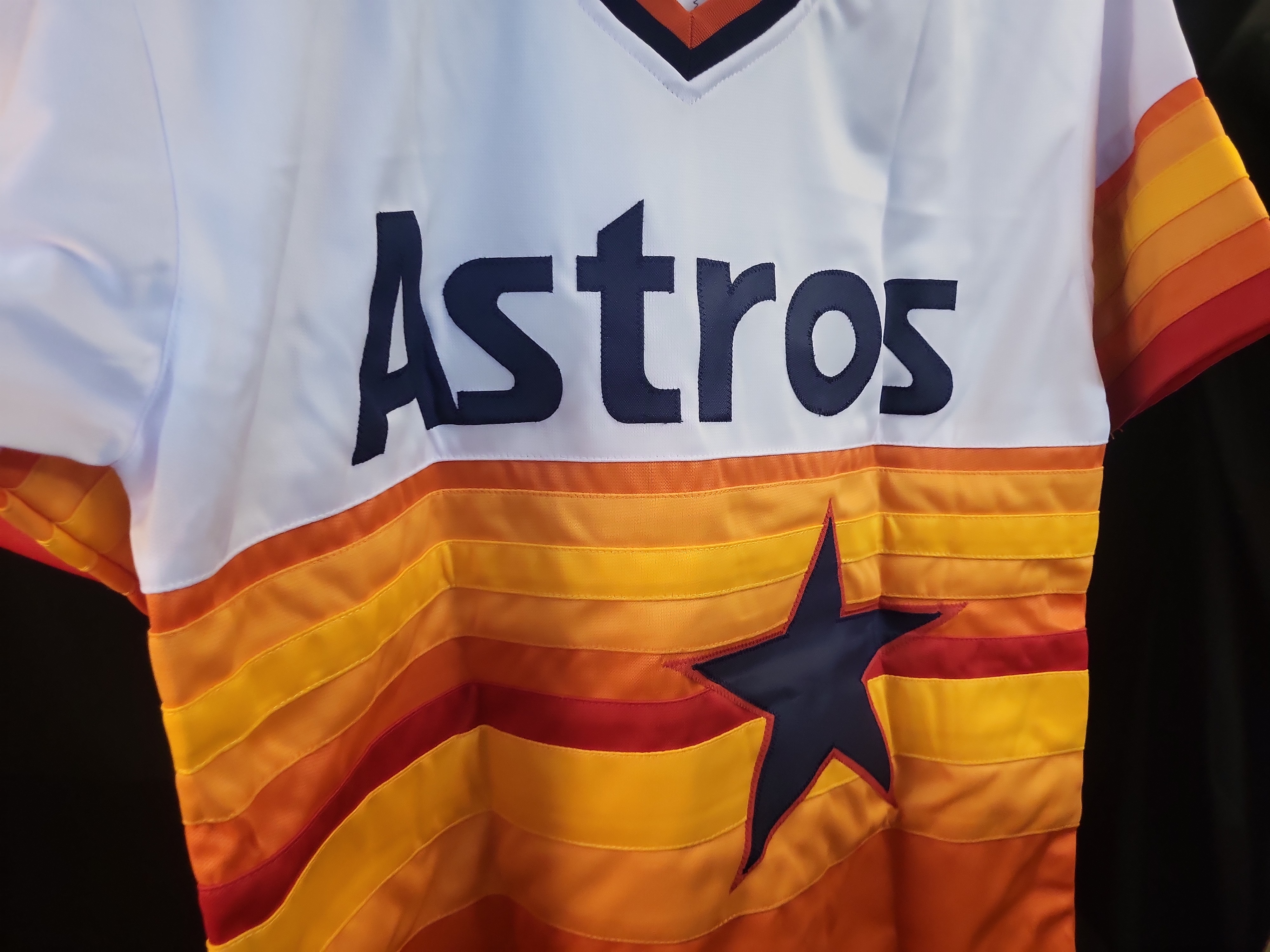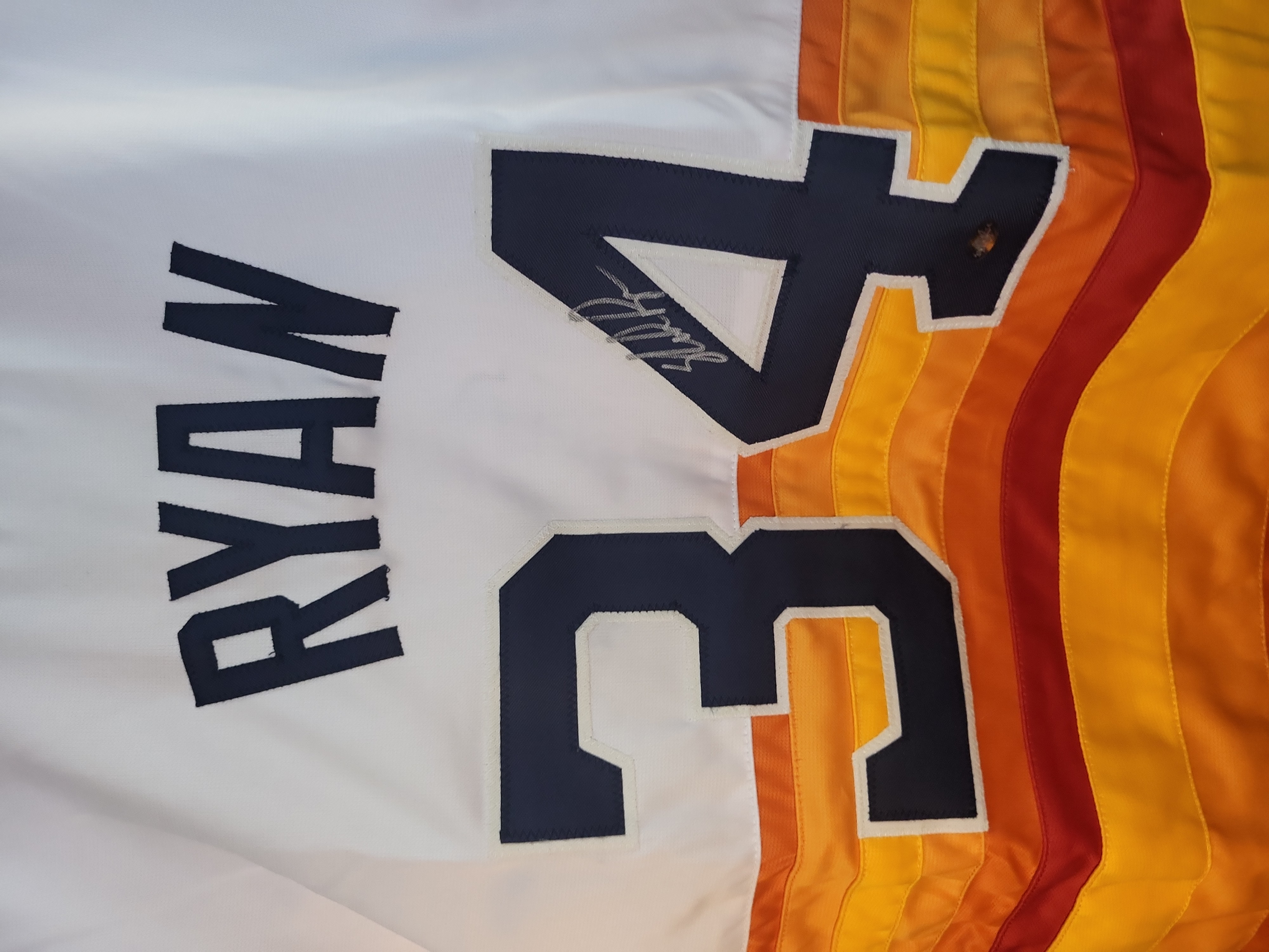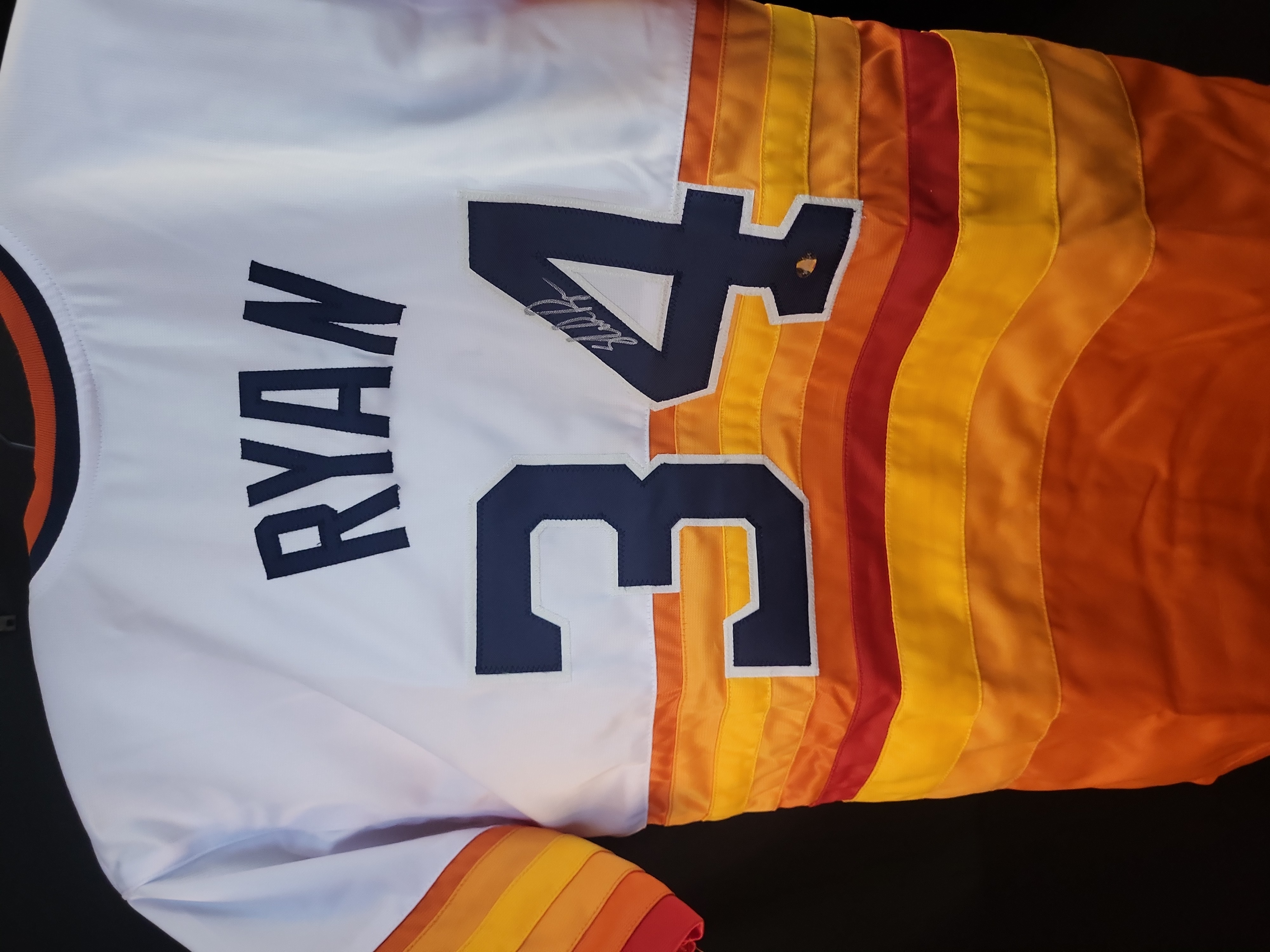 BID PER WHAT YOU SEE IN THE PHOTO, NOT THE AI GENERATED TITLES AND DESCRIPTIONS! Nolan Ryan Autographed Houston Astros Tequila Sunrise Jersey, Nolan Ryan Authenticated