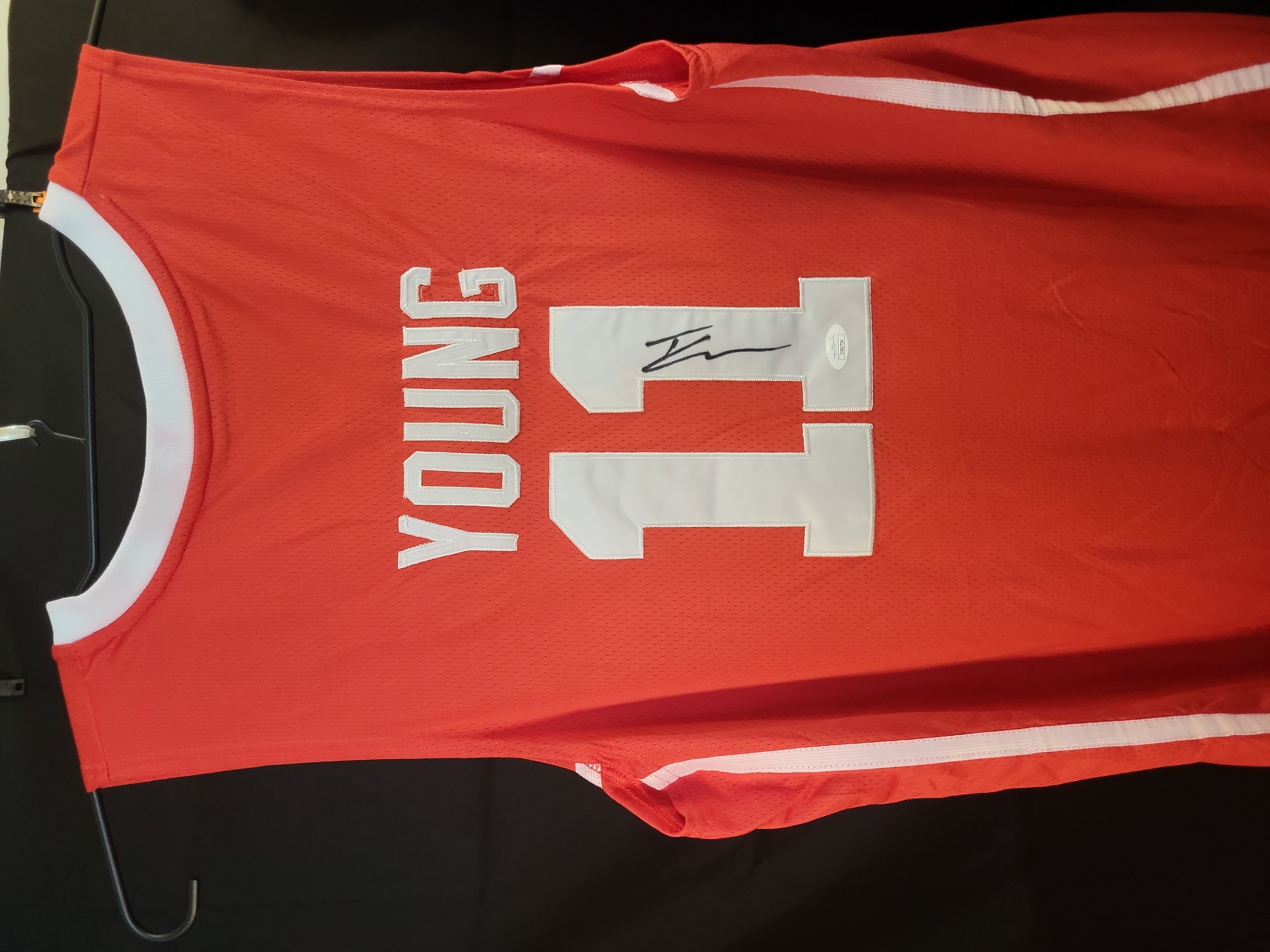 BID PER WHAT YOU SEE IN THE PHOTO, NOT THE AI GENERATED TITLES AND DESCRIPTIONS! Trae Young Signed Oklahoma Sooners Basketball Jersey, JSA Authenticated