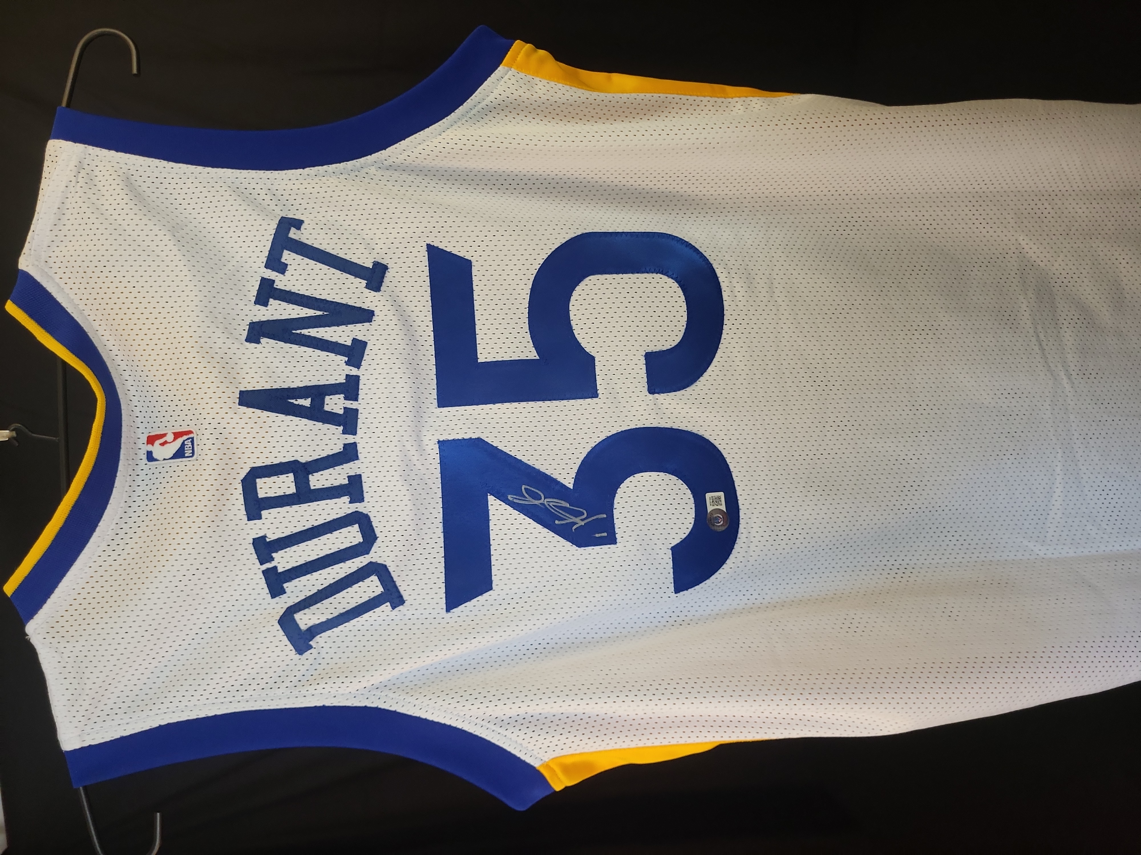 BID PER WHAT YOU SEE IN THE PHOTO, NOT THE AI GENERATED TITLES AND DESCRIPTIONS! Kevin Durant Signed Golden State Warriors Jersey, Beckett Witnessed Authentication