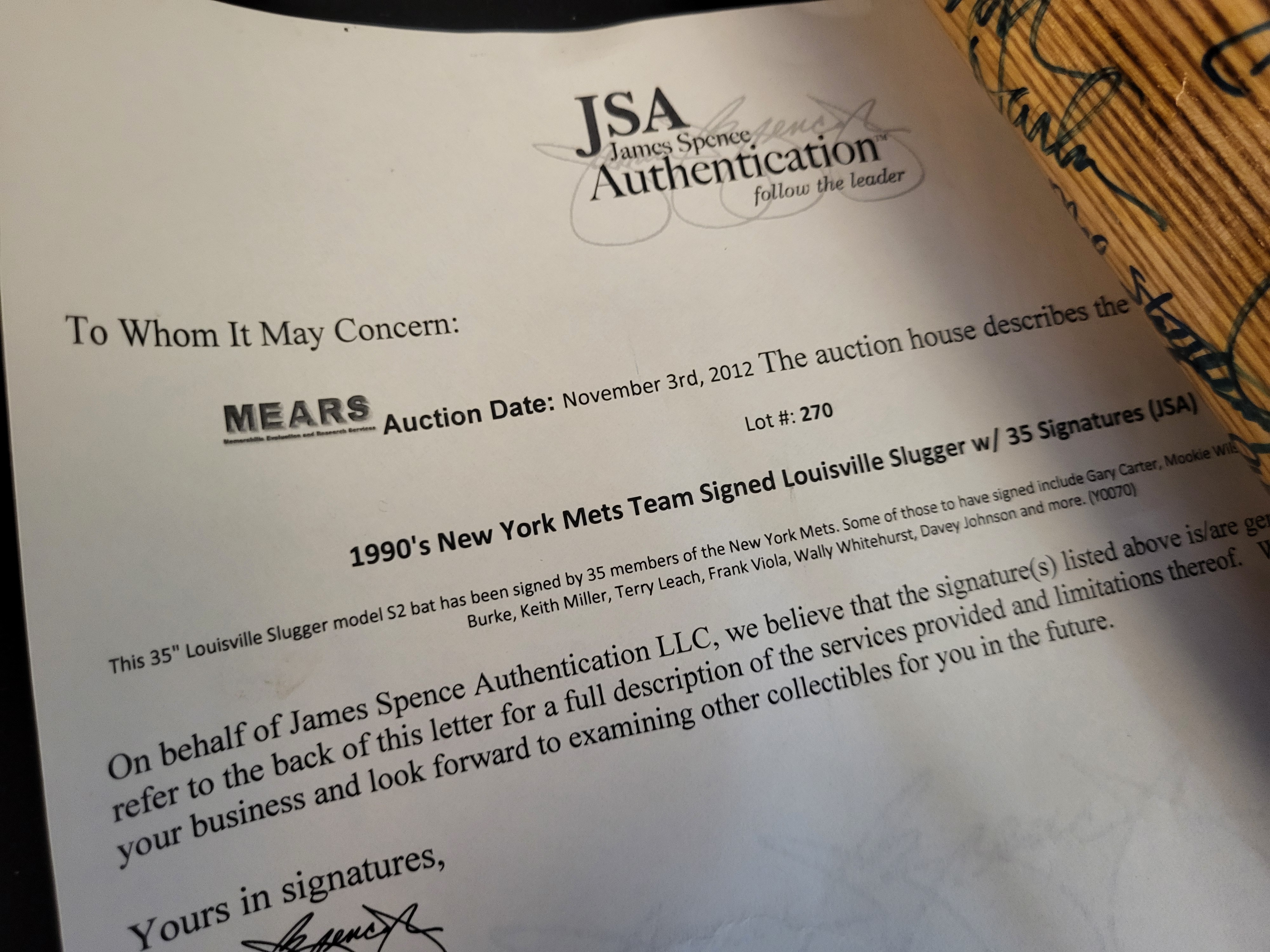 BID PER WHAT YOU SEE IN THE PHOTO, NOT THE AI GENERATED TITLES AND DESCRIPTIONS! 1990s New York Mets Team-Signed Louisville Slugger S2 Baseball Bat
