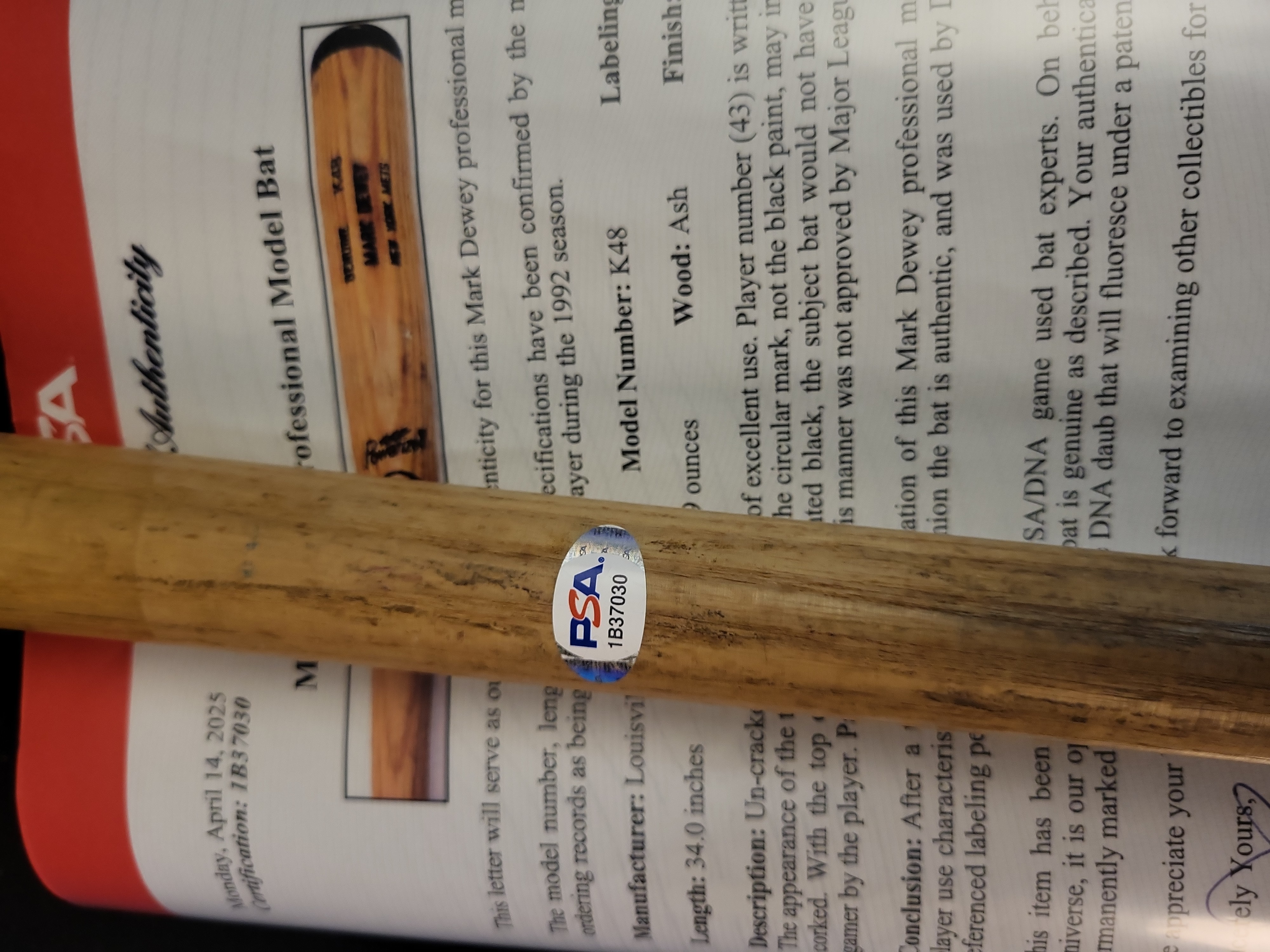 BID PER WHAT YOU SEE IN THE PHOTO, NOT THE AI GENERATED TITLES AND DESCRIPTIONS! Louisville Slugger Mark Dewey New York Mets Game Used Bat Model K48 PSA/DNA LOA 1B37030