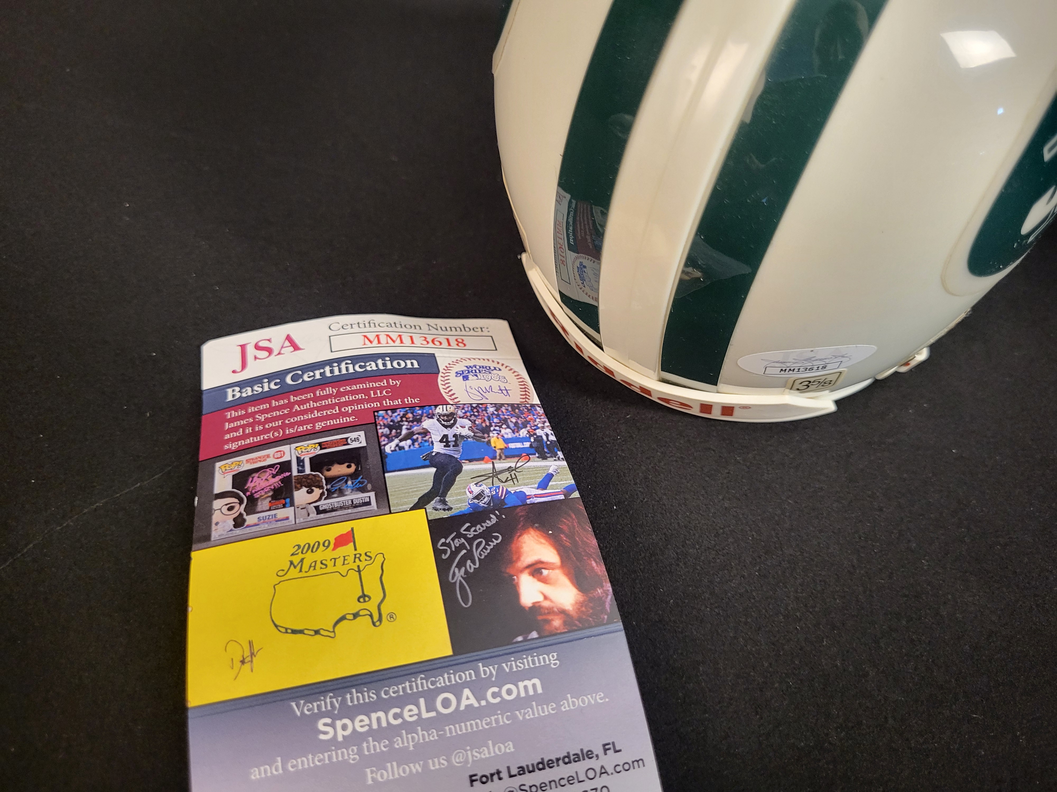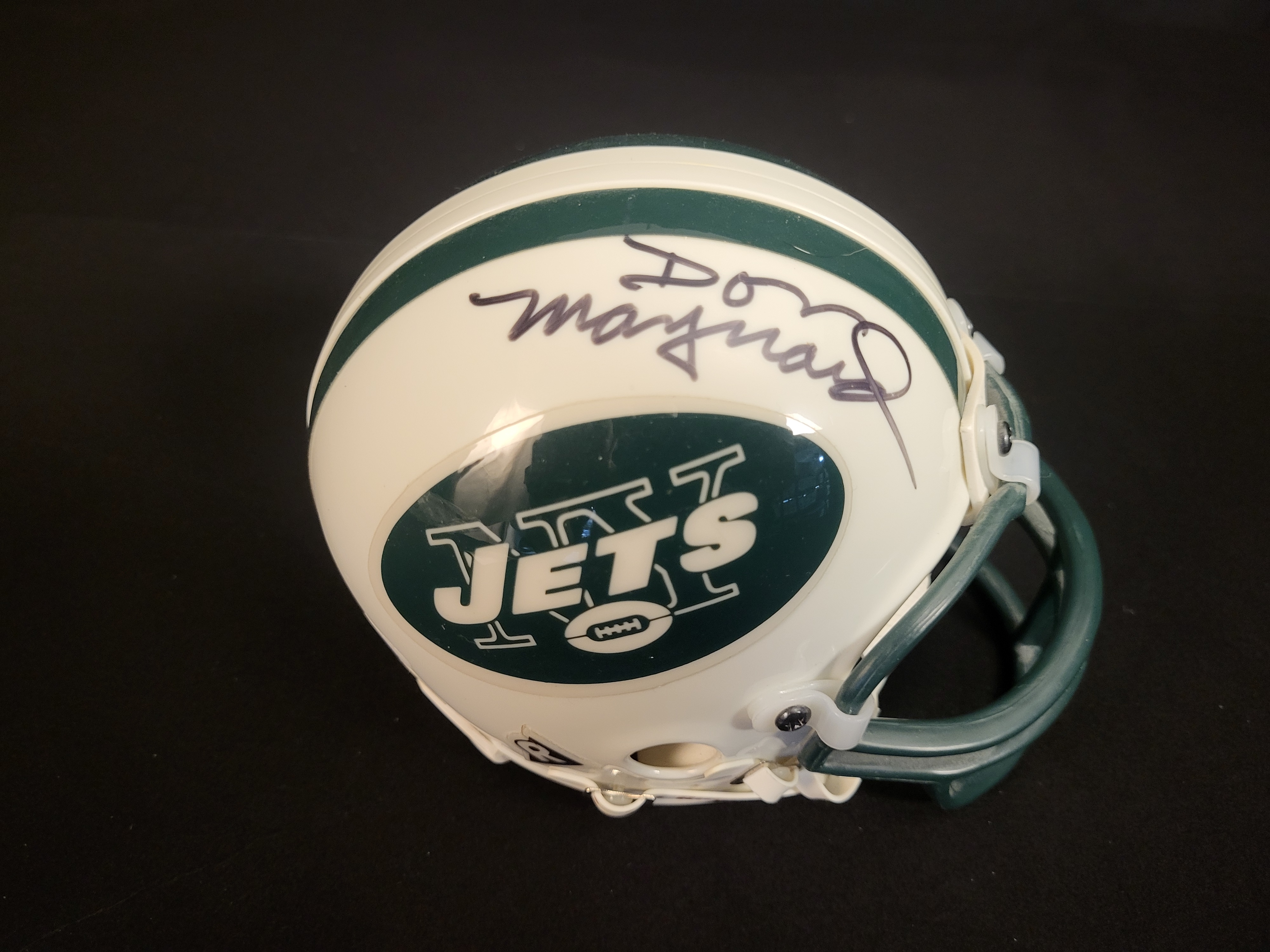 BID PER WHAT YOU SEE IN THE PHOTO, NOT THE AI GENERATED TITLES AND DESCRIPTIONS! Don Maynard Autographed New York Jets Riddell Throwback Mini Helmet JSA