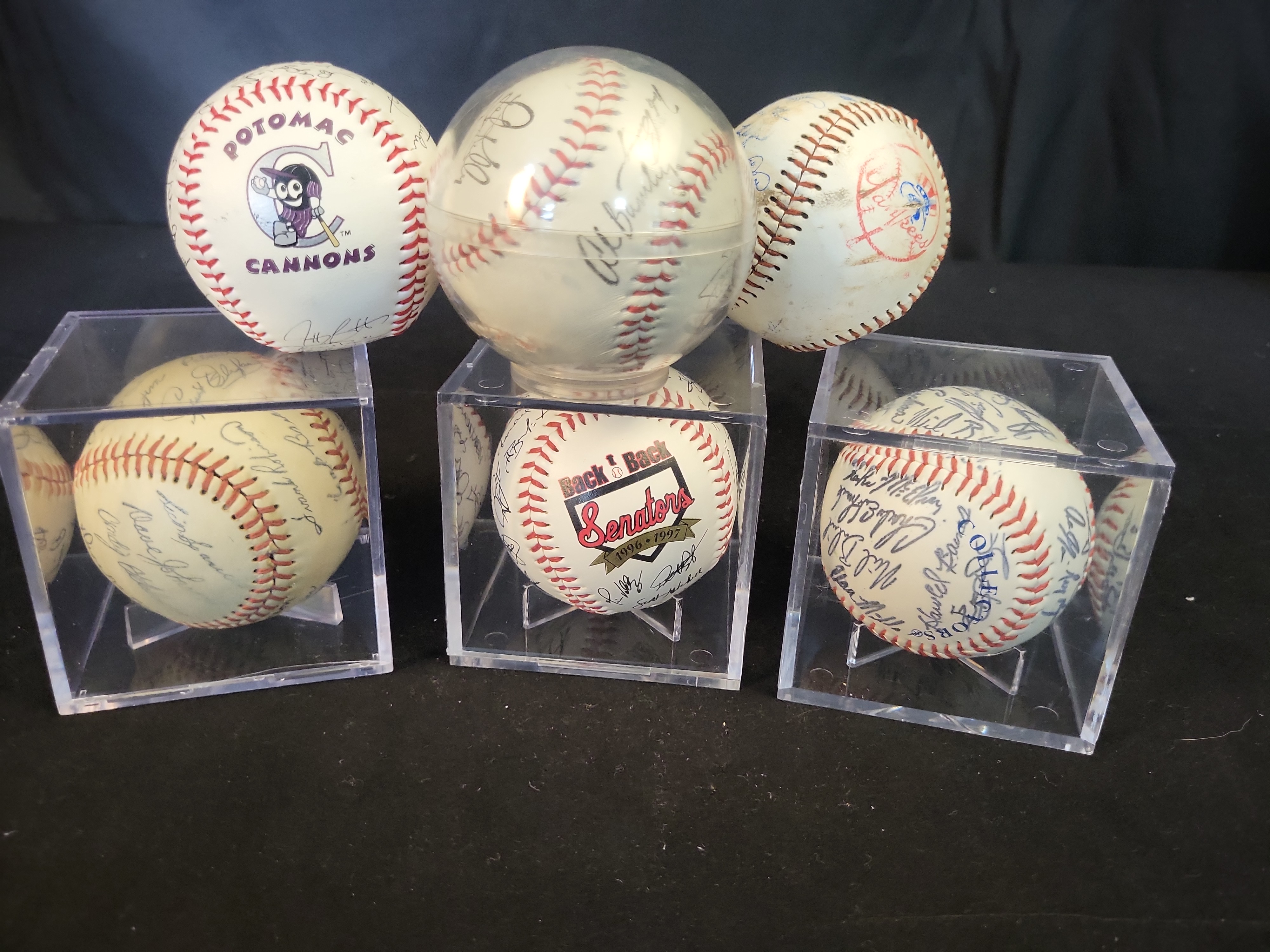 BID PER WHAT YOU SEE IN THE PHOTO, NOT THE AI GENERATED TITLES AND DESCRIPTIONS! Potomac Cannons, Harrisburg Senators, and Multi-Signed Professional Baseballs, Lot of 6, Unauthenticated