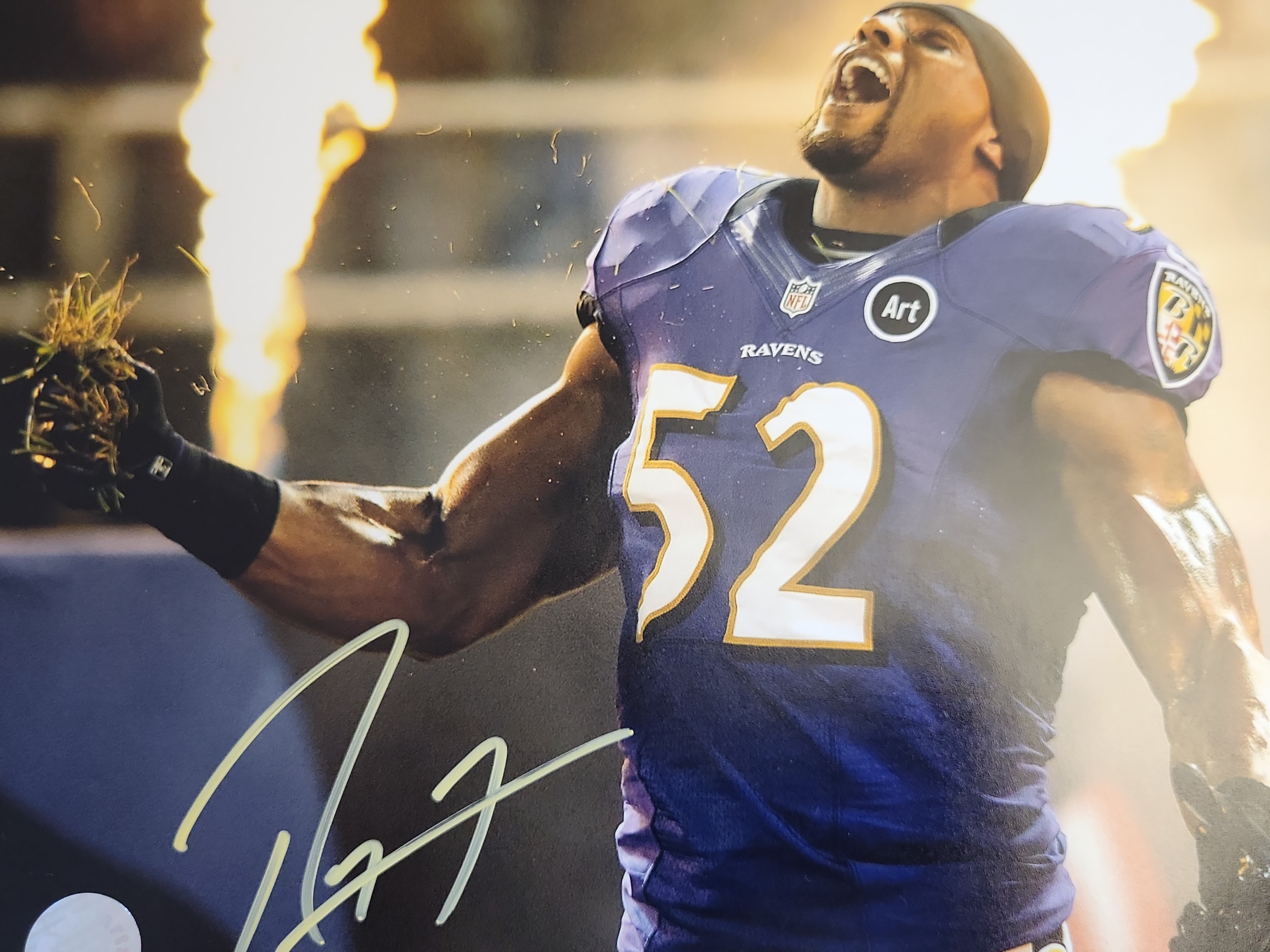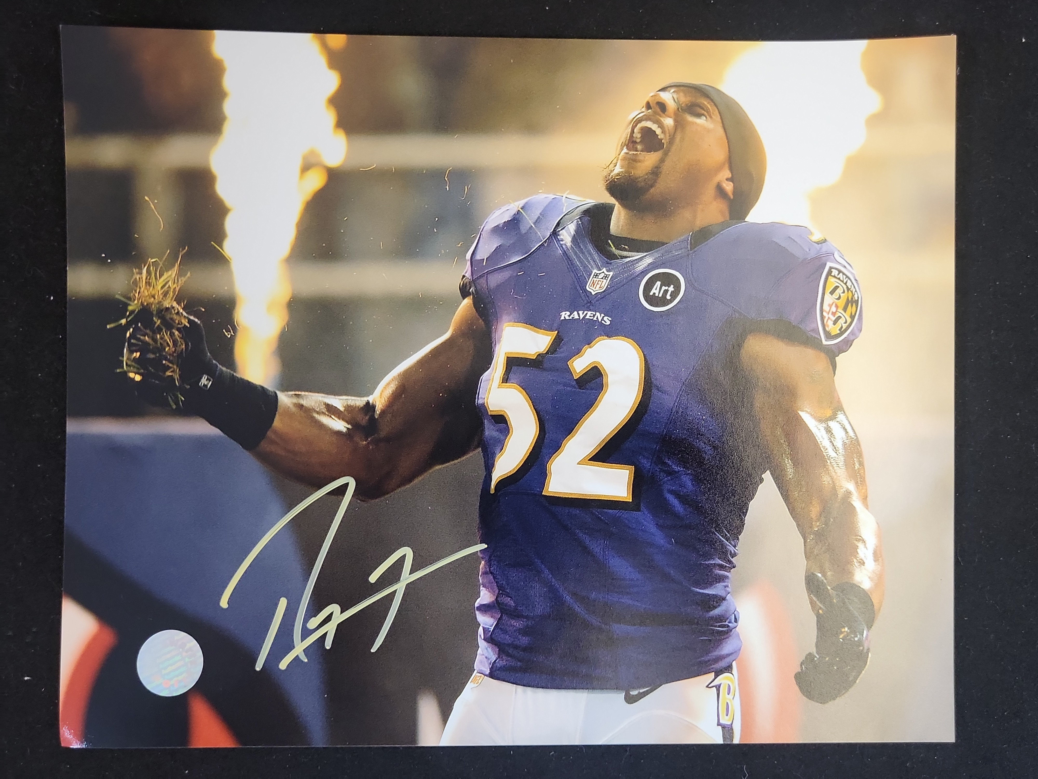BID PER WHAT YOU SEE IN THE PHOTO, NOT THE AI GENERATED TITLES AND DESCRIPTIONS! Ray Lewis Signed Baltimore Ravens Action Photograph, Schwartz Sports Authenticated