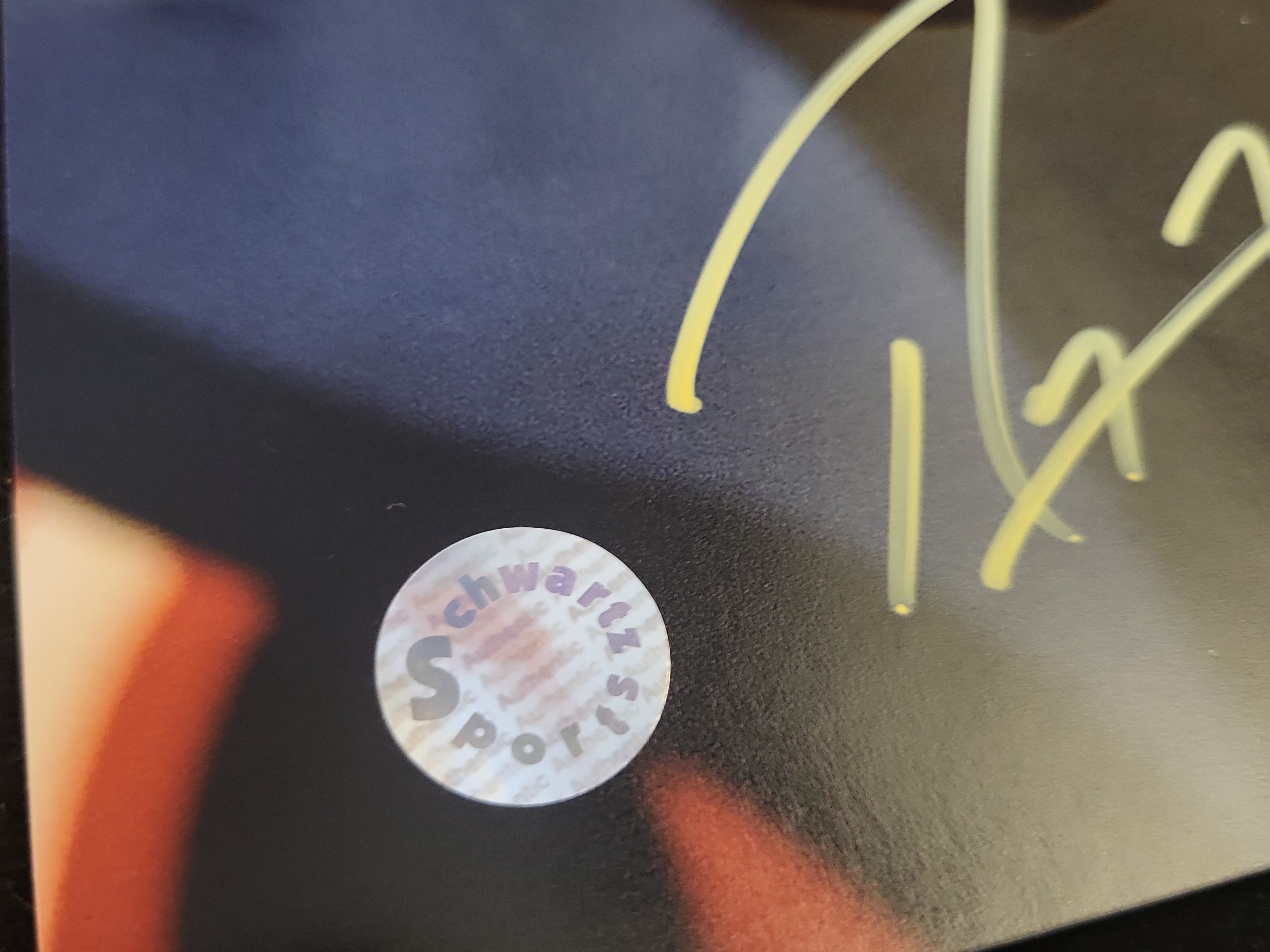 The photograph is in excellent condition with high color saturation and no visible creasing or wear. The signature is sharp, clear, and exhibits no signs of fading or smudging.