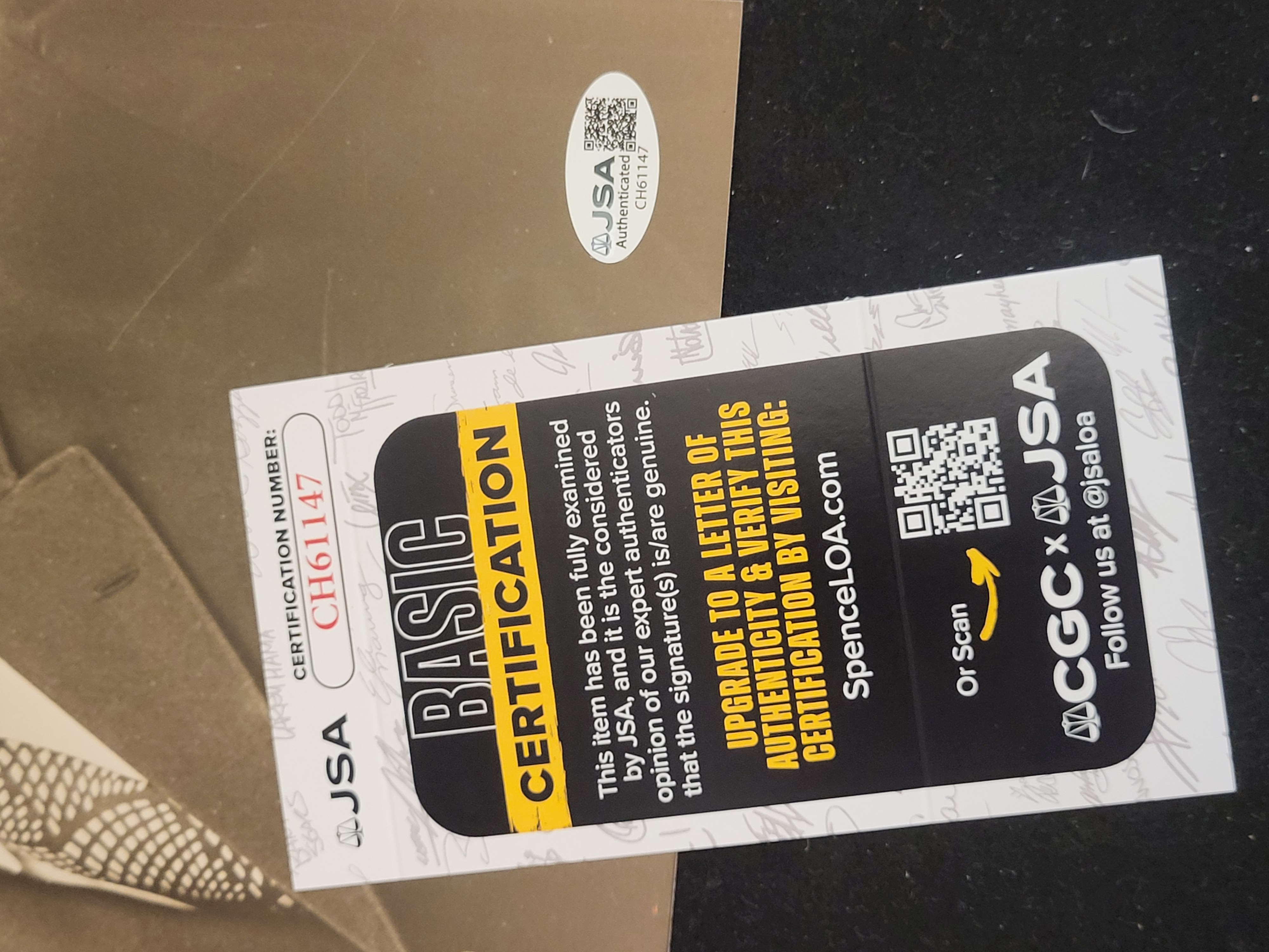 The photograph appears in good condition with clear image resolution and a well-preserved signature. The accompanying certification card exhibits minor wear.