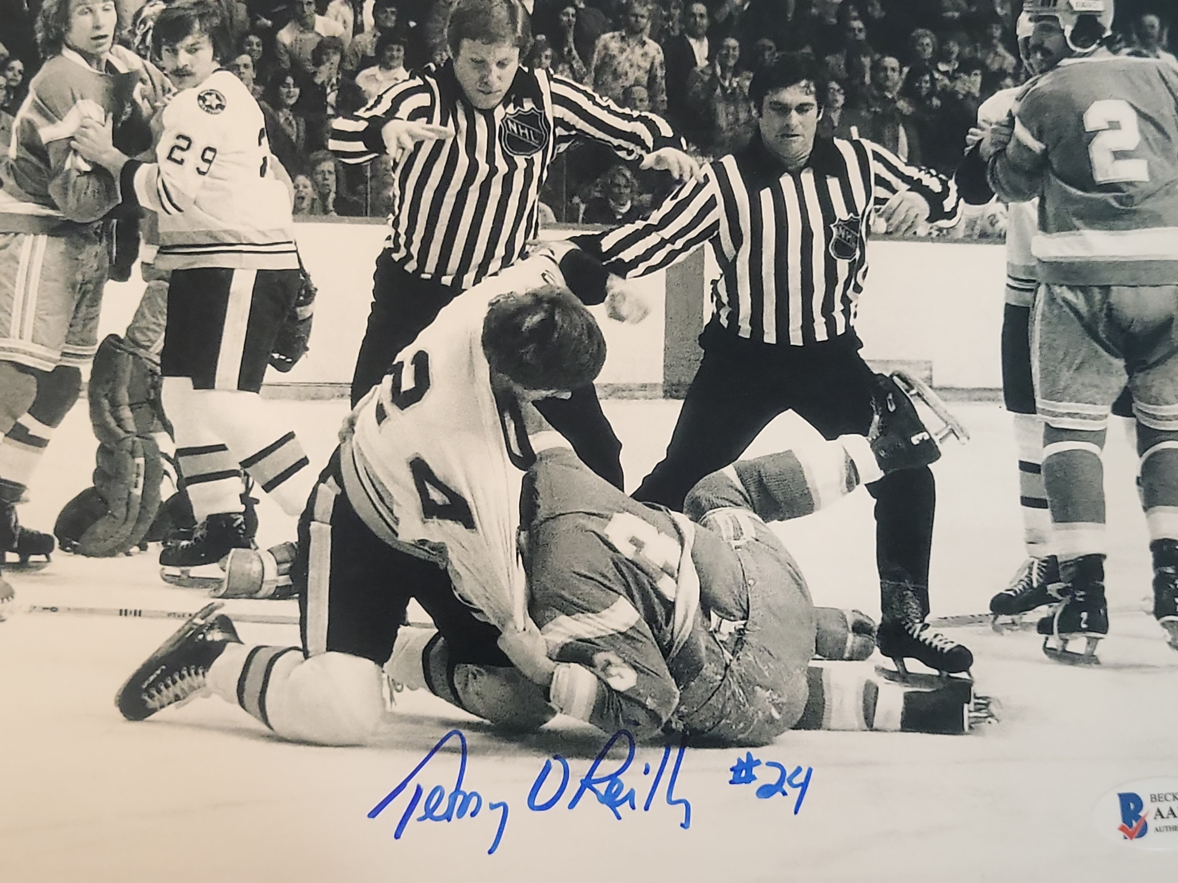BID PER WHAT YOU SEE IN THE PHOTO, NOT THE AI GENERATED TITLES AND DESCRIPTIONS! Terry O’Reilly Signed Boston Bruins Action Photograph, Beckett Authenticated