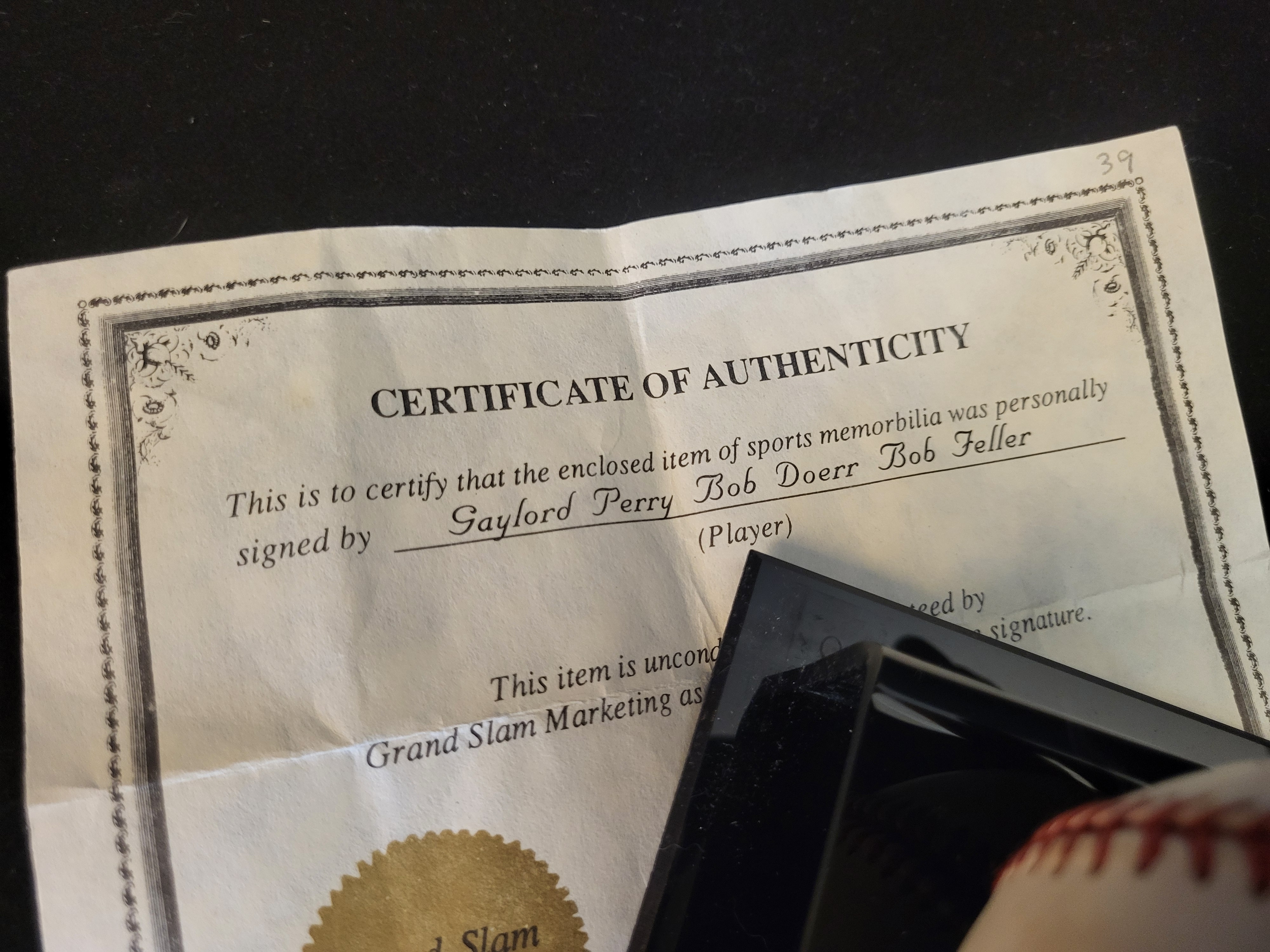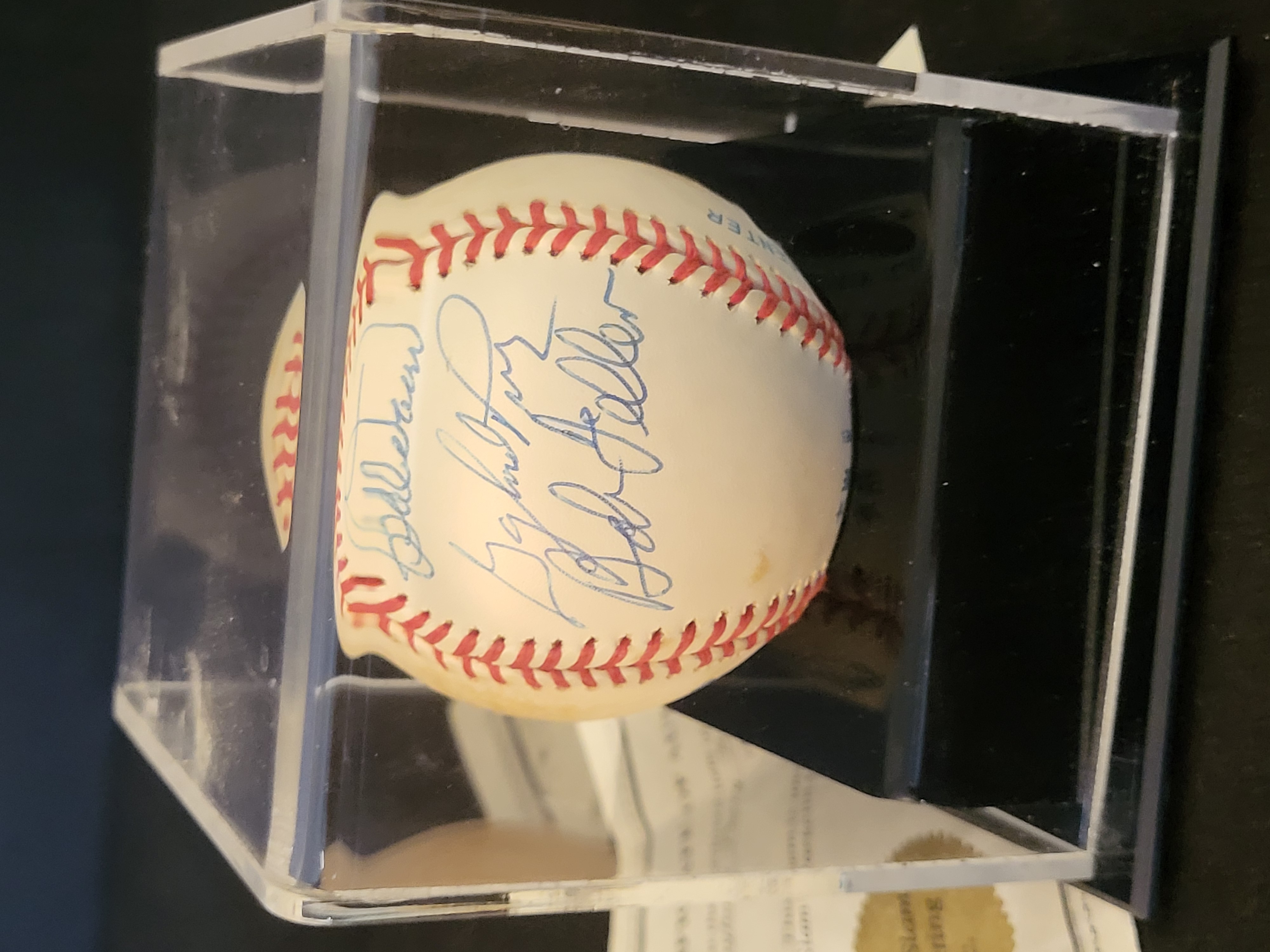 BID PER WHAT YOU SEE IN THE PHOTO, NOT THE AI GENERATED TITLES AND DESCRIPTIONS! Multi-Signed Baseball Featuring Gaylord Perry, Bob Doerr, and Bob Feller