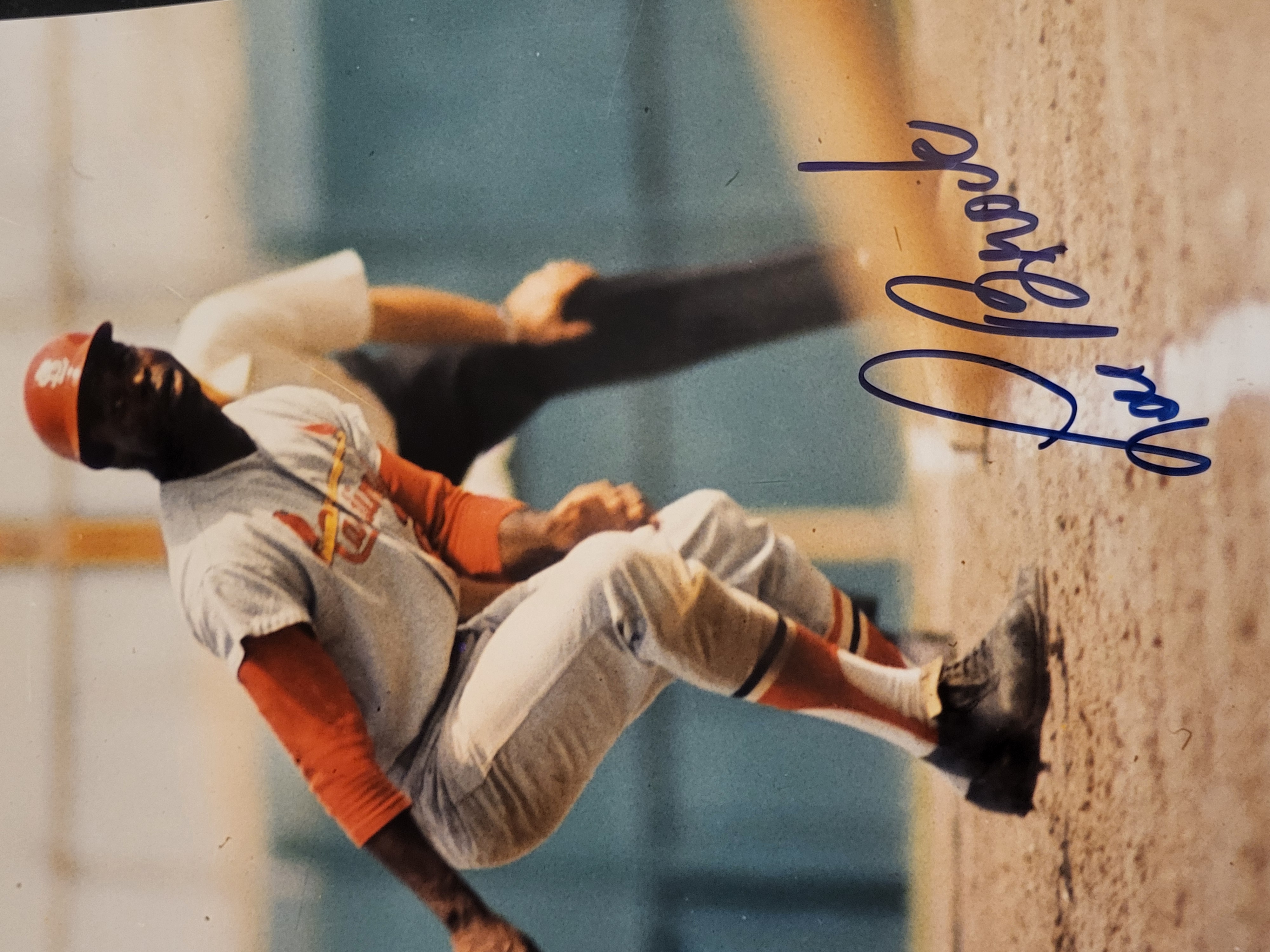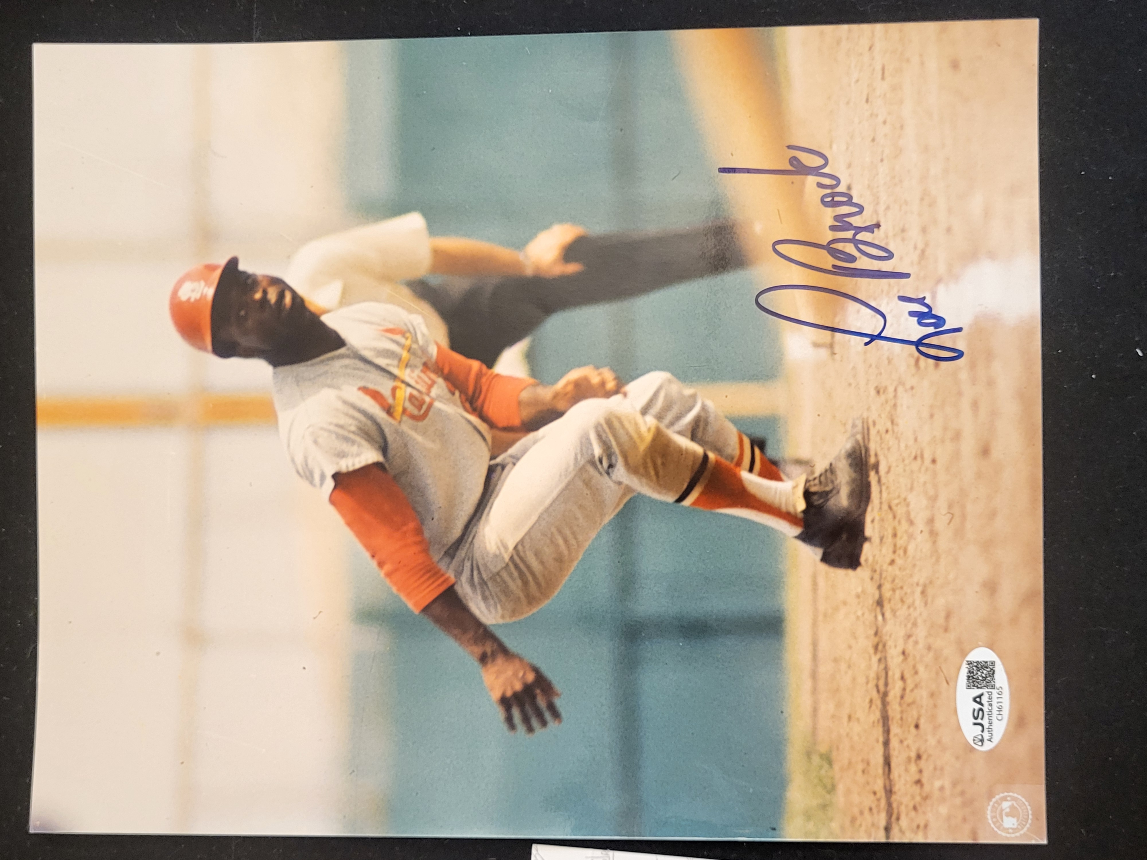 BID PER WHAT YOU SEE IN THE PHOTO, NOT THE AI GENERATED TITLES AND DESCRIPTIONS! Lou Brock Autographed St. Louis Cardinals Action Photograph with JSA Authentication