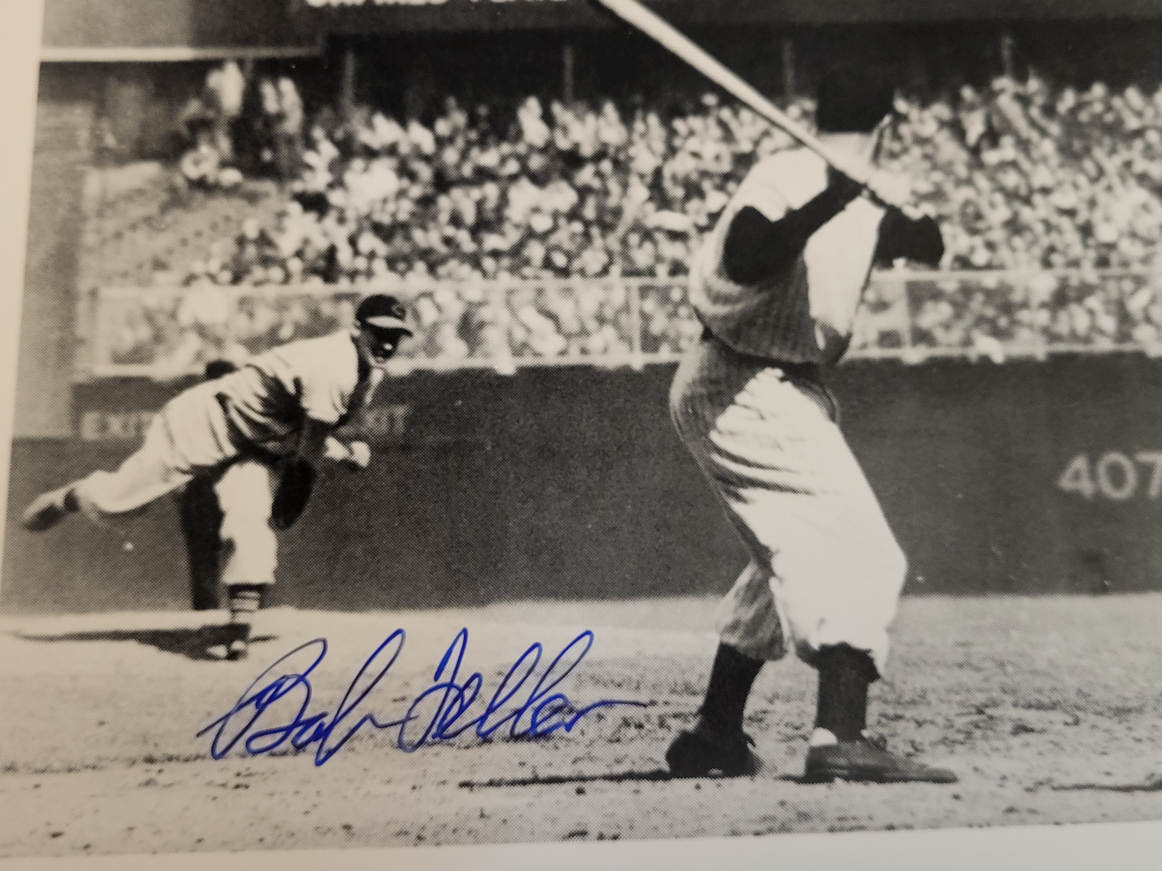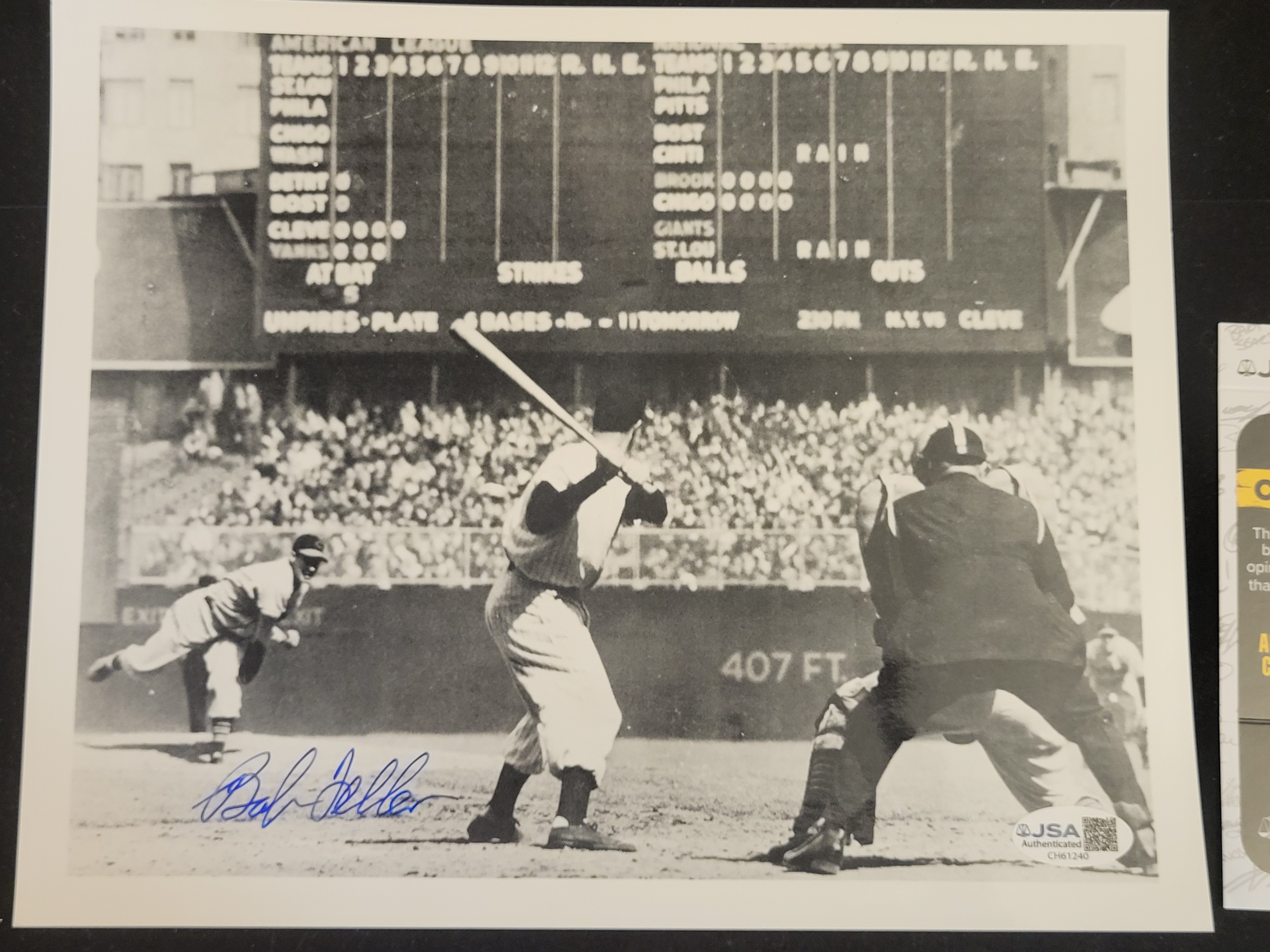 BID PER WHAT YOU SEE IN THE PHOTO, NOT THE AI GENERATED TITLES AND DESCRIPTIONS! Bob Feller Autographed Black and White Yankee Stadium Scoreboard JSA