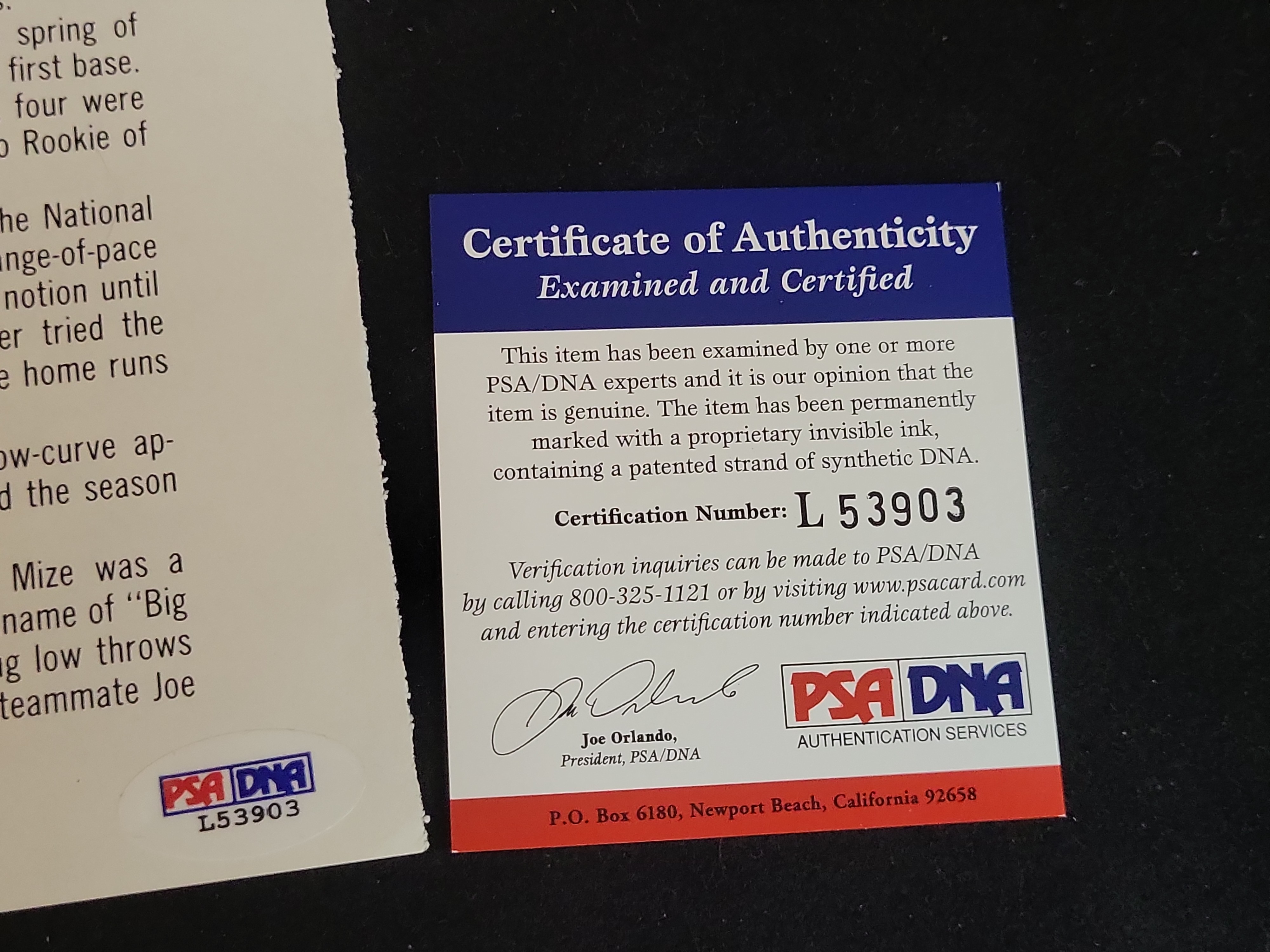 BID PER WHAT YOU SEE IN THE PHOTO, NOT THE AI GENERATED TITLES AND DESCRIPTIONS! Johnny Mize Autographed Printed Biography Page, PSA/DNA Authenticated