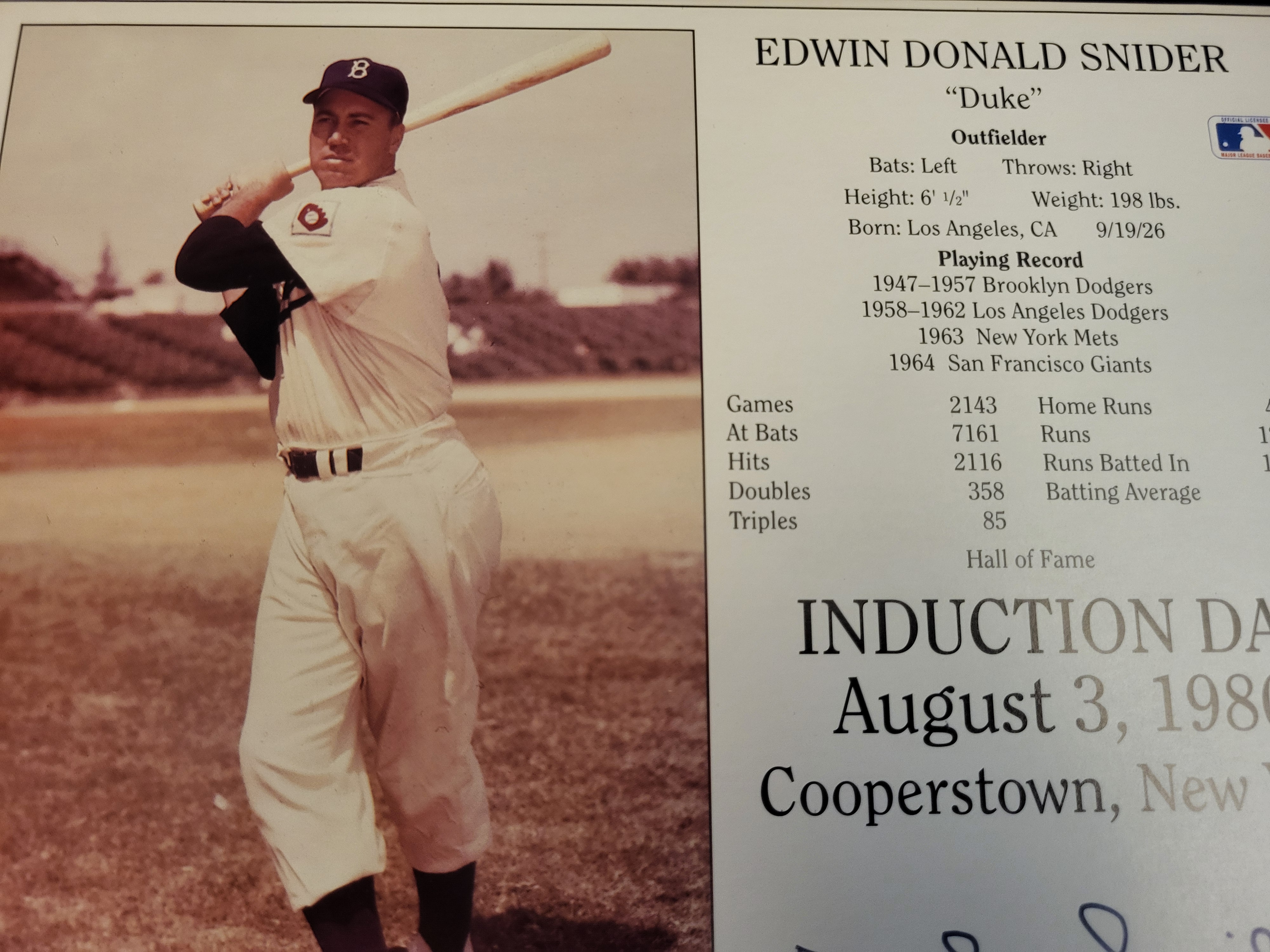 BID PER WHAT YOU SEE IN THE PHOTO, NOT THE AI GENERATED TITLES AND DESCRIPTIONS! Two Duke Snider Memorabilia JSA Authenticated