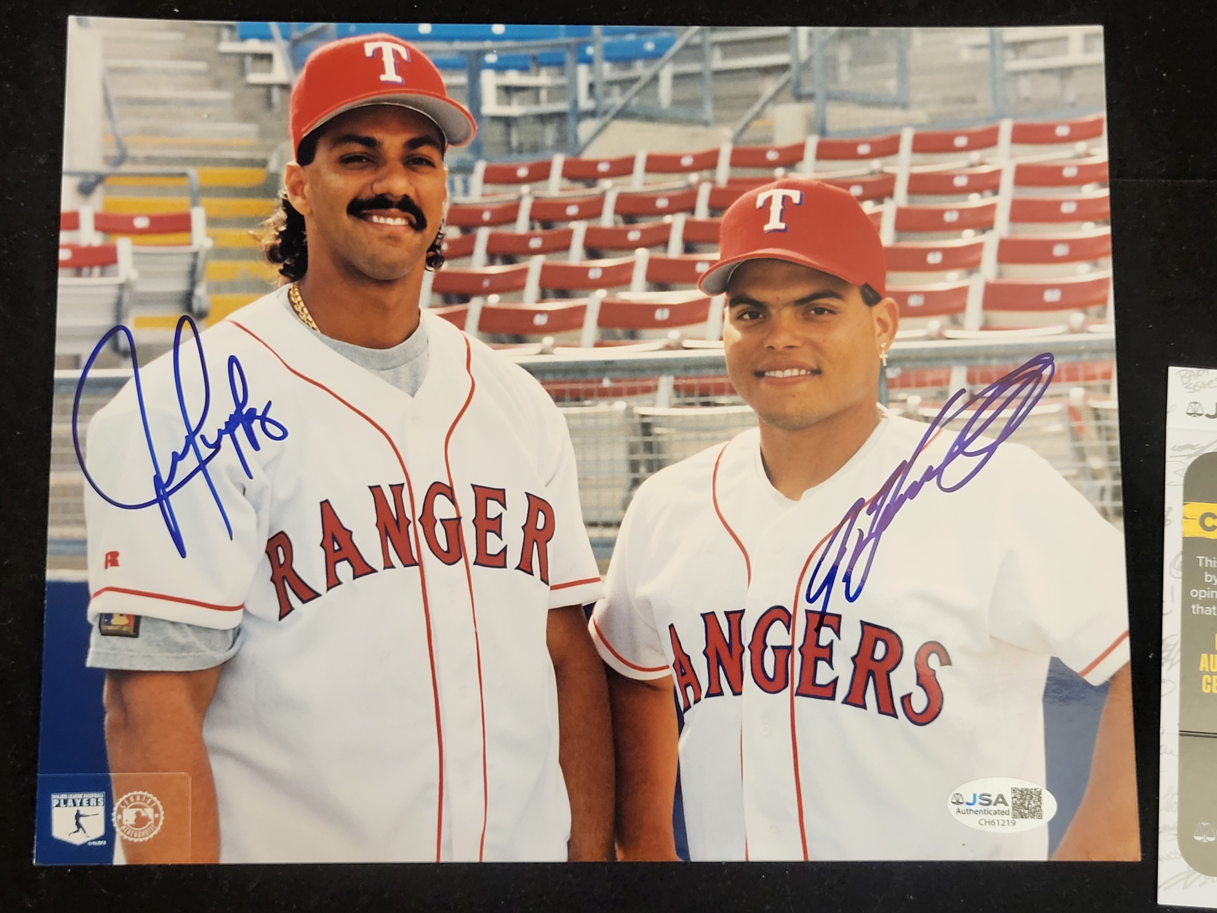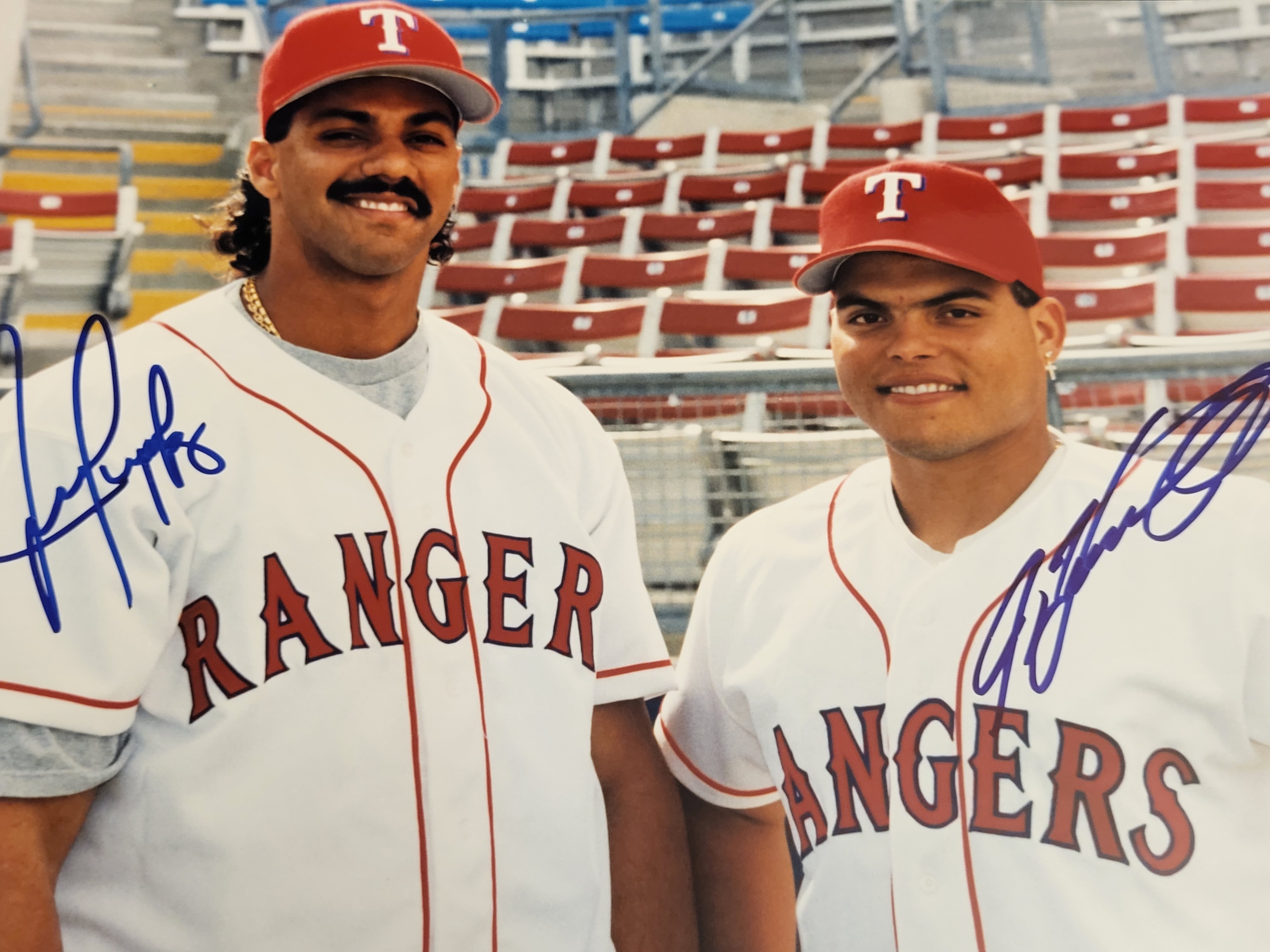 BID PER WHAT YOU SEE IN THE PHOTO, NOT THE AI GENERATED TITLES AND DESCRIPTIONS! Signed Photo of Juan Gonzalez and Ivan Rodriguez, Texas Rangers JSA