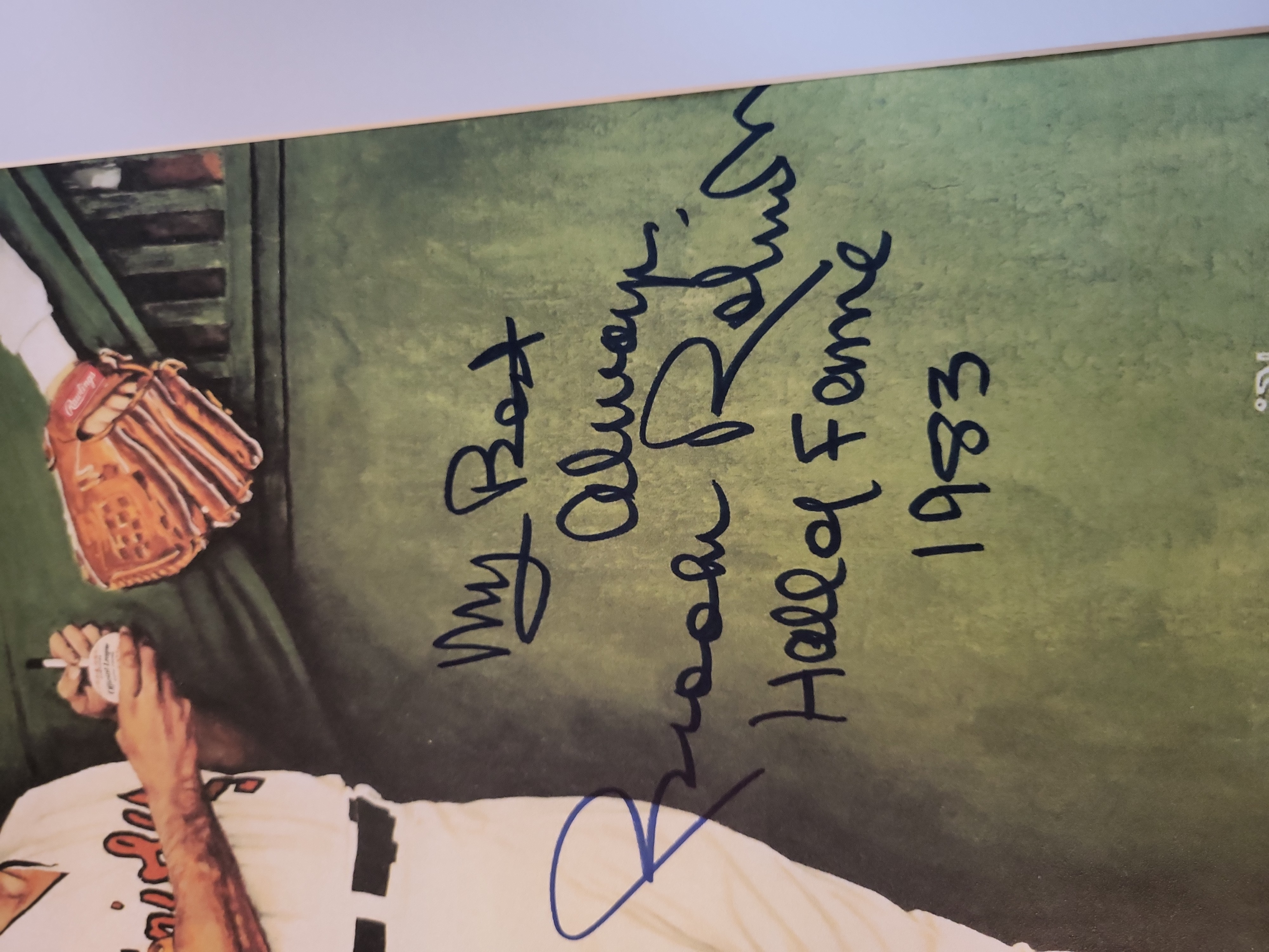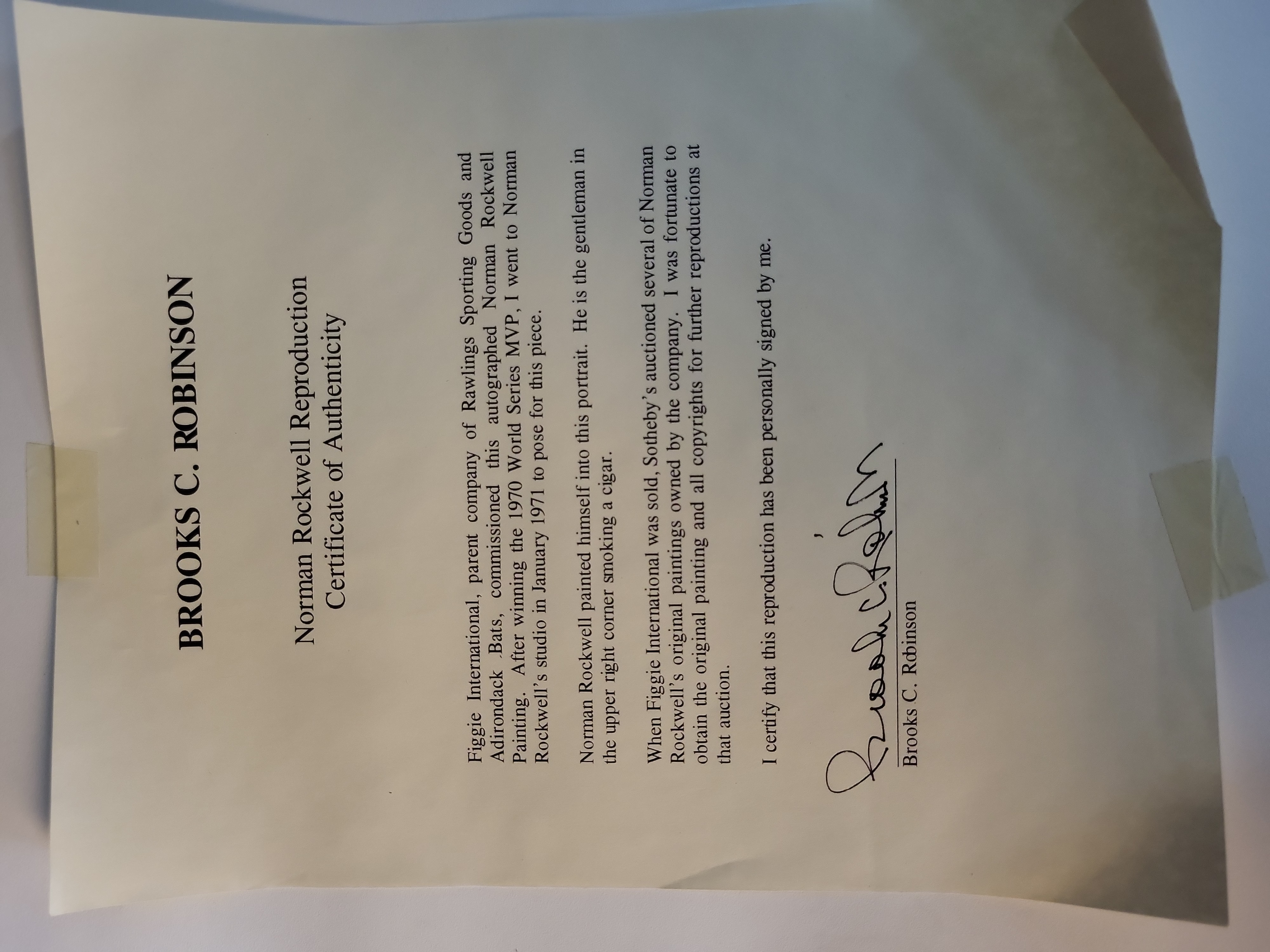 BID PER WHAT YOU SEE IN THE PHOTO, NOT THE AI GENERATED TITLES AND DESCRIPTIONS! Brooks Robinson Autographed Norman Rockwell "Gee Thanks, Brooks" Reproduction Print, JSA Authenticated