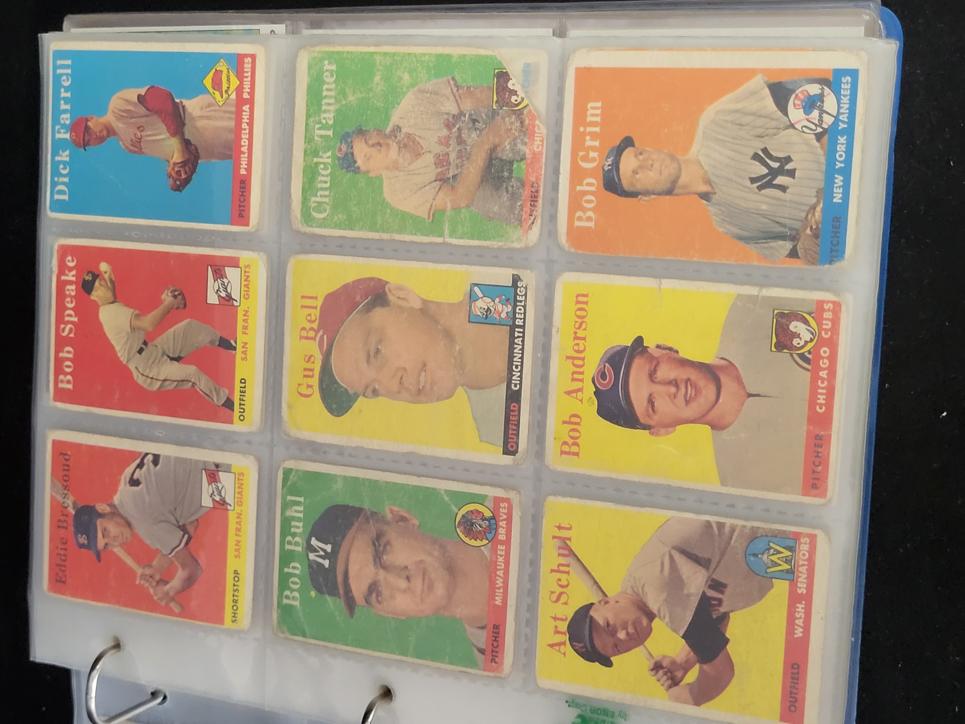Condition varies by era. Vintage examples from the 1950s and 1960s show expected signs of age and handling, including corner wear, edge chipping, and surface abrasions. Contemporary cards from the 1980s and 2020s generally appear to be in excellent condition with sharp corners and clean surfaces. The binder exhibits minor external scuffing and shelf wear.