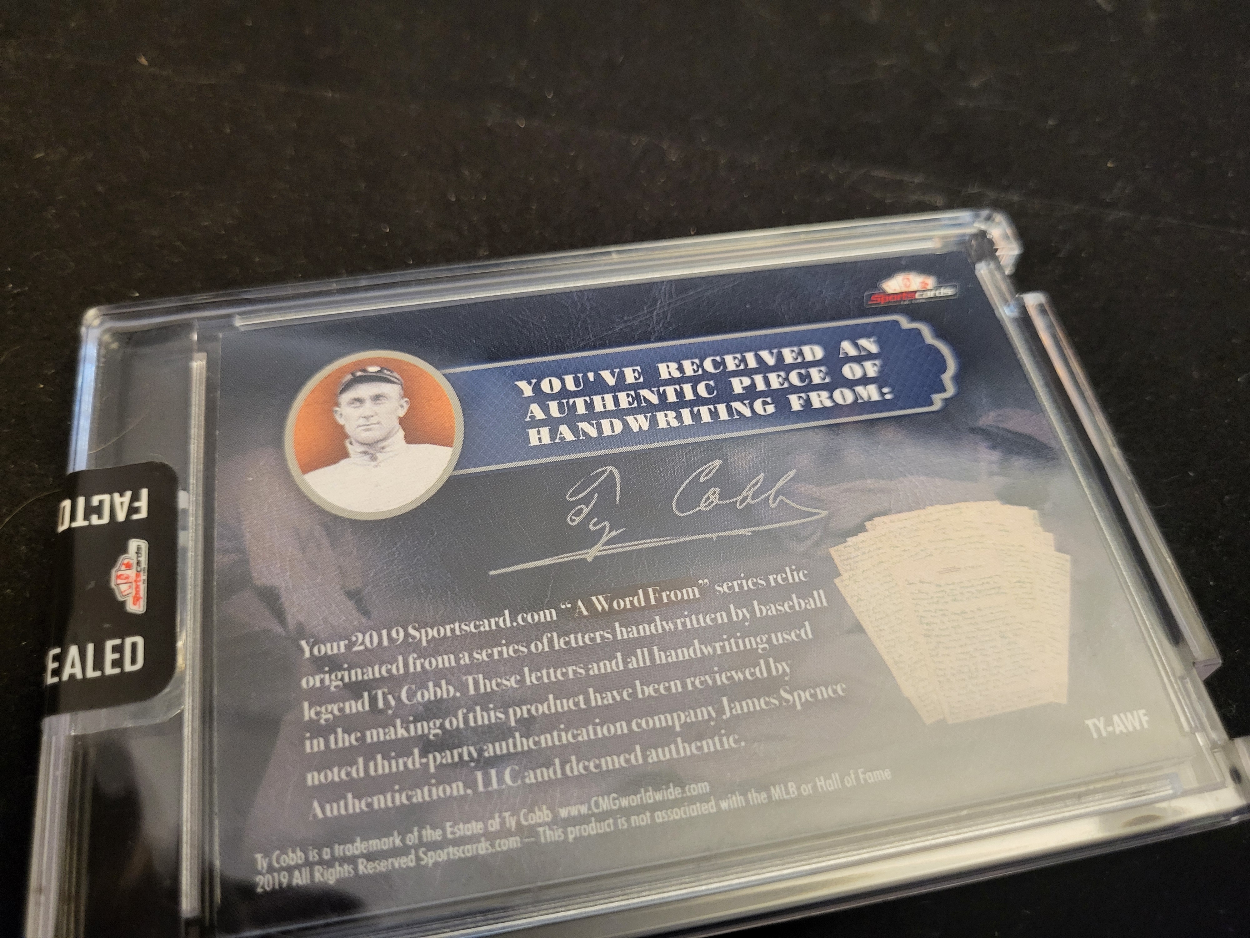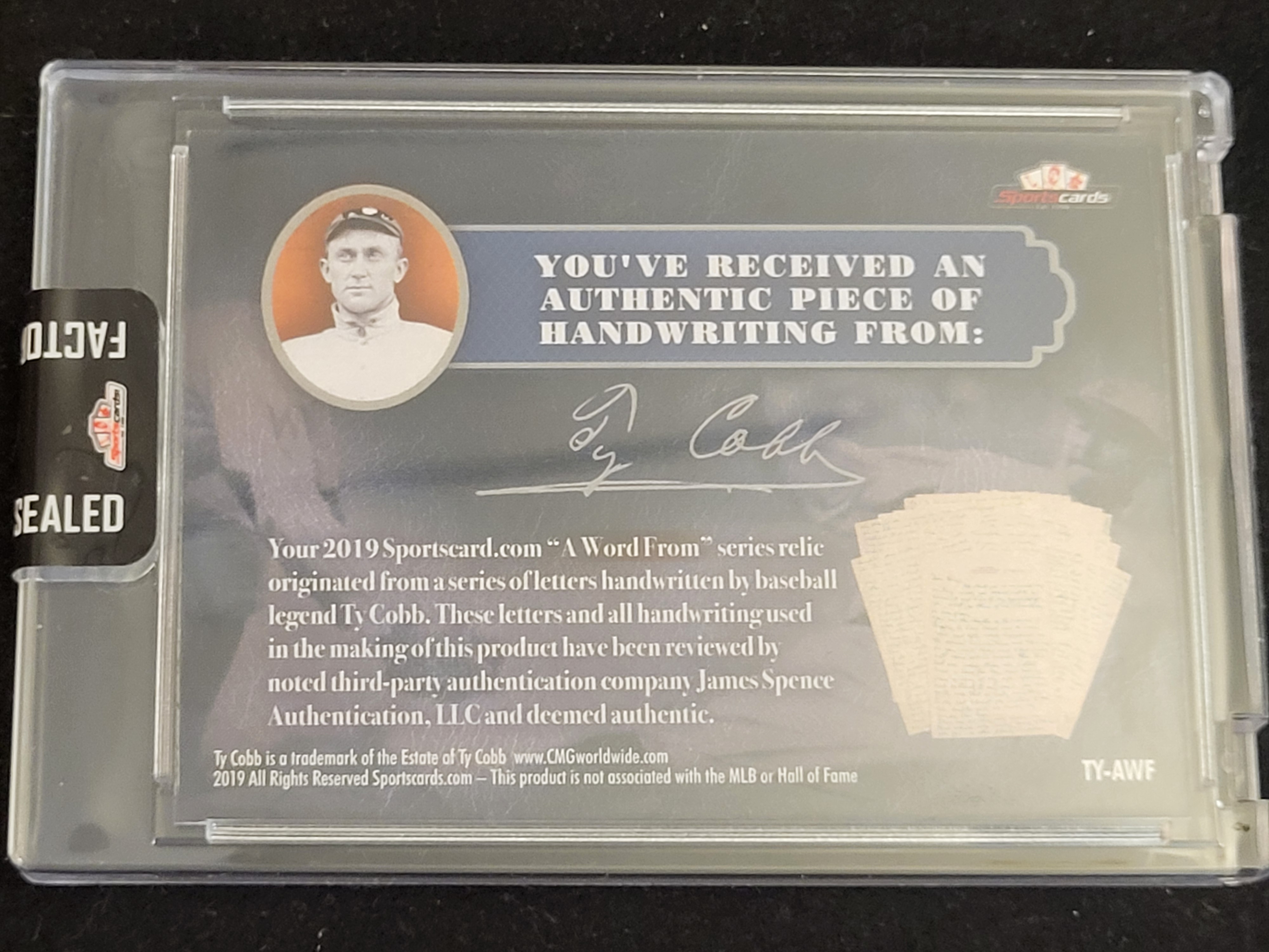 BID PER WHAT YOU SEE IN THE PHOTO, NOT THE AI GENERATED TITLES AND DESCRIPTIONS! 2019 Sportscard.com A Word From Ty Cobb Authentic Handwriting Relic Card