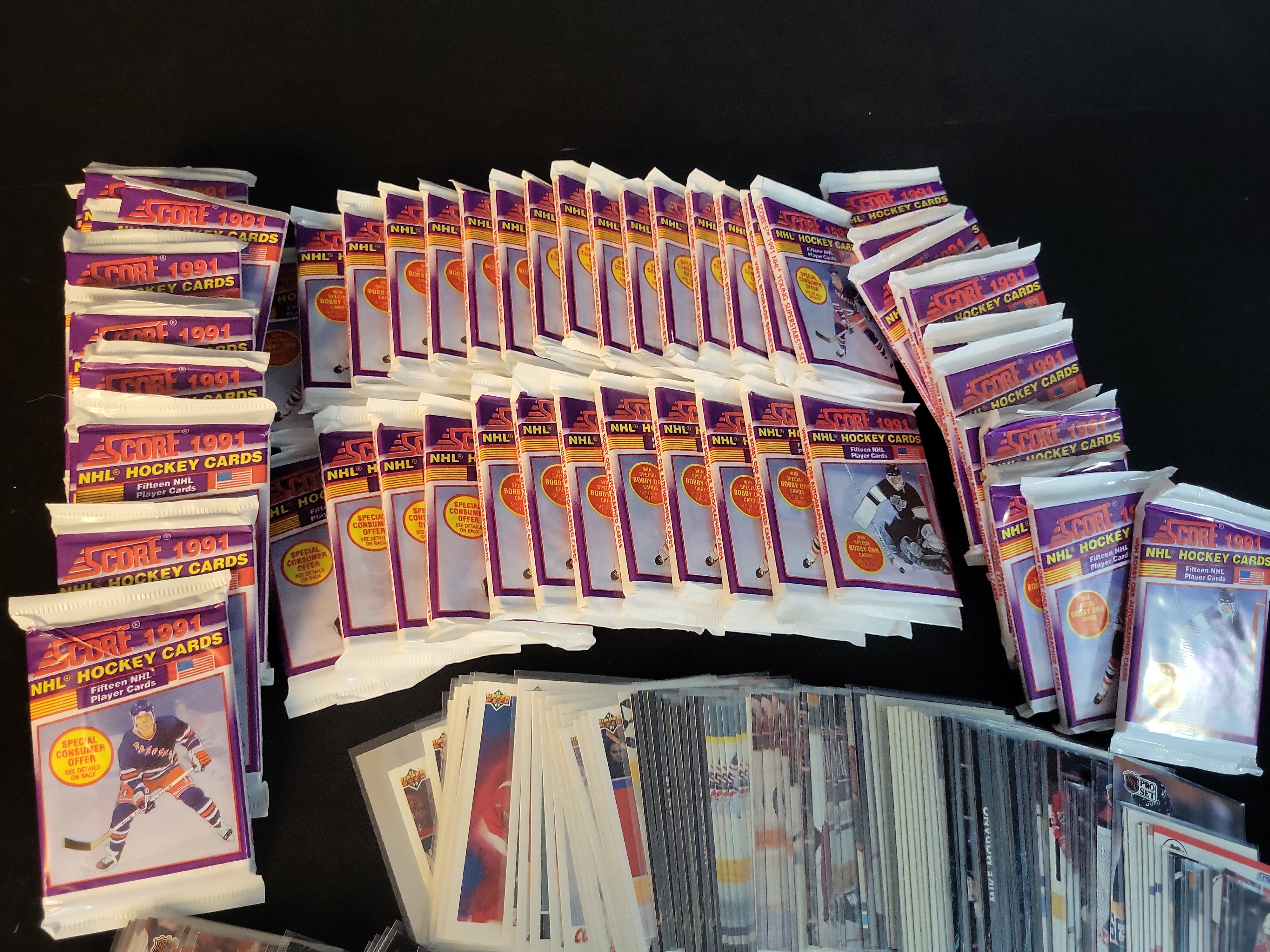 BID PER WHAT YOU SEE IN THE PHOTO, NOT THE AI GENERATED TITLES AND DESCRIPTIONS! NHL Hockey Card Collection 1991 Score Sealed Packs and Vintage Stars Lot