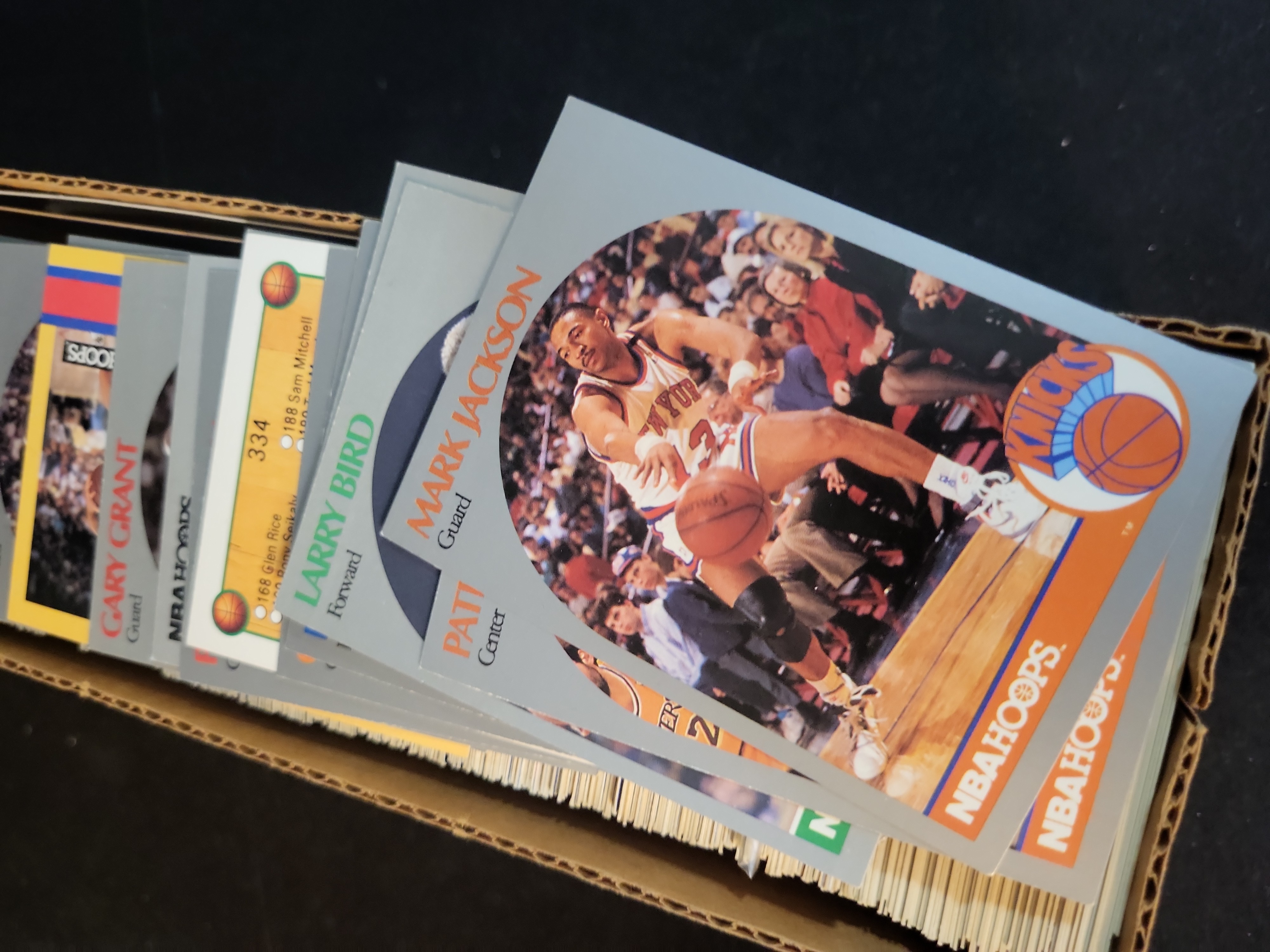 All cards are in raw, uncertified condition. The 1996 Topps Stadium Club Michael Jordan number 40 shows approximately 45/55 left-to-right centering with sharp corners and clean edges. The 1996 Topps Stadium Club Shaquille O\'Neal number 30 is well-centered at approximately 50/50 with sharp corners and smooth edges. The 1992 Classic set is partially visible in its original retail packaging. The bulk 1990-91 NBA Hoops cards range from Excellent to Near Mint condition. High-value cards are housed in top loaders or hard cases and generally present in Near Mint to Mint condition with no major surface defects, creases, or significant whitening visible through the holders.