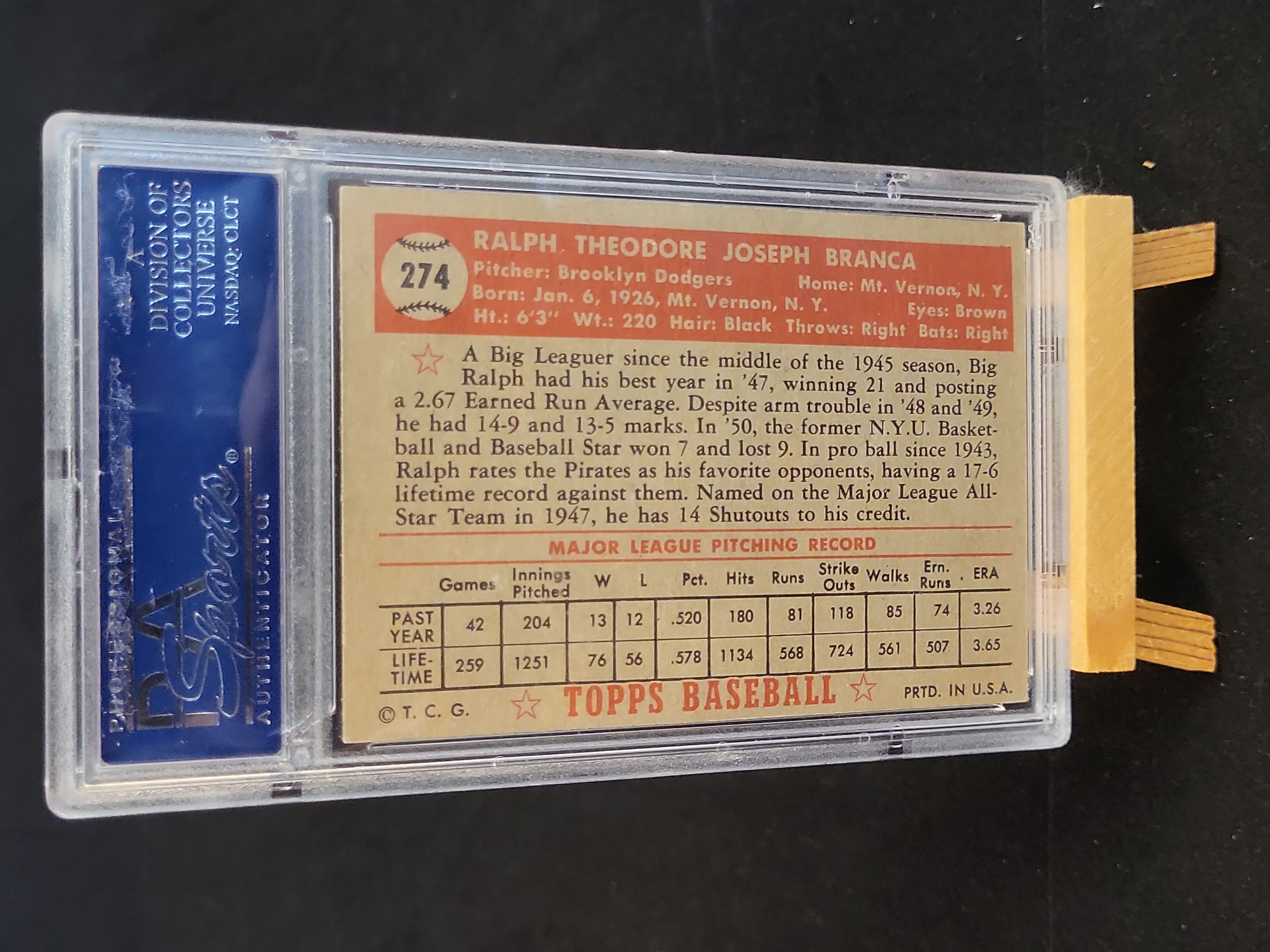 BID PER WHAT YOU SEE IN THE PHOTO, NOT THE AI GENERATED TITLES AND DESCRIPTIONS! 1952 Topps Ralph Branca #274 PSA 4 VG-EX