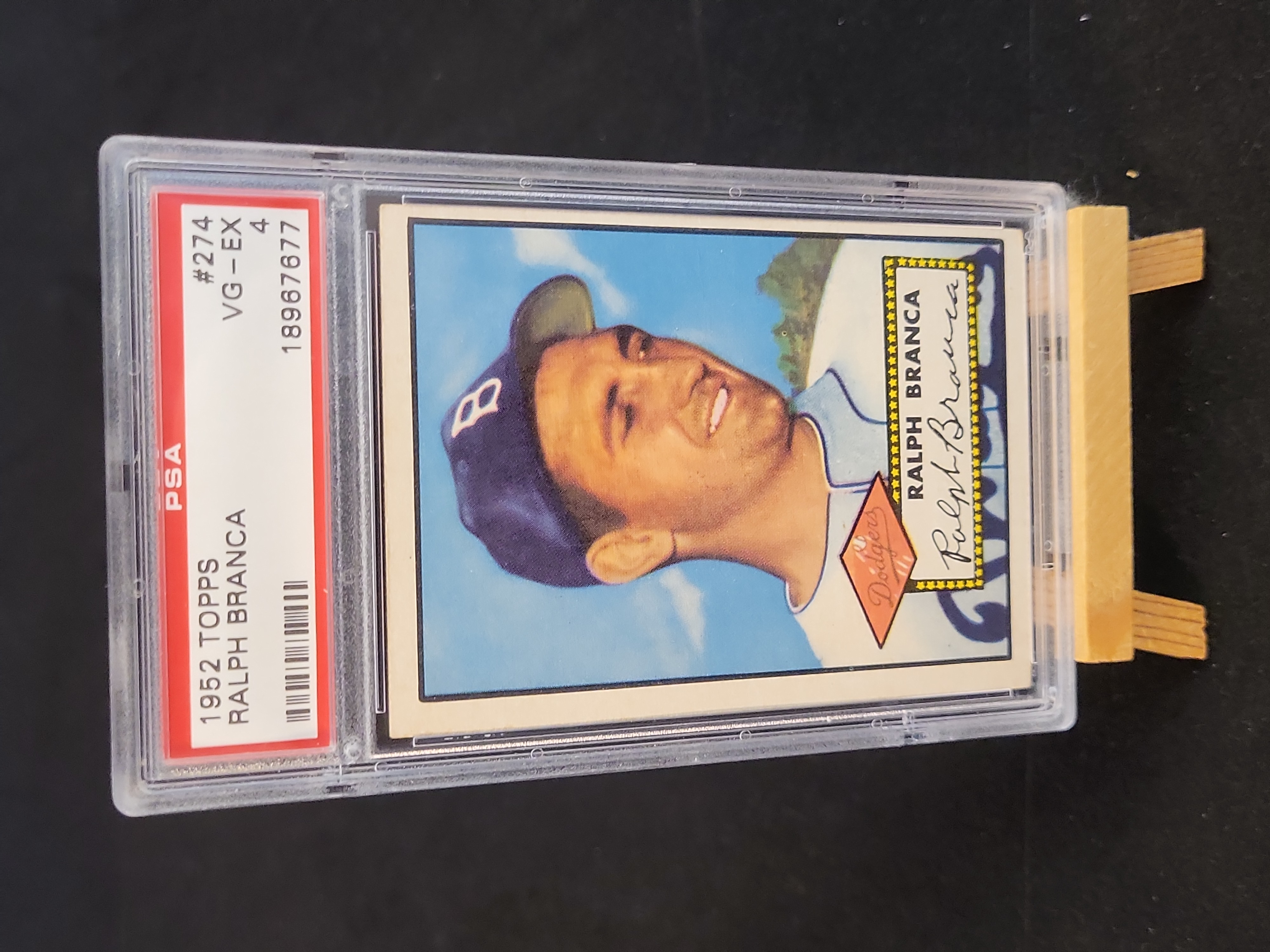 Brand: Topps. Year: 1952. Set: 1952 Topps Baseball. Card Number: #274. Player: Ralph Branca. Rookie Status: Not a rookie card. Parallel Type: Base set. Certification: PSA VG-EX 4, Certificate #18967677.
