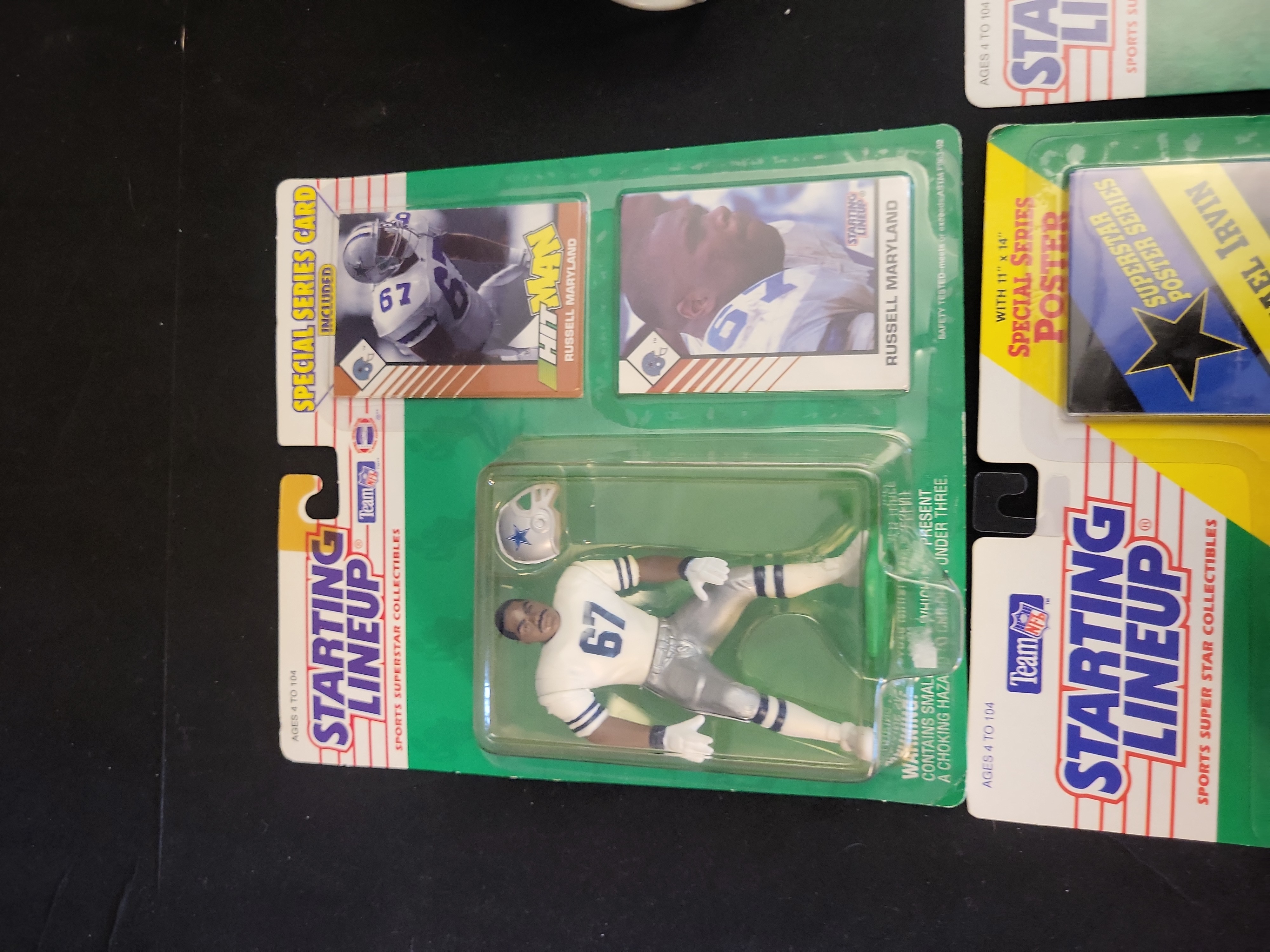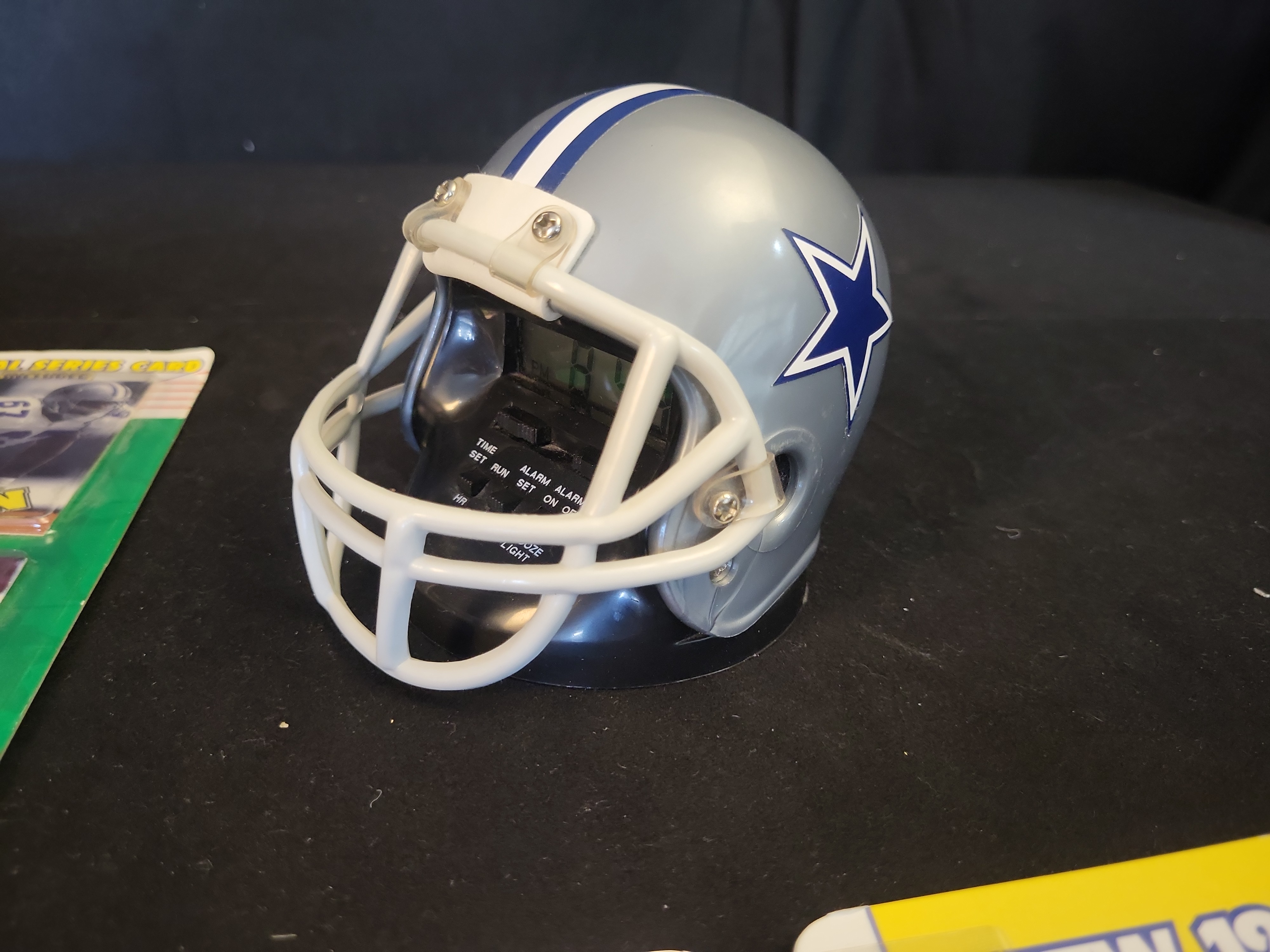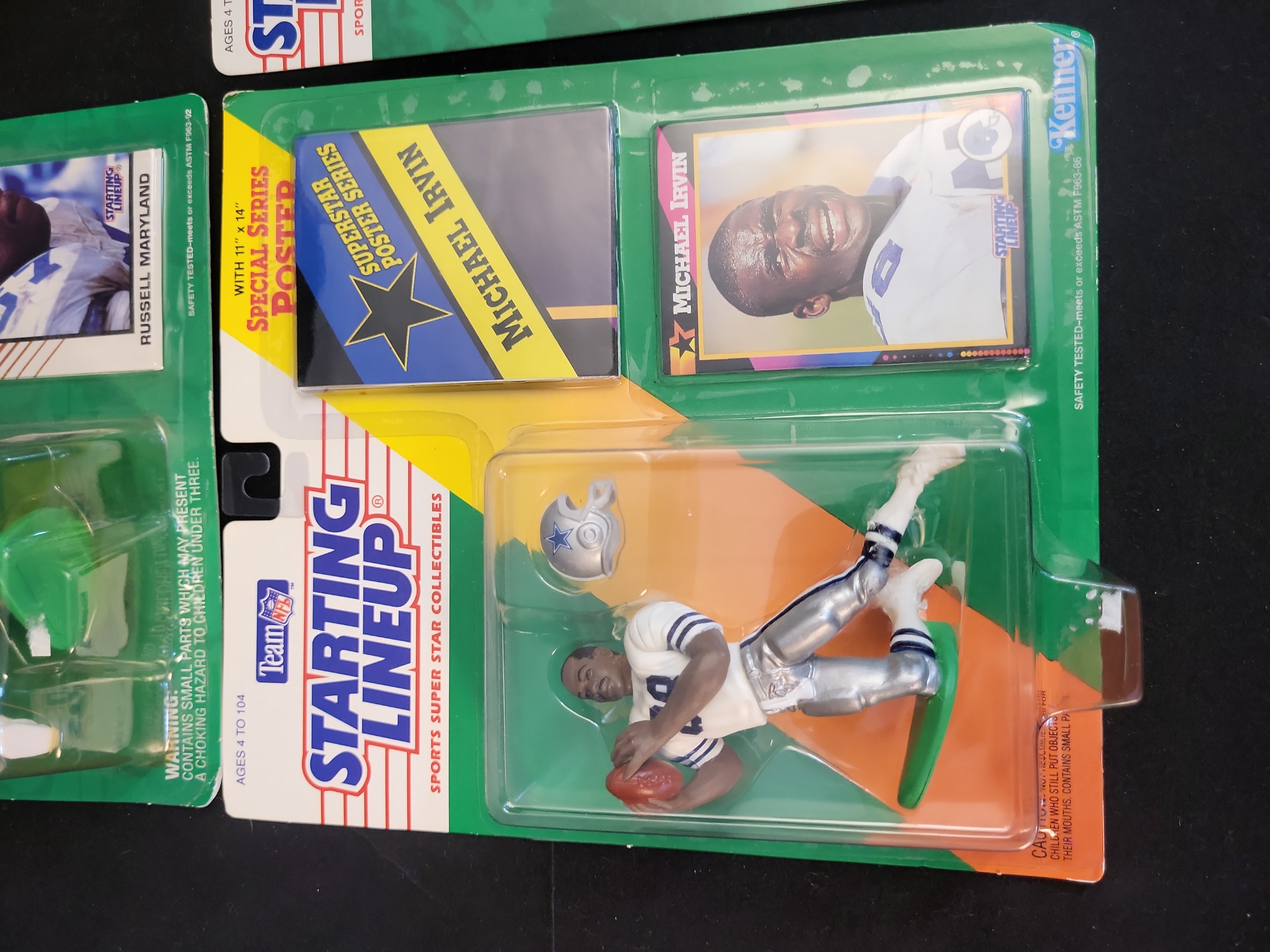 BID PER WHAT YOU SEE IN THE PHOTO, NOT THE AI GENERATED TITLES AND DESCRIPTIONS! Michael Irvin and Dallas Cowboys Kenner Starting Lineup Figures and Helmet Clock Lot, Unsigned