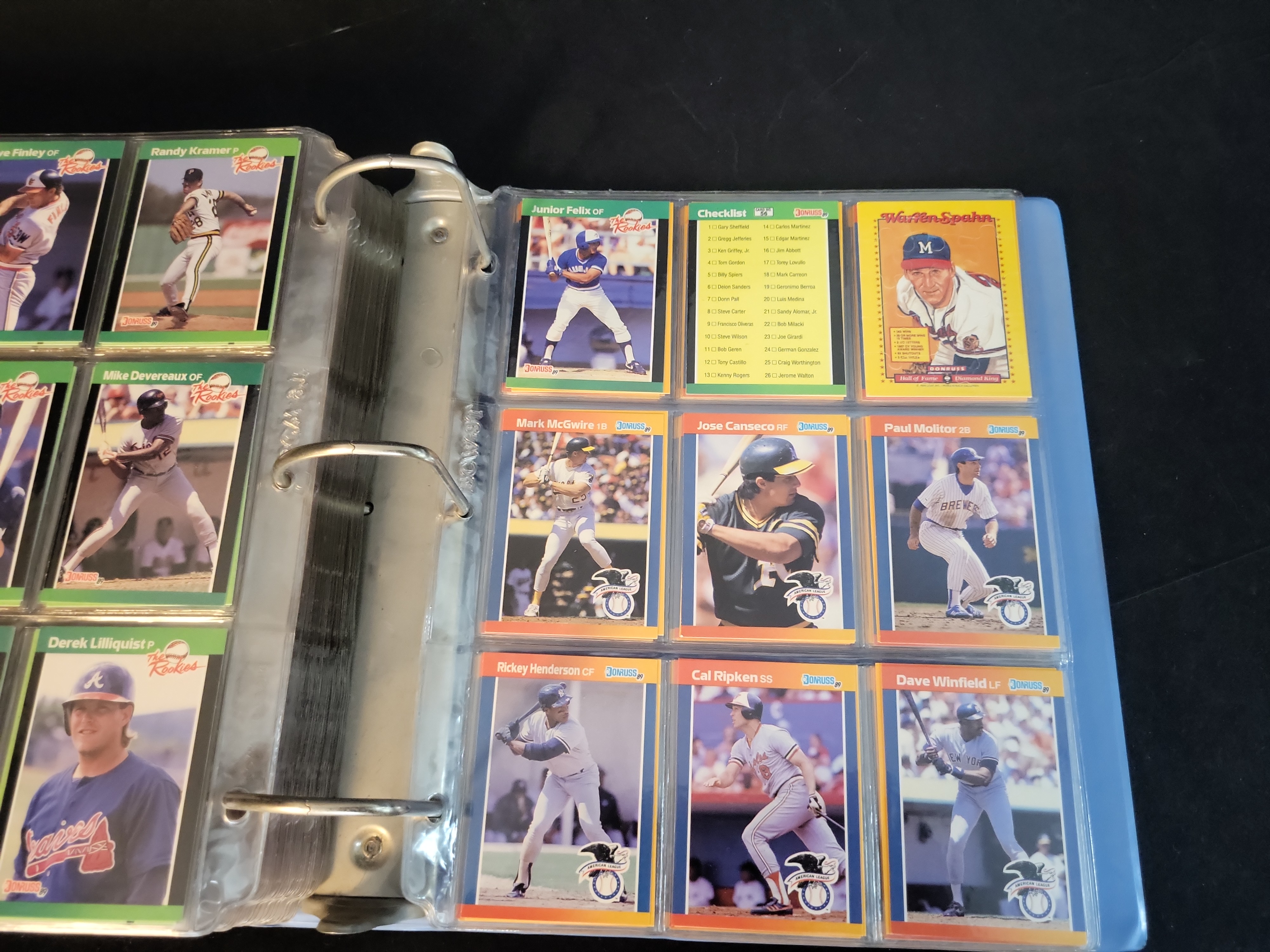Centering varies across the collection, which is typical for 1989 Donruss factory production, with some cards well-centered and others showing minor shifts. Corners appear sharp as viewed through protective sleeves. Edges are factory-cut and appear clean with minimal wear. The cards have been well-maintained in a climate-controlled environment and show no obvious signs of surface damage or significant wear. All cards are in raw, ungraded condition.