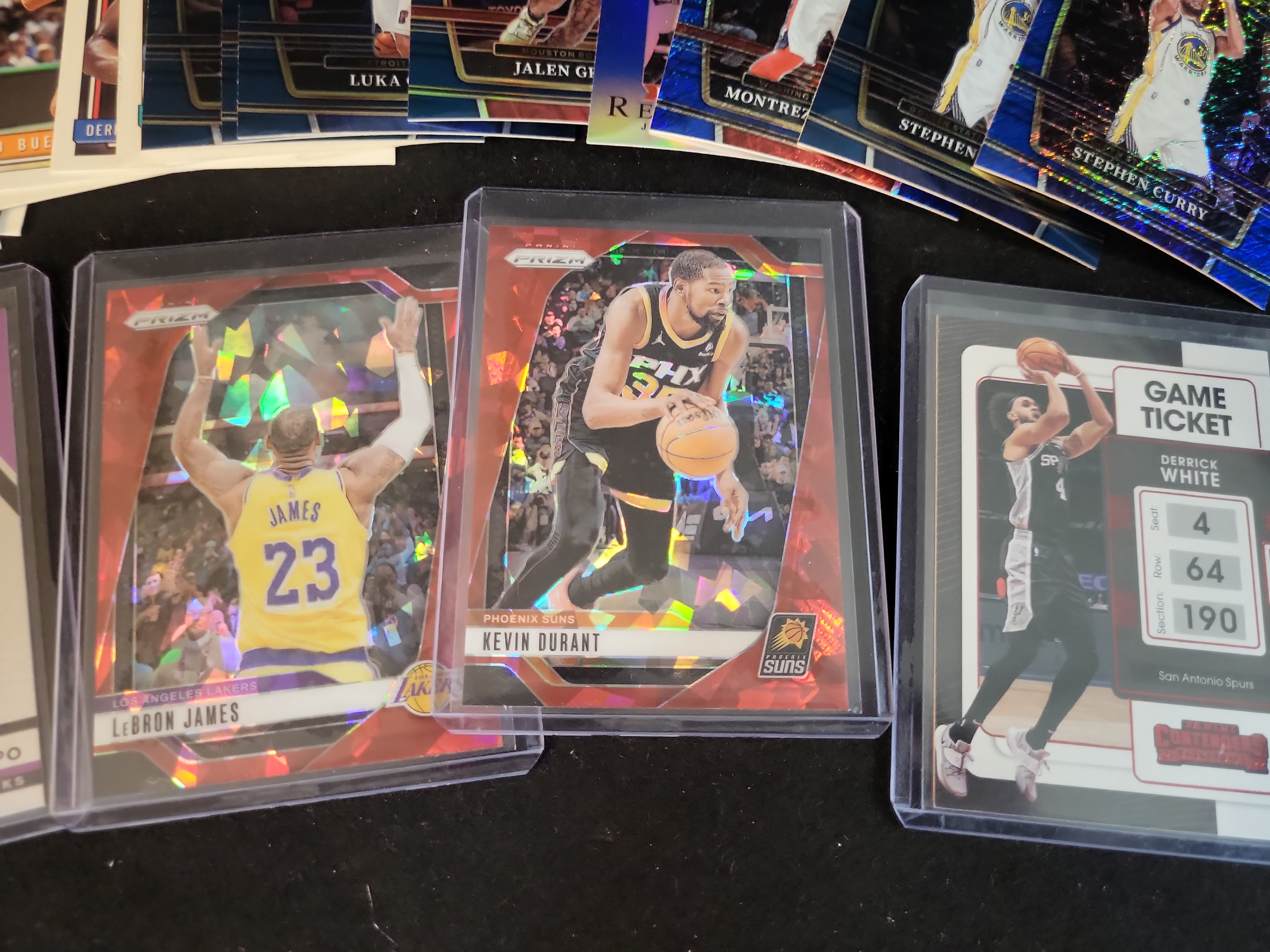 BID PER WHAT YOU SEE IN THE PHOTO, NOT THE AI GENERATED TITLES AND DESCRIPTIONS! 1989-2024 Panini and Topps Basketball Card Lot featuring LeBron James and Kevin Durant Red Ice Prizms