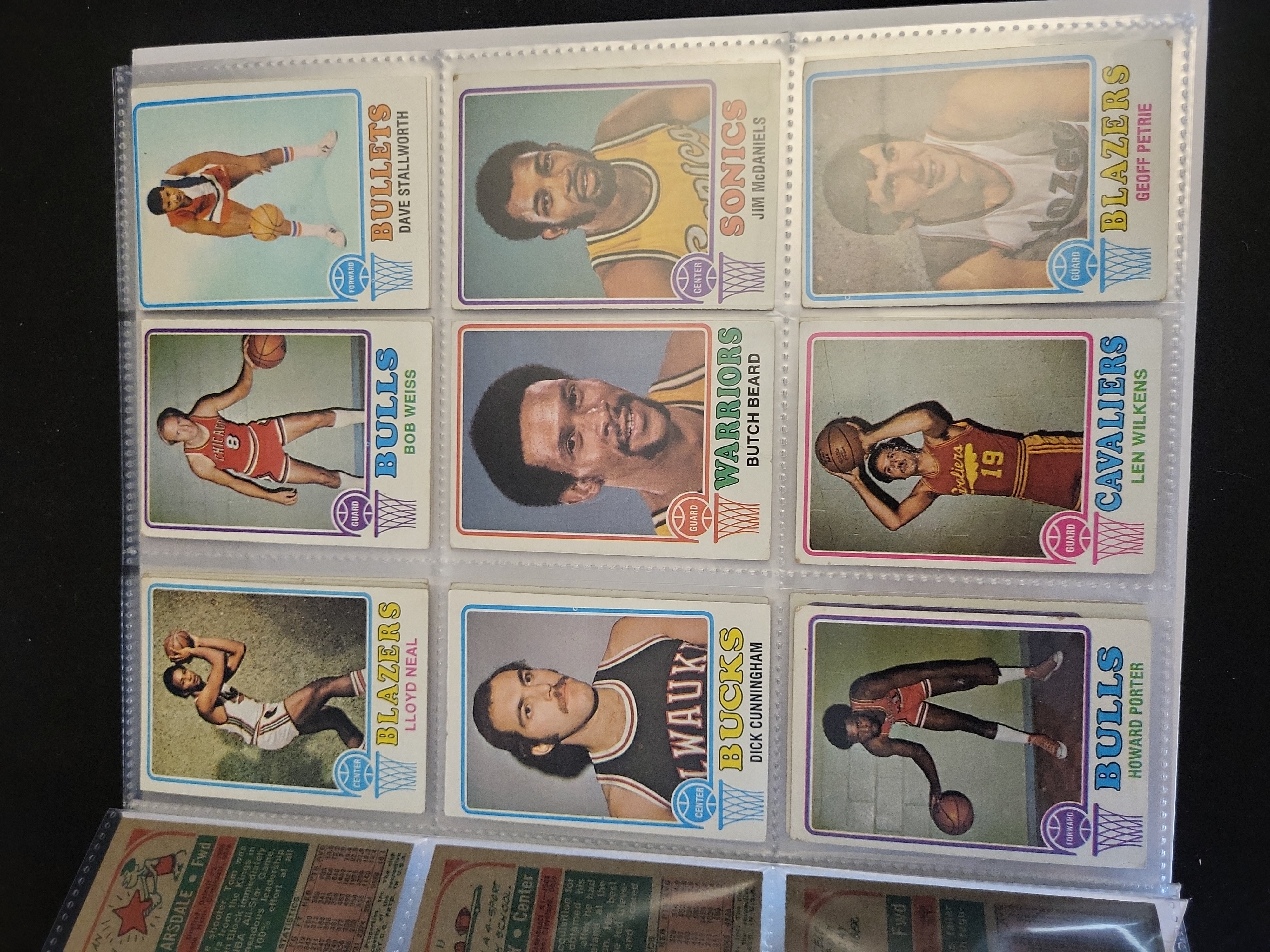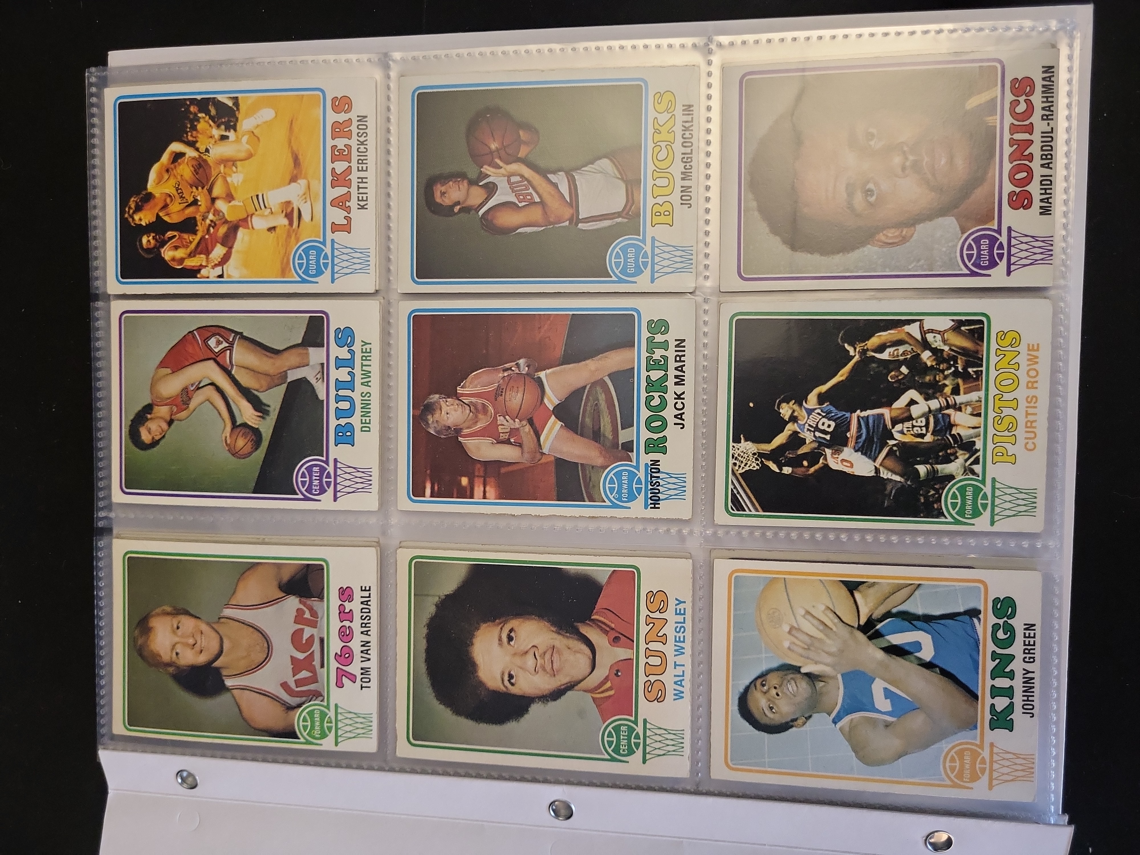 Brand: Topps. Year: 1973-74. Set: Basketball (NBA and ABA). This collection consists of 30 cards: #118 Keith Erickson, #157 Jon McGlocklin, #151 Mahdi Abdul-Rahman, #161 Dennis Awtrey, #135 Jack Marin, #149 Curtis Rowe (2), #134 Tom Van Arsdale, #153 Walt Wesley, #137 Johnny Green, #133 Dave Stallworth, #146 Jim McDaniels, #132 Geoff Petrie, #129 Bob Weiss, #136 Butch Beard, #155 Len Wilkens, #158 Lloyd Neal (RC), #152 Dick Cunningham, #139 Howard Porter, #141 Cliff Meely, #148 Stu Lantz, #143 Herm Gilliam, #147 Manny Leaks, #156 Fred Boyd (RC), #163 Dwight Davis (RC), #154 Larry Steele, #131 Sam Lacey, #138 Garfield Heard, #166 Chuck Terry (RC), and #171 Al Smith (RC). All cards are standard base issues. No certification or grading slabs are present.